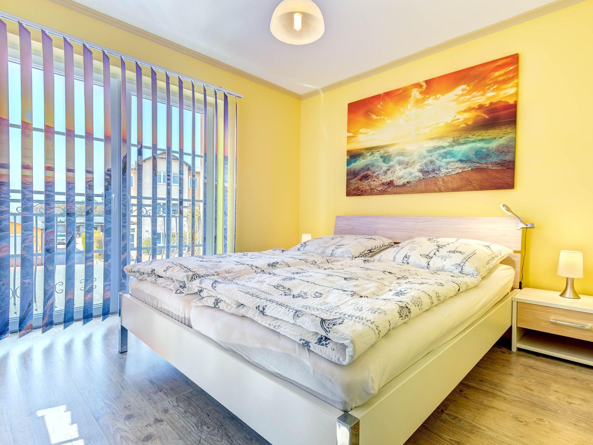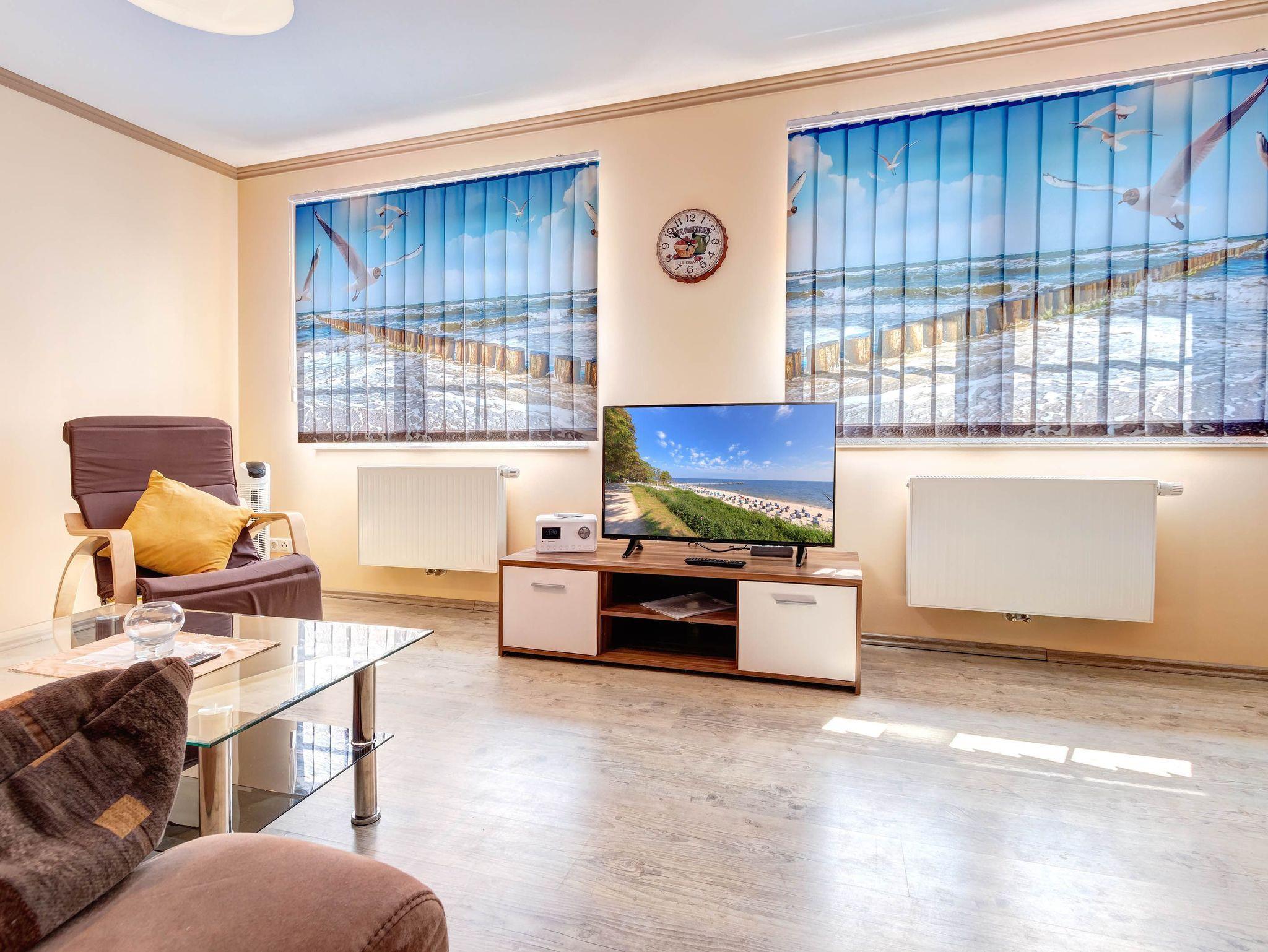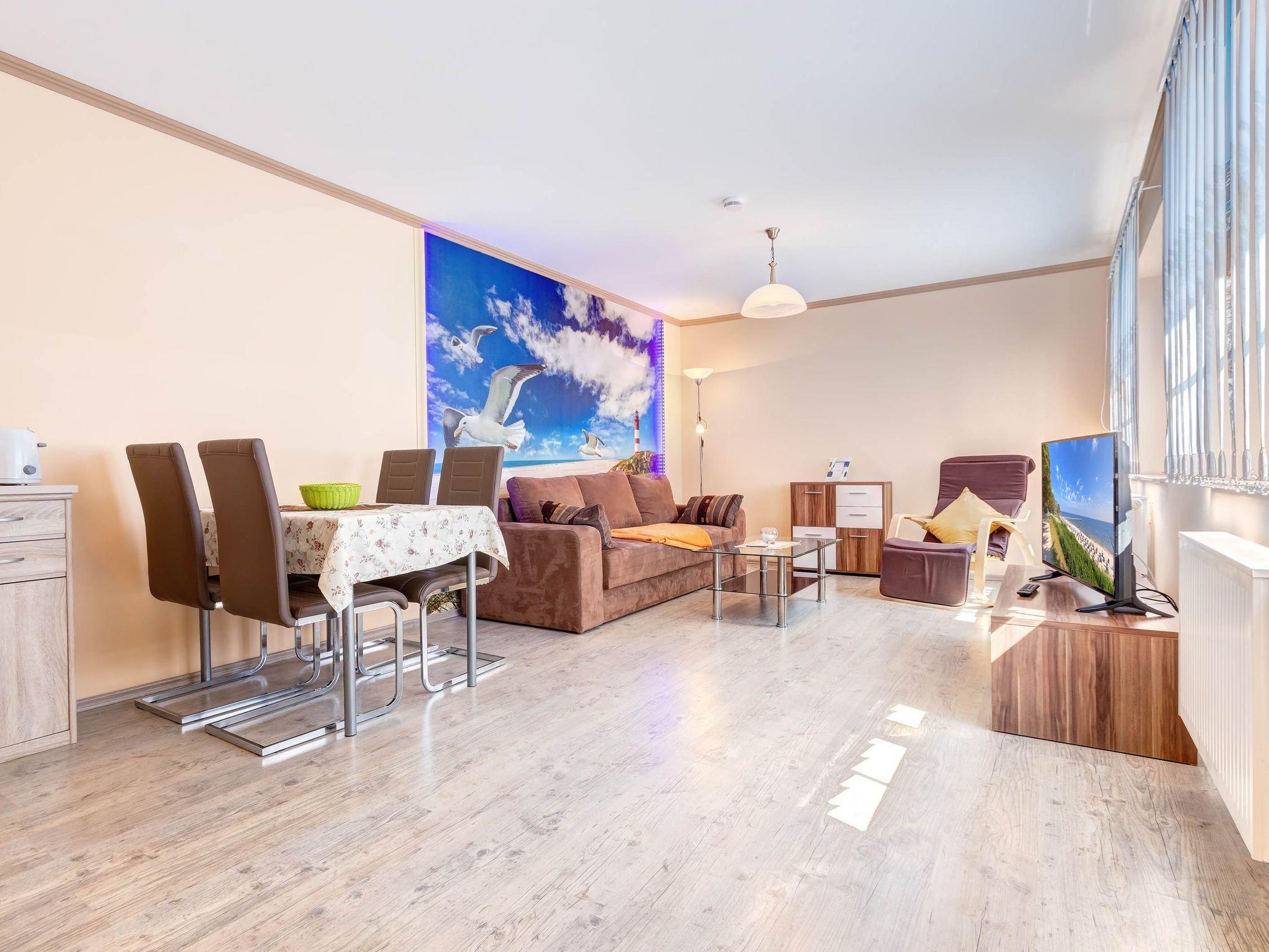 Die gemütliche 2-Raumwohnung für bis zu 4 Personen (plus ein Kleinkind bis 2 Jahre) ist modern eingerichtet und verfügt über ein großes Doppelbett im Schlafzimmer. Bettwäsche und Handtücher können selbst mitgebracht oder gegen Gebühr hinzugebucht werden. Bei Buchung des Wäschepakets sind die Betten bereits bezogen.