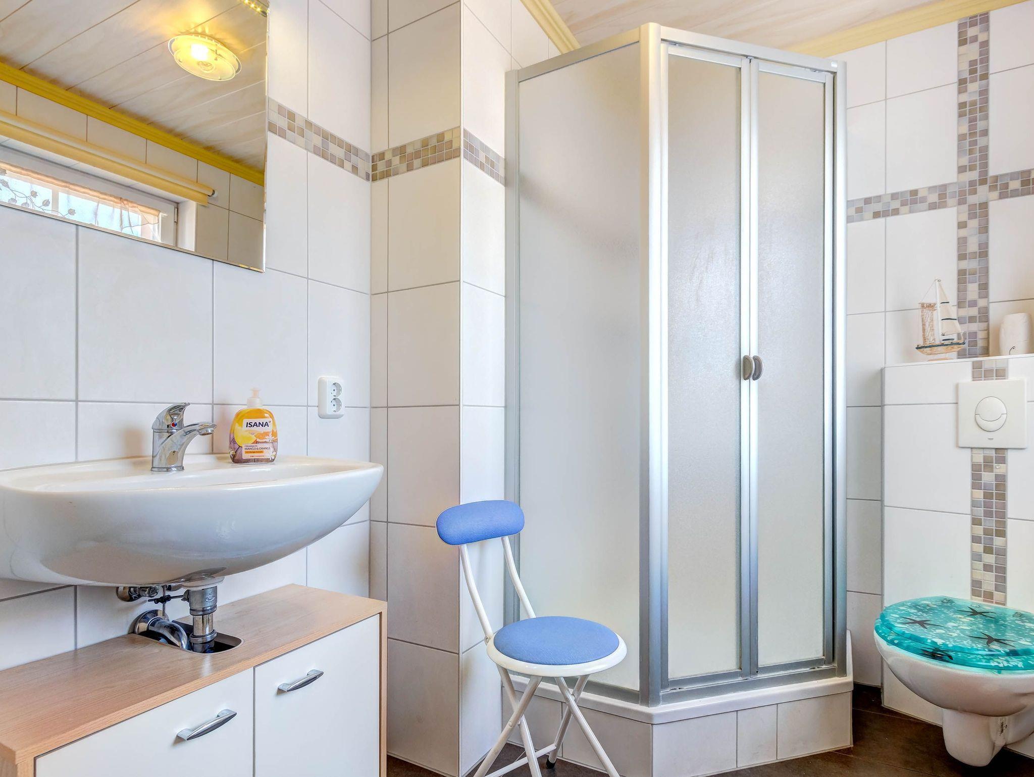 Die Ferienwohnung 03 im Obergeschoss ist mit 46 m² für bis zu 4 Personen, ggf. zzgl. 1 Kleinkind bis 2 Jahre geeignet. Die Wohnung ist mit einem Schlafzimmer mit Doppelbett und mit Schlafsofa im Wohnzimmer ausgestattet. Die Küche ist mit Einbauküche und allen notwendigen elektrischen Geräten ausgestattet. Im Bad befindet sich eine Duschkabine.
