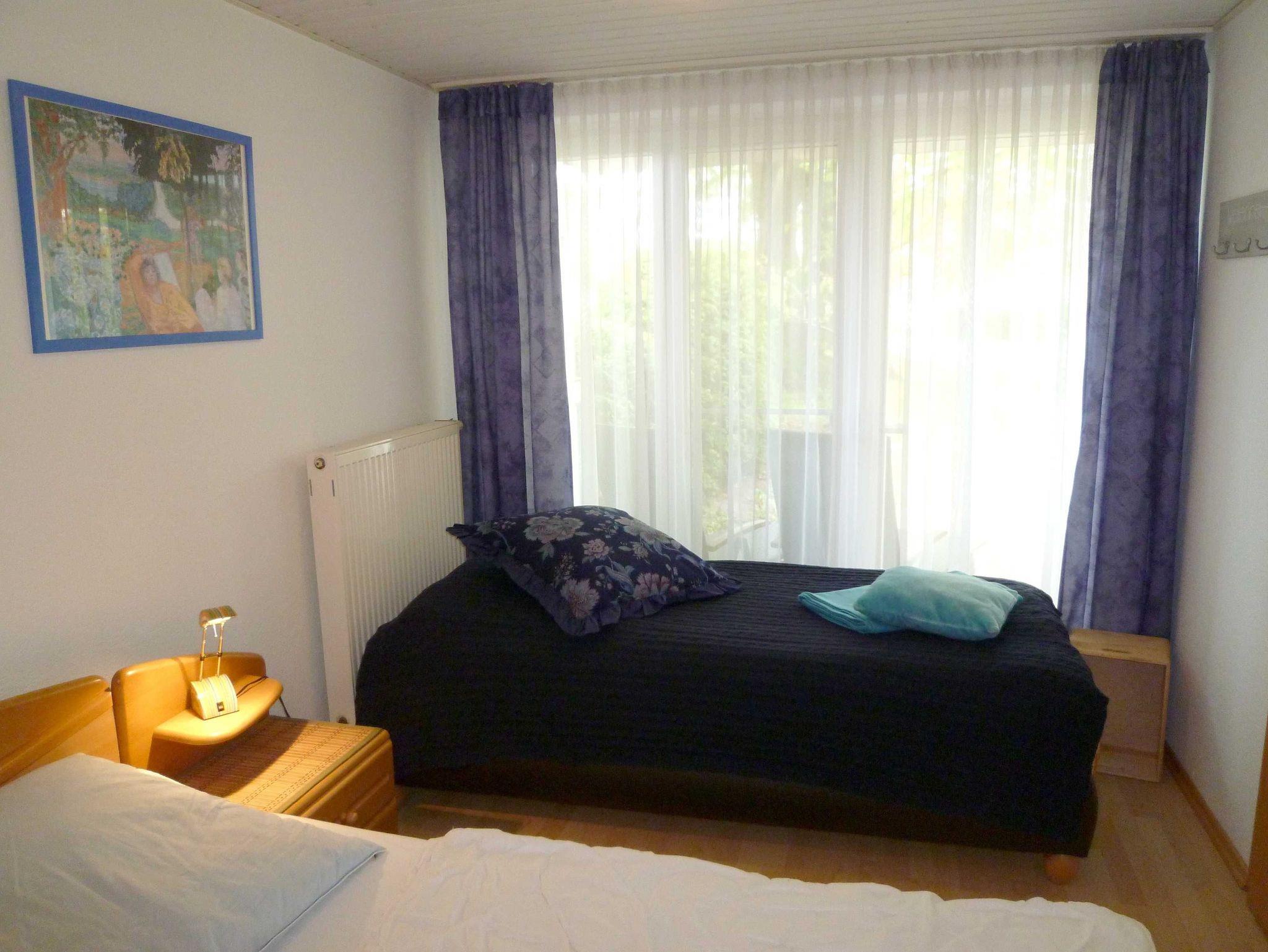 2-Raum-Wohnung mit großer Essküche und 20 m² überdachter Terrasse vor einem sehr schönen 1300 m² großen Naturgarten, separater Eingang, Wohn- und Schlafzimmer sind zur Terrasse raumhoch verglast, Schlafzimmer (Birkenholz) mit Doppelbett, Wohnzimmer mit Fernsehsessel und Eckledercouch (mit Bettfunktion), sehr helle Holzmöbel, keine Teppichböden, separate Küche mit Essbereich, Spülmaschine, Cerankochfeld, modernem Backofen mit versch. Beheizungsarten, großes Tiefkühlfach, modernes Duschbad, große überdachte Terrasse mit Möblierung und 2 Rollliegen, extrem ruhige Lage (im OG nur 1 Wohnung), 2 Gehminuten zum Strand.