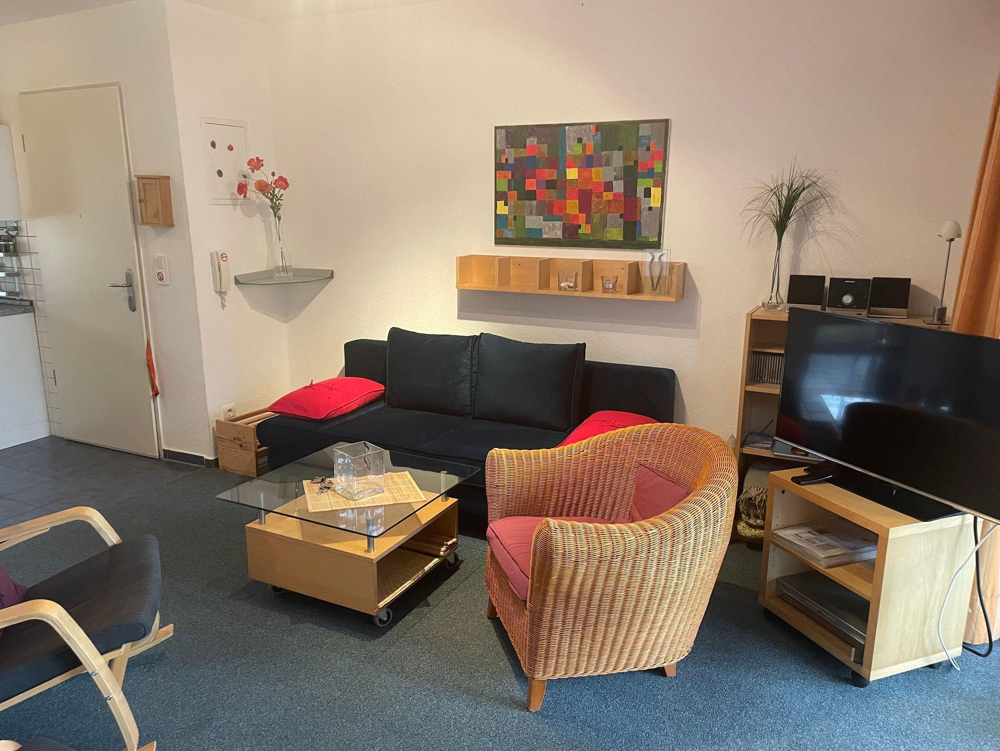 Dieses Nichtraucherappartement mit Ostseeblick, innerhalb der Ferienanlage 'Seeblick', befindet sich im Erdgeschoss eines Gästehauses und verfügt über Dusche/WC, Wohnraum mit TV, Radio, offener Küche (Toaster, Kaffeemaschine, Kühlschrank, usw.) und Zugang zur möblierten Terrasse mit Meerblick, sowie über ein Schlafzimmer mit Doppelbett. Sie ist zentralbeheizt und für 2-3 Personen geeignet (Doppelbett im Schlaf- und Schlafcouch im Wohnraum). Bettwäsche/Handtücher im Set sind Bestandteil der Buchung.