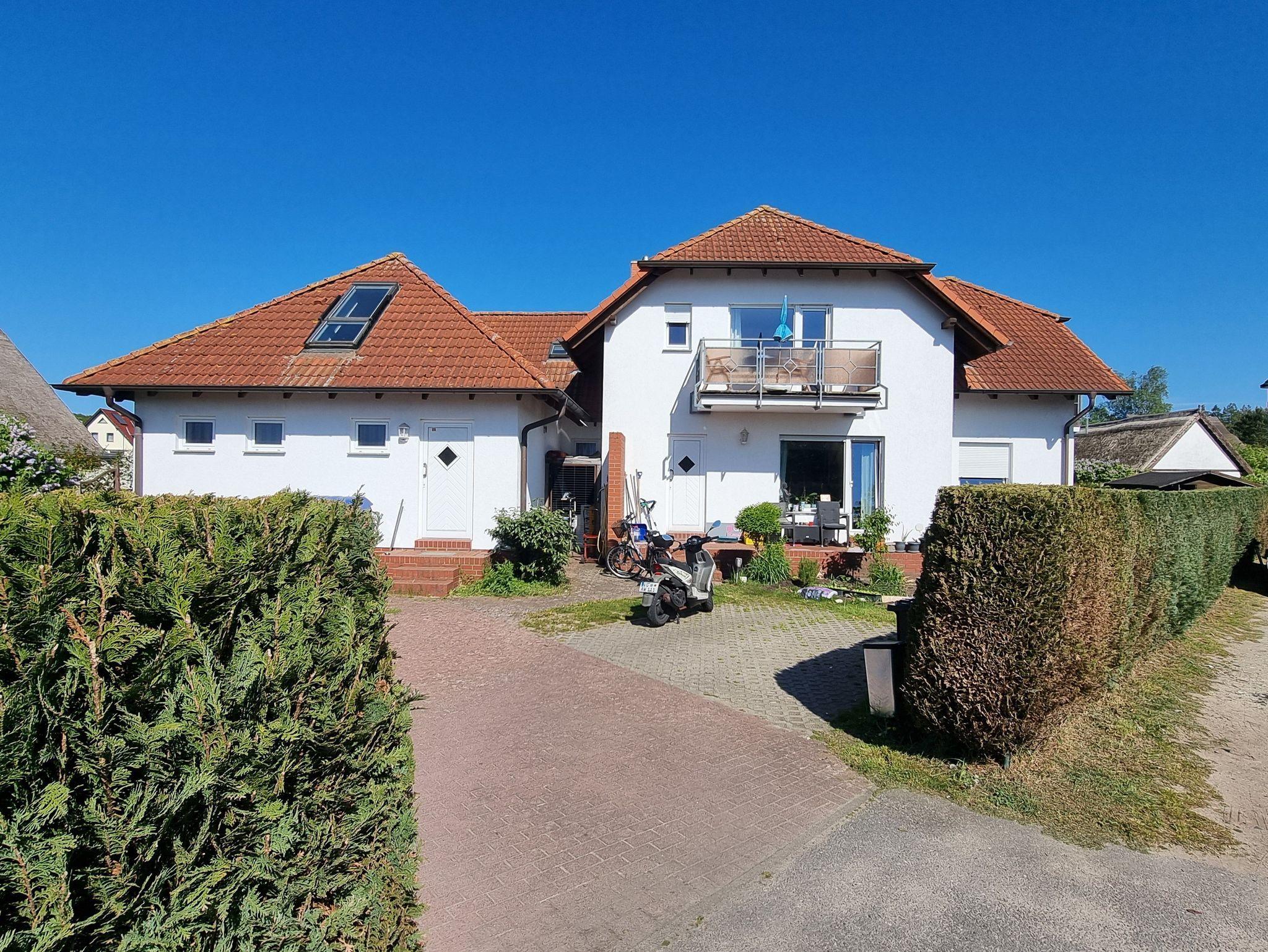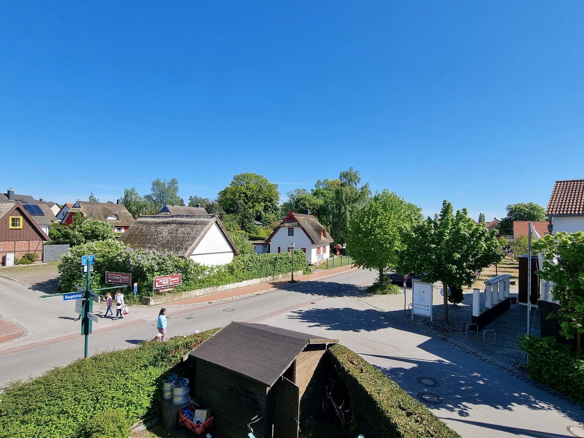 Die Wohnung verfügt über ein gemütliches Schlafzimmer mit Doppelbett sowie einen Wohnbereich mit kompletter Küchenzeile, Sitzecke, Spülmaschine und Waschmaschine. Zwei Balkone bieten unterschiedliche Blickrichtungen: Auf der Süd-Westseite genießen Sie am Nachmittag die Sonne und einen schönen Blick Richtung Achterwasser, während Sie vom Süd-Ost-Balkon das lebendige Treiben im Dorf beobachten können.
