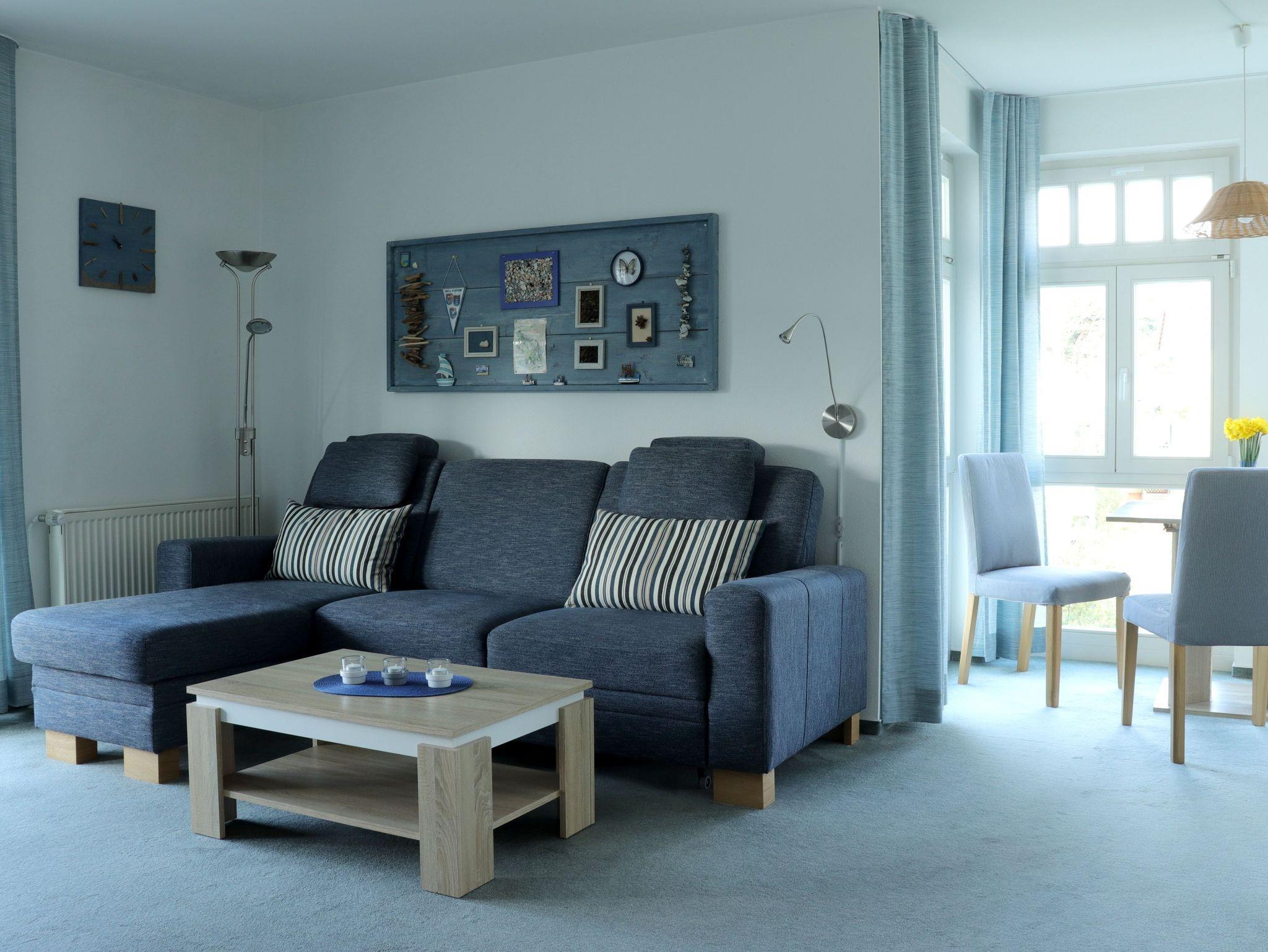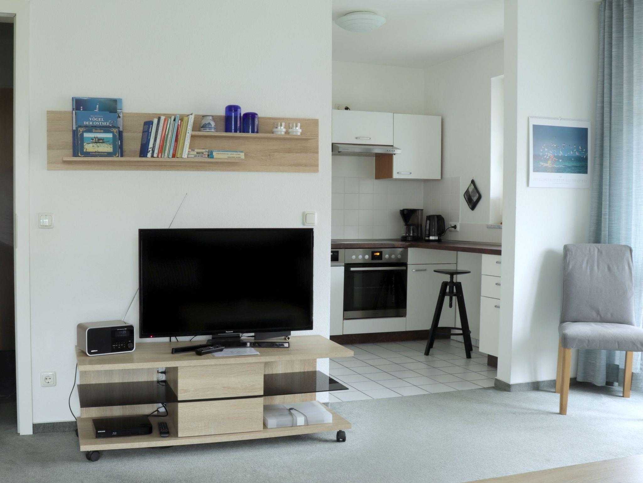 Im lichtdurchfluteten Wohnzimmer befinden sich ein gemütliches Ecksofa (Aufbettung für die 3. Pers.), ein Flachbildfernseher, Blu-Ray/ DVD- Player, DAB-Radio und der Essbereich.