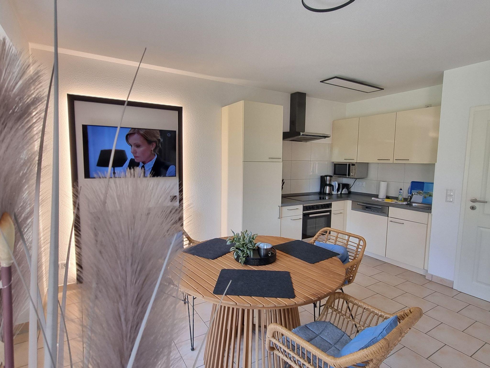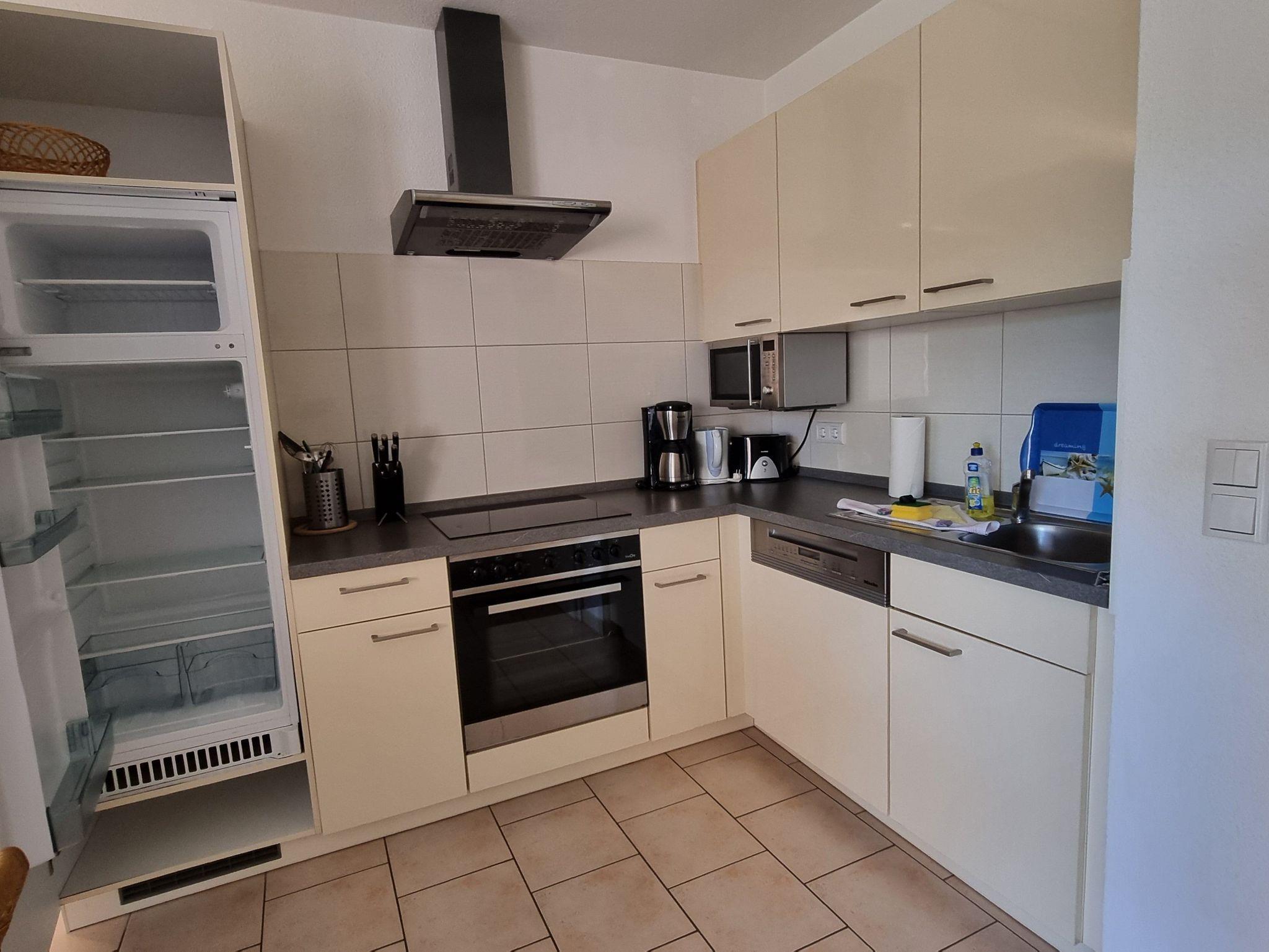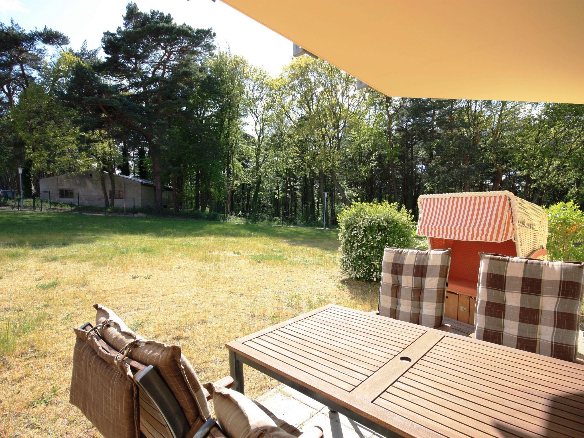 Die Ferienwohnung liegt im Erdgeschoß des Ferienhauses. Sie besteht aus Wohnzimmer, kompl. ausgestatteter Küche, Schlafzimmer und Tageslichtbad. Die Ausstattung der Einbauküche ist neuwertig funktional und qualitativ hochwertig unter anderem mit Toaster, Kaffeemaschine, Backofen, Kochfeld, Geschirrspüler, Gefrierfach. Große Süd-Terrasse mit Blick auf den Küstenwald, große Spielwiese.