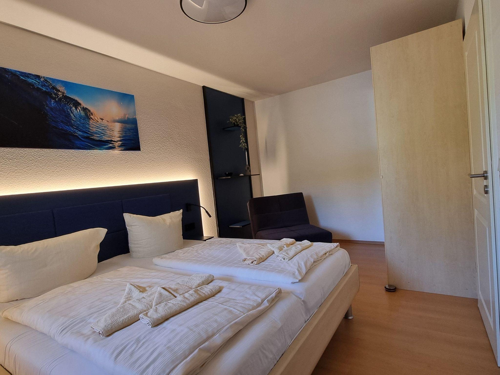 Die Wohnung verfügt über ein Schlafzimmer mit Doppelbett undzusätzlichem. Die Wohnung ist ideal geeignet für Familien und Hundeliebhaber.