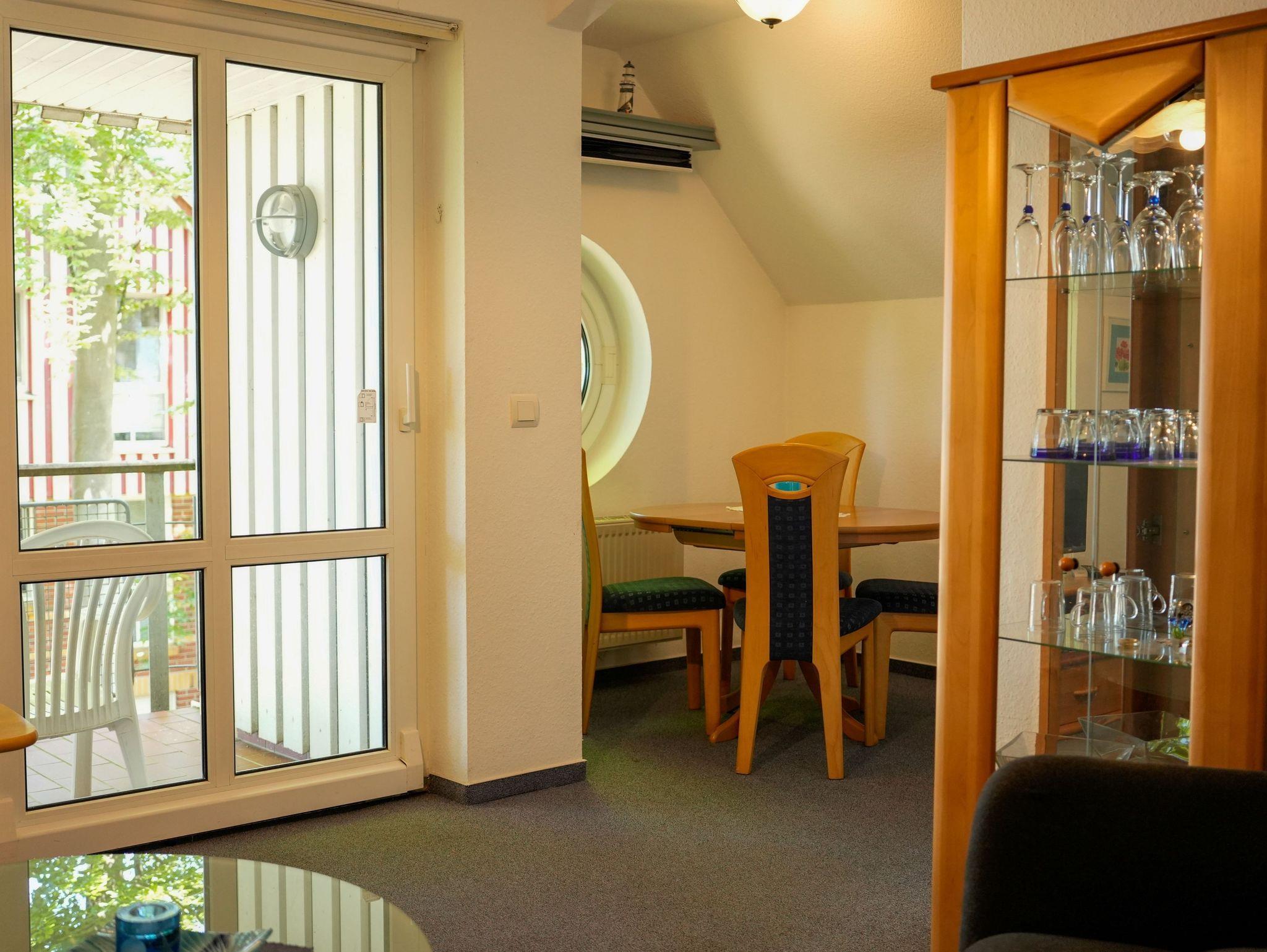 Dieses Nichtraucherappartement, innerhalb der kleinen Ferienanlage 'Seeblick', befindet sich im 2.Obergeschoss eines Gästehauses (Baujahr 1999) und verfügt über Dusche/WC, Wohnraum mit TV, Radio, integrierte Küche und Zugang zum möblierten Balkon mit teilweisem Blick zur Ostsee sowie über ein Schlafzimmer mit Doppelbett. Sie ist zentralbeheizt und für 2-3 Personen geeignet (Doppelbett im Schlafzimmer und Schlafcouch im Wohnraum). Bettwäsche und Handtücher im Set sind Bestandteil der Buchung.