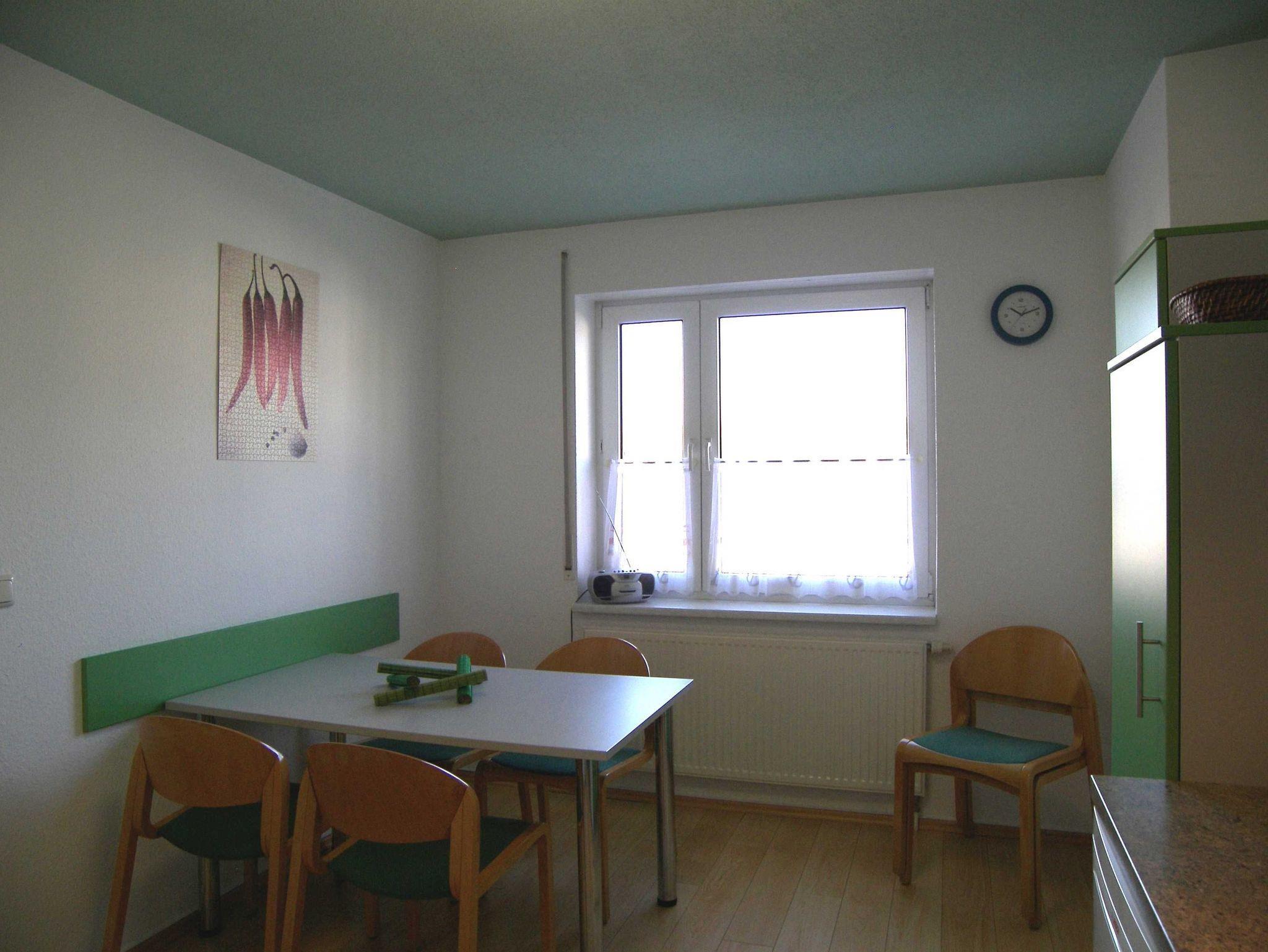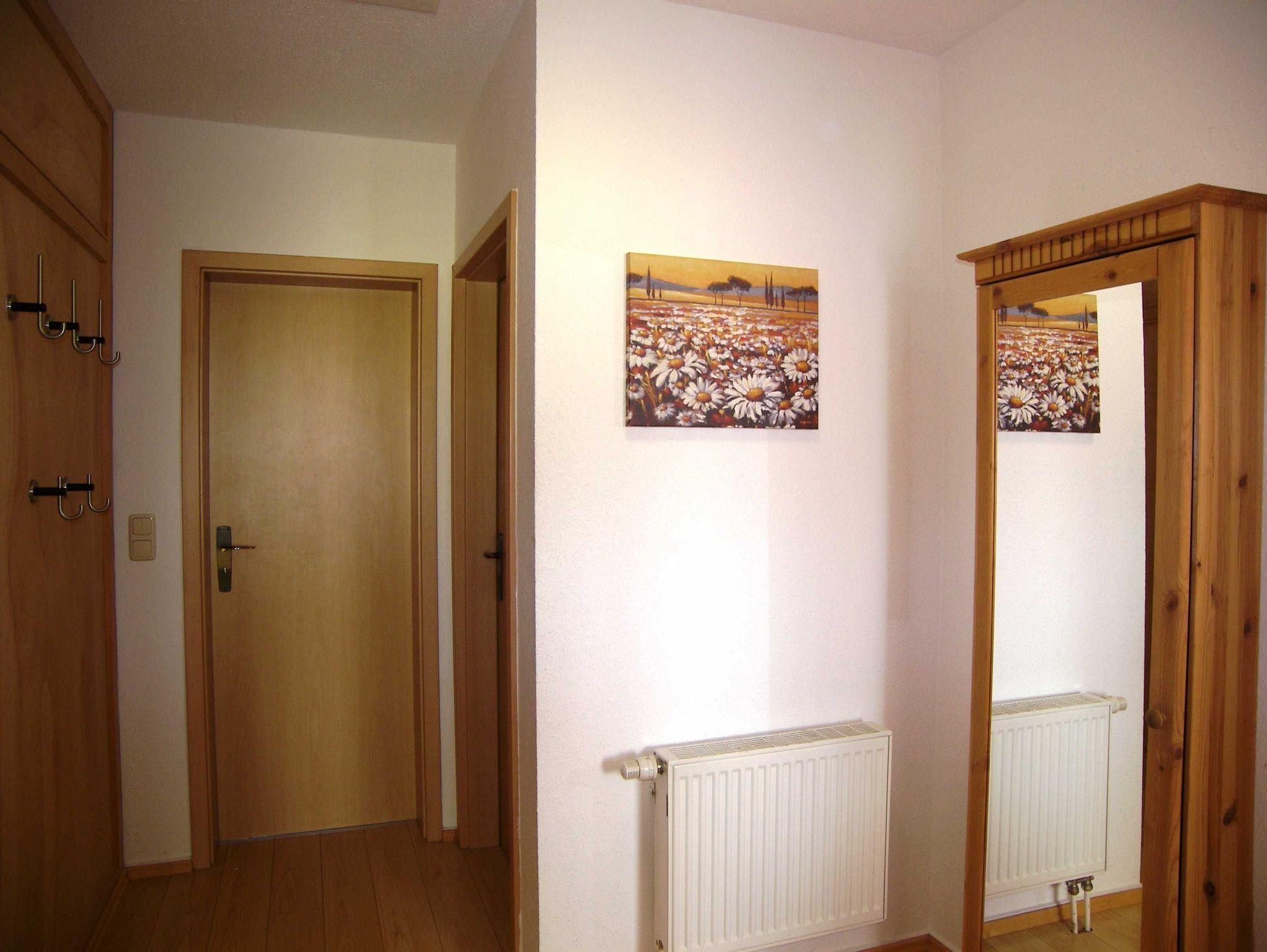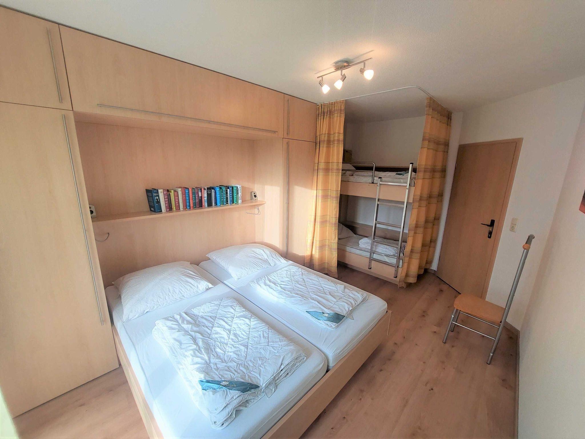 Die 53 m² große Nichtraucher-Wohnung im Obergeschoss ist modern und gemütlich ausgestattet. Sie besteht aus einem Wohnraum, einem Schlafraum mit einem Doppelbett (2 x 90 cm x 200 cm) und einem Doppelstockbett (Länge ca. 175 cm), einer Küche, einer Diele, einem Bad/WC und einen Balkon. Der Fußboden in Küche, Bad/WC ist gefliest und im Flur befindet sich Laminat. Wohnraum und Schlafraum sind neu renoviert worden, hier besteht der Fußboden aus Klick-Vinyl. Im Wohnzimmer befindet sich eine weitere Schlafmöglichkeit auf einer Schlafcouch und ein 39-Zoll LED-Fernseher. Die Küche ist komplett mit allen notwendigen Geräten (Spülmaschine, Wasserkocher, Herd, Backofen, Kühlschrank, Kaffeemaschine, Toaster) ausgestattet.