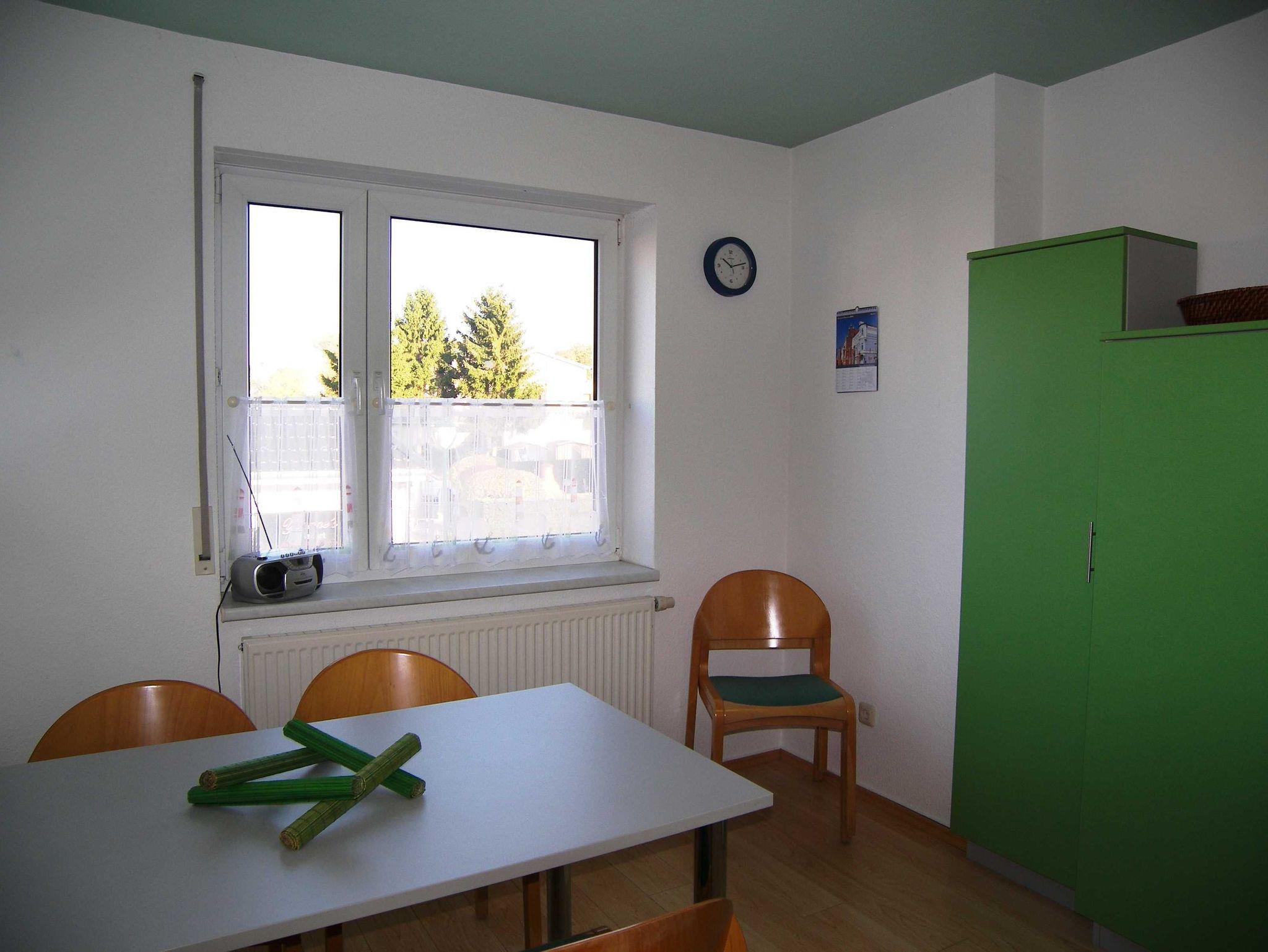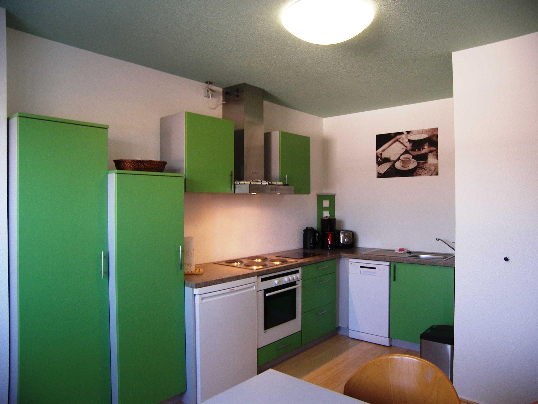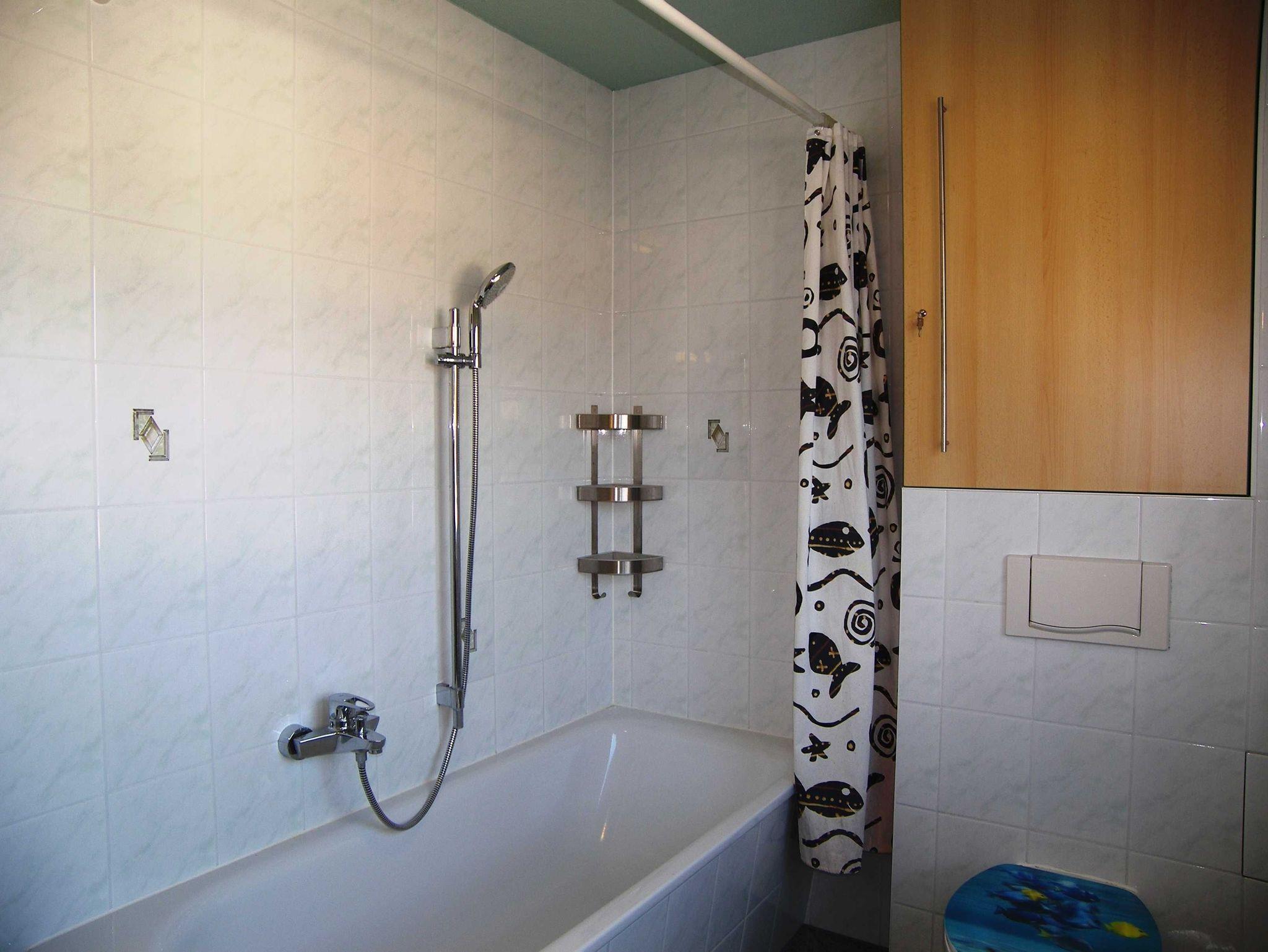 Die 53 m² große Nichtraucher-Wohnung im Obergeschoss ist modern und gemütlich ausgestattet. Sie besteht aus einem Wohnraum, einem Schlafraum mit einem Doppelbett (2 x 90 cm x 200 cm) und einem Doppelstockbett (Länge ca. 175 cm), einer Küche, einer Diele, einem Bad/WC und einen Balkon. Der Fußboden in Küche, Bad/WC ist gefliest und im Flur befindet sich Laminat. Wohnraum und Schlafraum sind neu renoviert worden, hier besteht der Fußboden aus Klick-Vinyl. Im Wohnzimmer befindet sich eine weitere Schlafmöglichkeit auf einer Schlafcouch und ein 39-Zoll LED-Fernseher. Die Küche ist komplett mit allen notwendigen Geräten (Spülmaschine, Wasserkocher, Herd, Backofen, Kühlschrank, Kaffeemaschine, Toaster) ausgestattet.