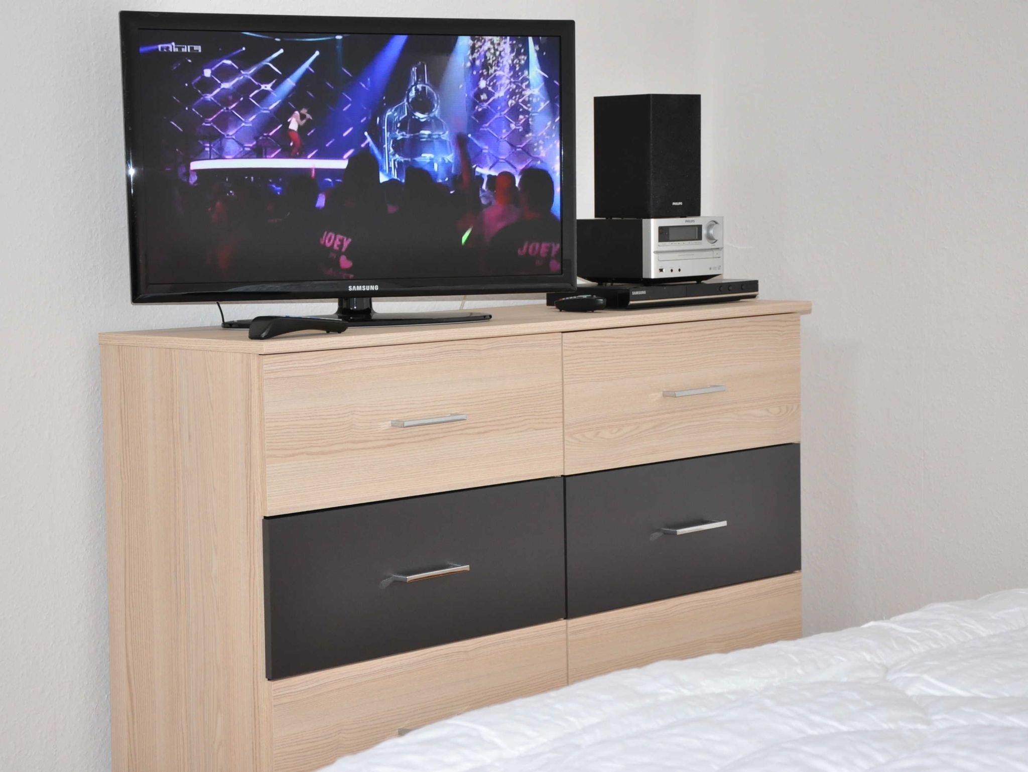 Mit 32-Zoll LCD-TV, DVD-Player und CD-Radio wird es auch bei trüben Wetter nicht langweilig.