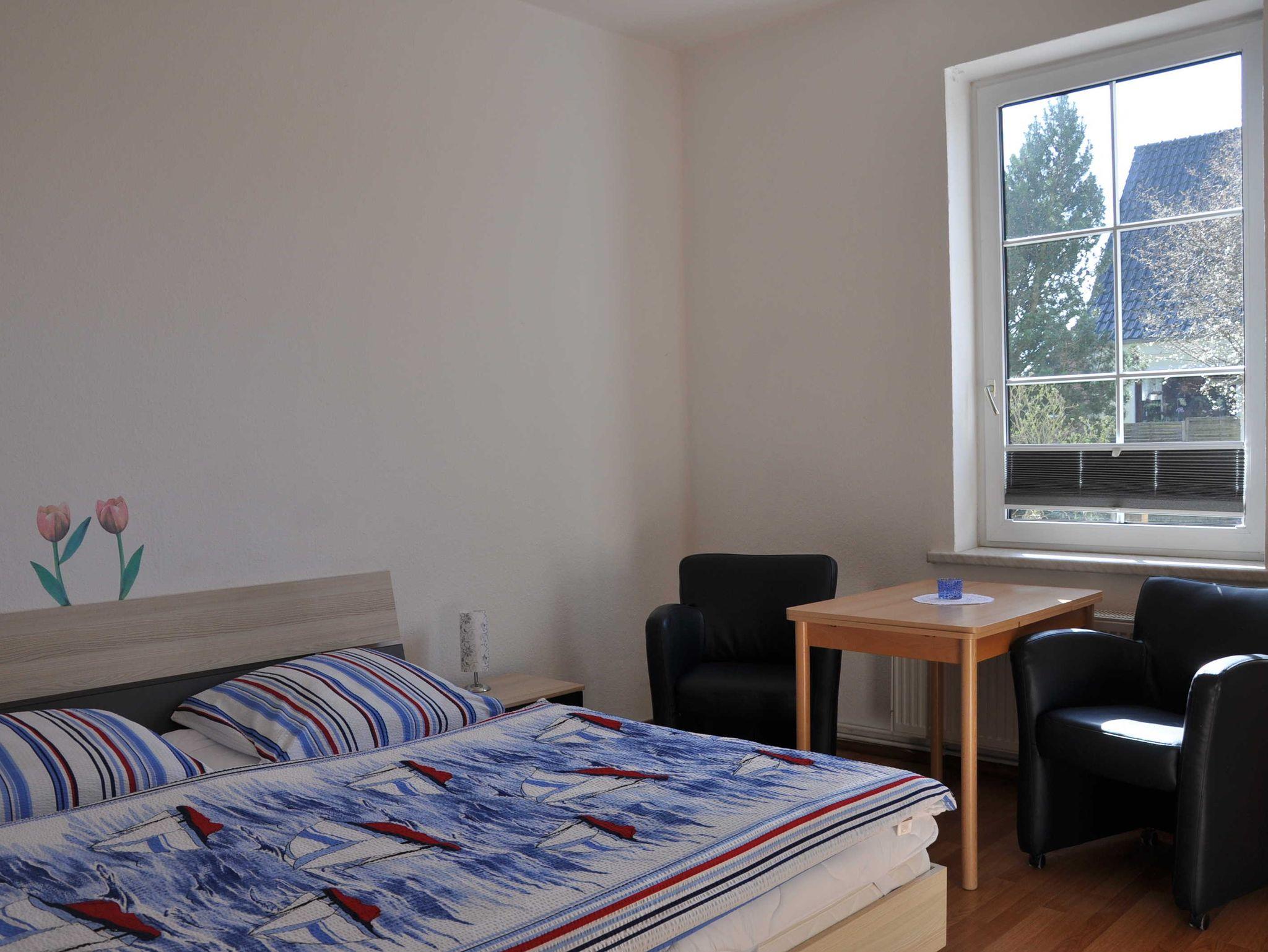 Unsere Ferienwohnungen vom Typ Breitfock sind ebenerdig im Apartmenthaus gelegen. Sie bieten Ihnen einen kombinierten Wohn-/ Schlafraum mit Doppelbett, eine offene, für 2 Personen ausgestattete, Kochnische mit Kochmöglichkeit (2 Platten), Kühlschrank, Toaster, Wasserkocher, Töpfe und Geschirr sowie ein kleines Bad mit Dusche und WC. Im Wohnbereich haben wir für Sie einen LED-Fernseher, einen DVD-Player und ein CD-Radio bereitgestellt. Es sind sämtlichst Nichtraucherwohnungen. Ein PKW-Stellplatz kann ganzjährig kostenfrei genutzt werden.