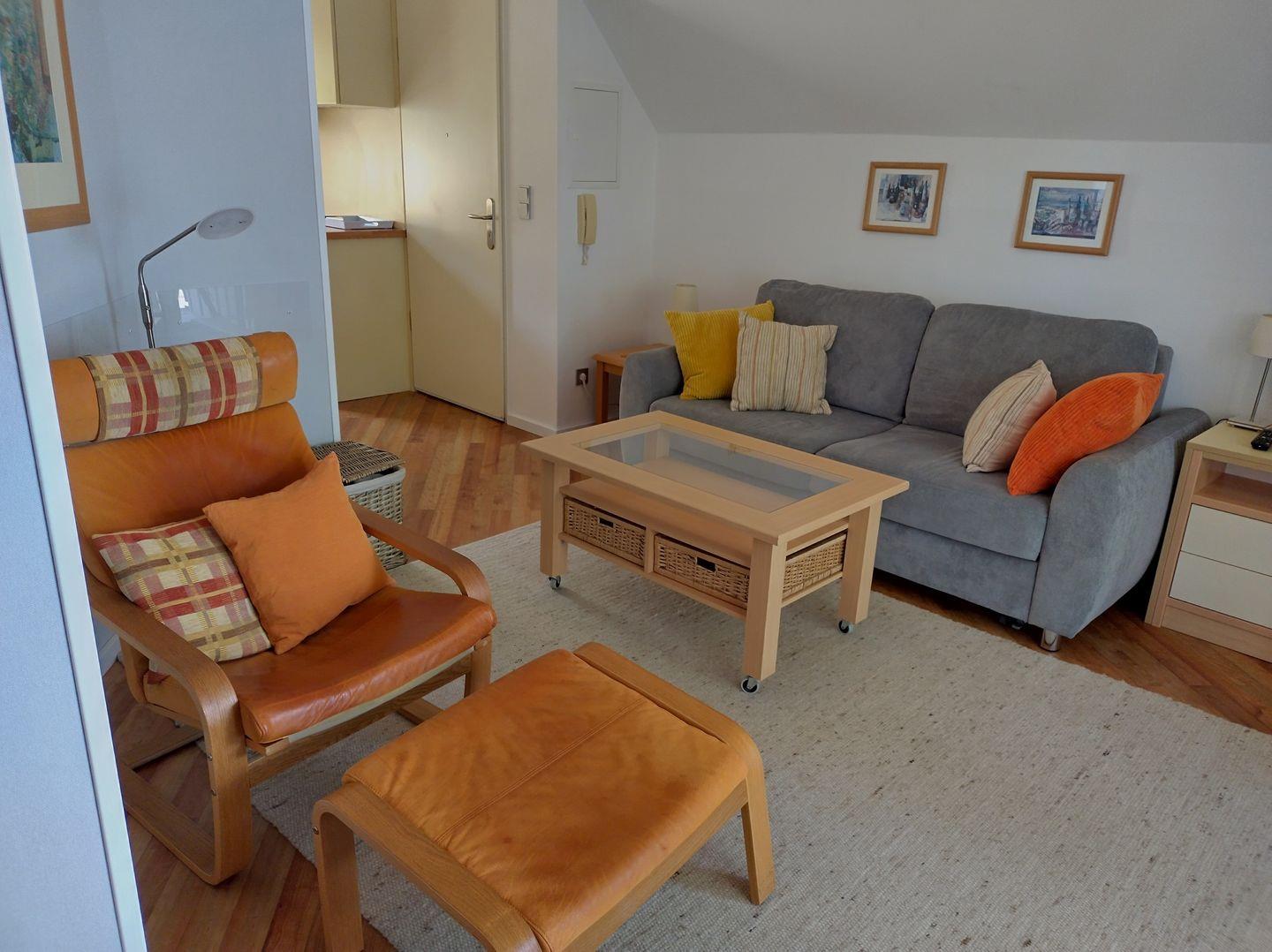gelegene Schlafzimmer überzeugt mit einem komfortablen Doppelbett, Verdunklungsmöglichkeit und viel Stauraum in den Einbauschränken. Das ausziehbare Sofa im Wohnbereich sorgt für zusätzliche Flexibilität. Flachbild-TV, kleine Hifi-Anlage, W-LAN vorhanden. Die offene Küche ist vollwertig ausgestattet mit allen nötigen Elektrogeräten und Utensilien.