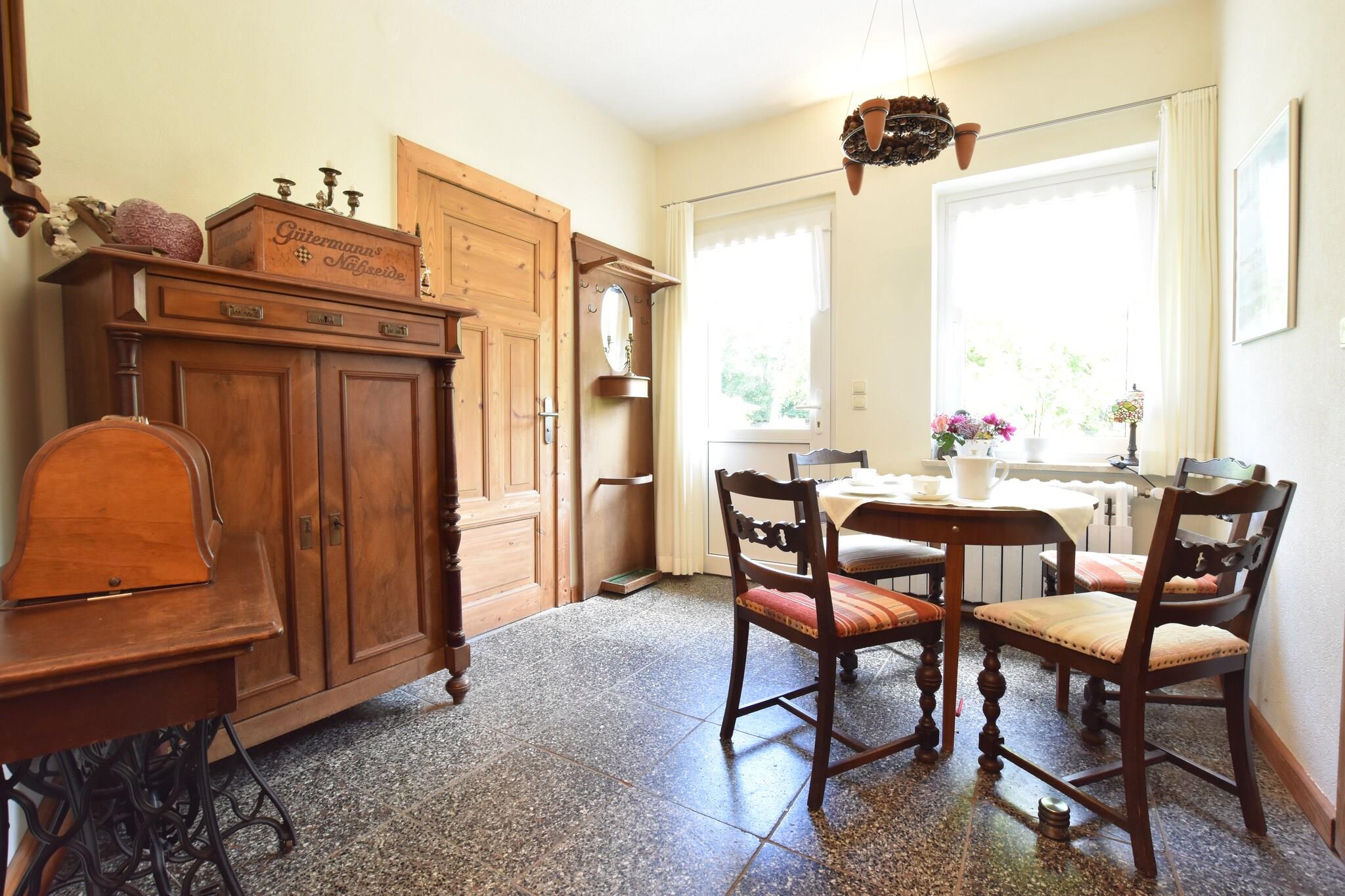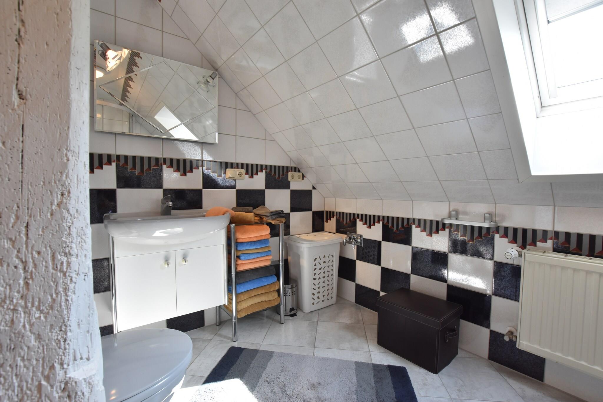 Denne charmerende landlige lejlighed i Kröpelin er ideel til små familier eller grupper, der søger en fredelig baltisk flugt. Det har 3 soveværelser, en rummelig terrasse til at nyde din morgenkaffe og en fælles have med møbler, perfekt til at slappe af eller spise udendørs. Fyr op for den fælles grill til lækre måltider om aftenen. Et fitnessrum er tilgængeligt for at forblive aktivt, og der er masser for børn, herunder to barnesenge, legeredskaber, en legeplads og en høj stol. Kun 2 km væk finder du supermarkeder og butikker, mens badebyerne Kühlungsborn og Rerik er en kort 10-minutters kørsel til strandsjov, svømning og golf (15 km væk). Restauranter er i nærheden for lokale køkkenelskere. Indvendigt byder boligen på åbent køkken, hyggelig opholdsstue med TV og god plads til familieaktiviteter. Den store have byder på solbadningssteder, en læsehjørne og et sikkert legeområde for børn. Parkering er tilgængelig på stedet. Den venlige ejer bor i samme bygning, hvilket sikrer et indbydende ophold i hjertet af det baltiske landskab.