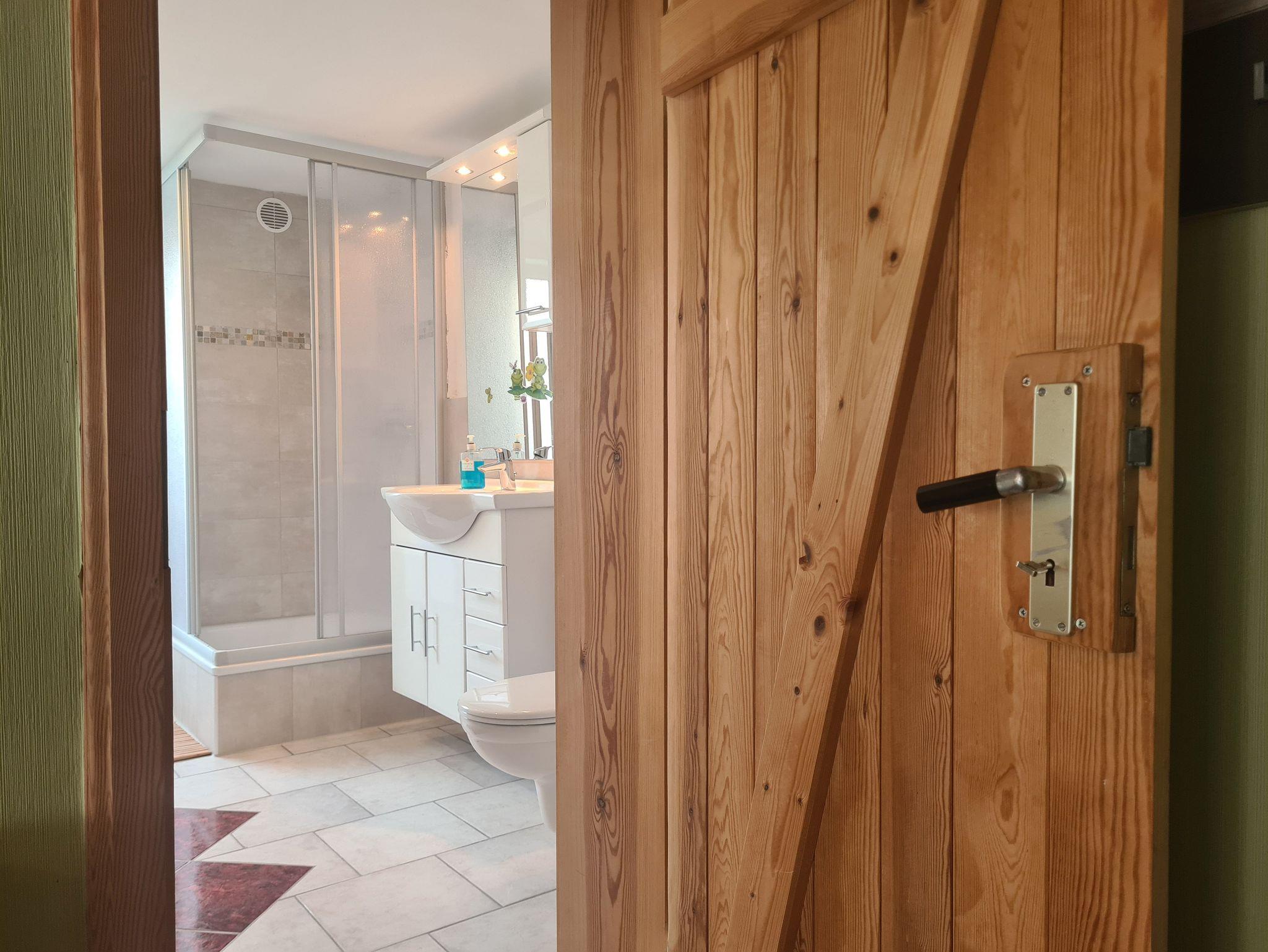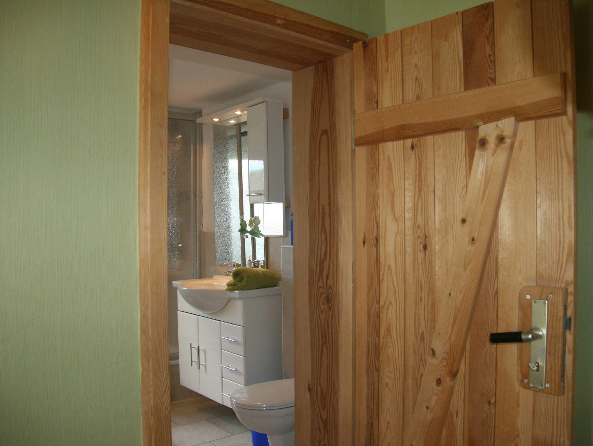 Separater Hausteil mit eigenem Eingang, möblierte Terrasse mit Sonnenschirm. Garten mit schattenspendenen Bäumen. Großzügige Wohnfläche im Erd- und Obergeschoss. 21m² große Grillterrasse + Grill + Feuerschale für gemütliche Abendstunden, 50m² Obstgarten am Haus. 3 Schlafräume, 2 Duschbäder/ WC, Waschmaschine, 3 TV, WLAN. 3 kostenlose PKW-Stellplätze direkt am Haus. Erzogene Haustiere willkommen (Gebühr).