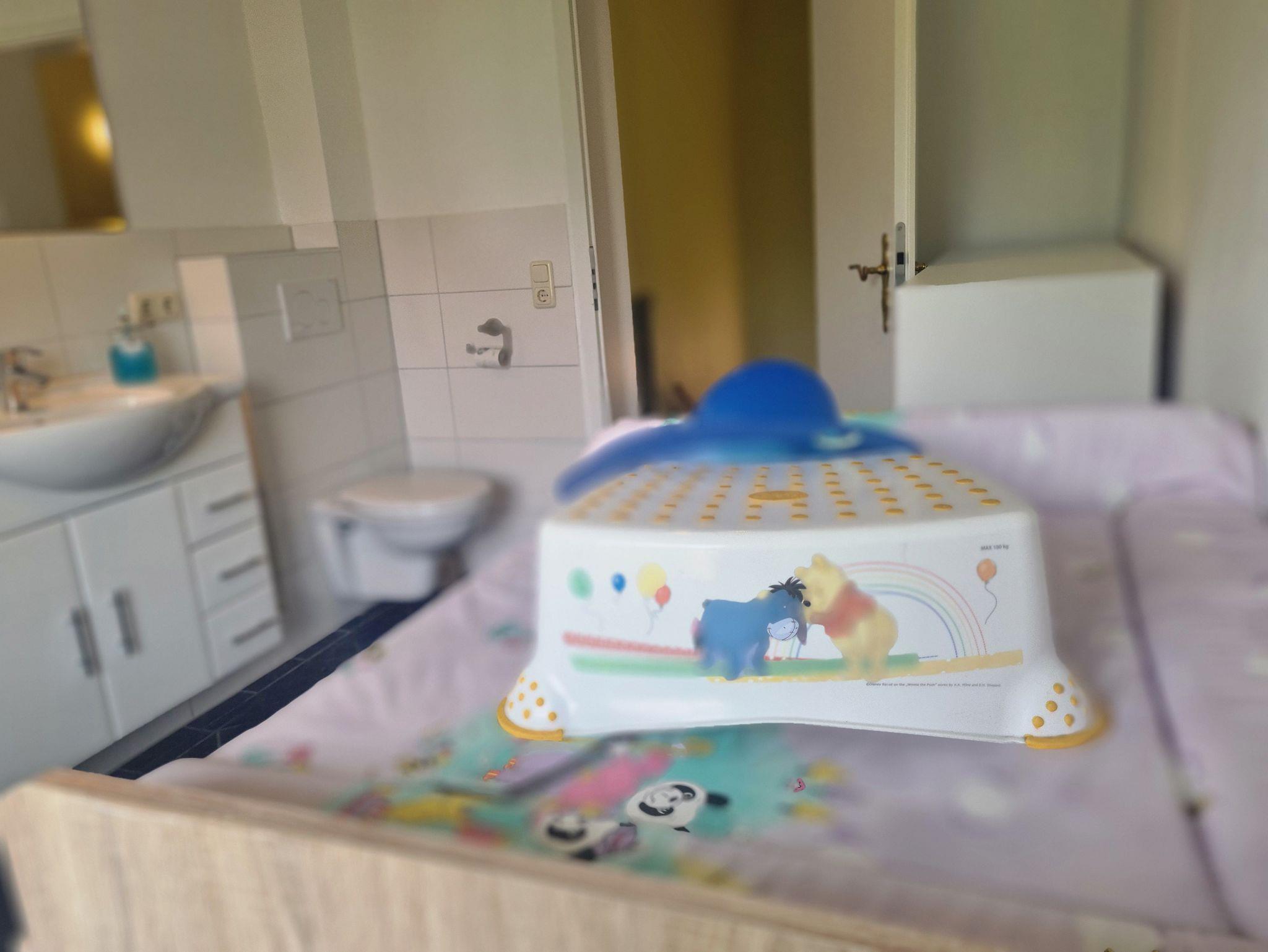 Baby-Extras inklusive: 2x Babybett, 2x Hochstuhl, 1 Wickelauflage, Töpfchen, Badhocker, WC-Aufsatz. Steckdosenschutz.