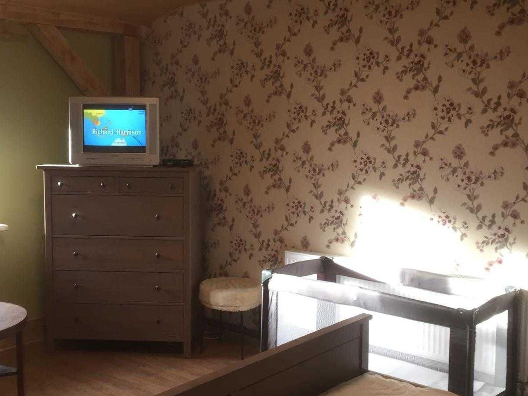 Schlafraum 1: Doppelbett (1,80x2m) + Einzelbett, Babybett stellbar und TV