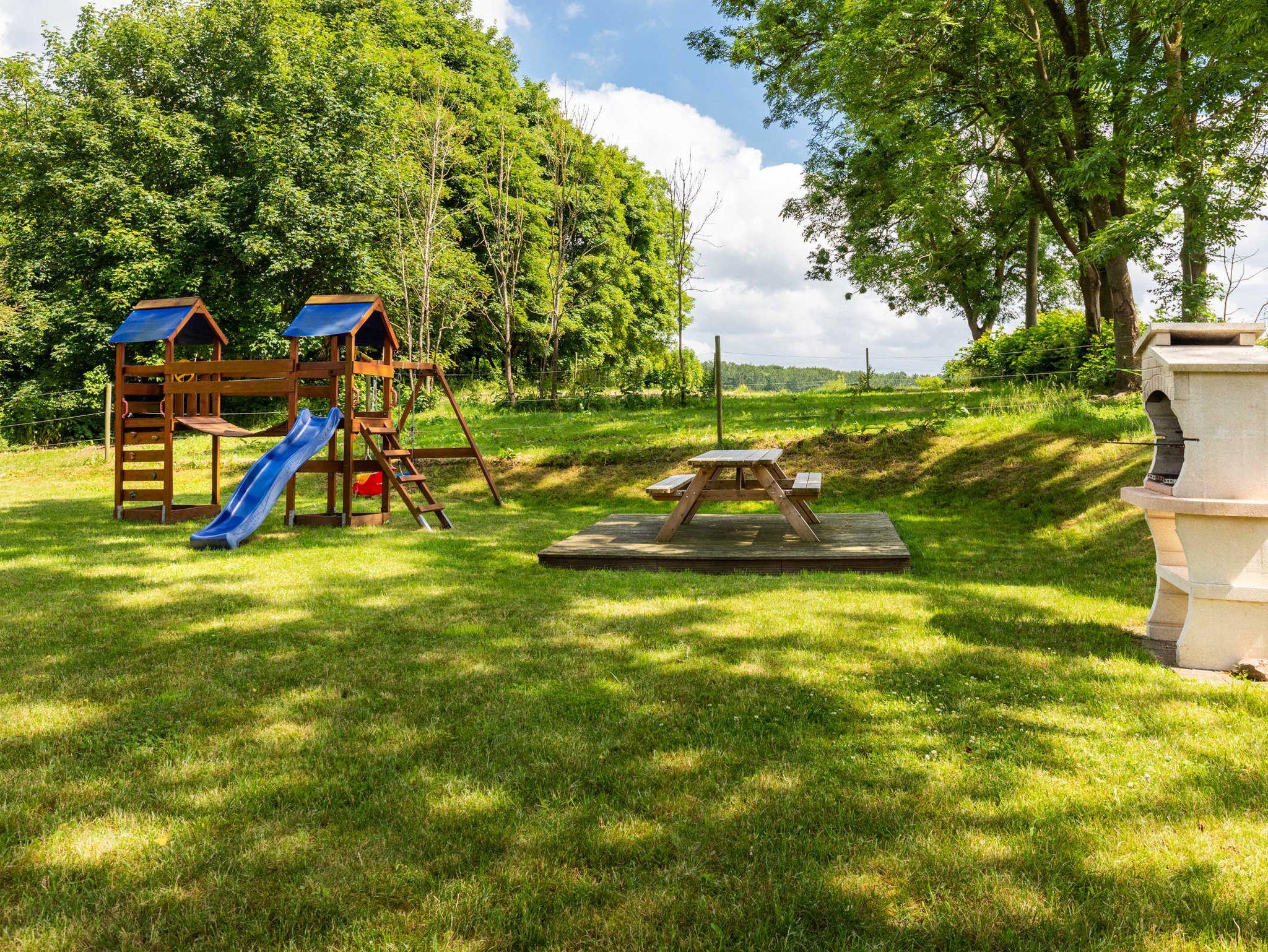 Spiel-und Bolzplatz im Ort, Kinderbett, Hochstuhl, Kinderwagen (zum Buggy umbaubar), Steckdosenschutz, Treppenschutzgitter, Spielgerät zum Klettern, Rutschen und Schaukeln im Garten. Die Pferde auf der angrenzenden Koppel dürfen gern gestreichelt und unter Anleitung geputzt werden. Nach Absprache können die Kinder auf dem Pferd geführt werden oder Reiten lernen. Dies auf dem nahegelegenen privaten Pferde- und Reiterhof. Auf Wunsch kann ein Babysitter Service kann organisiert werden.