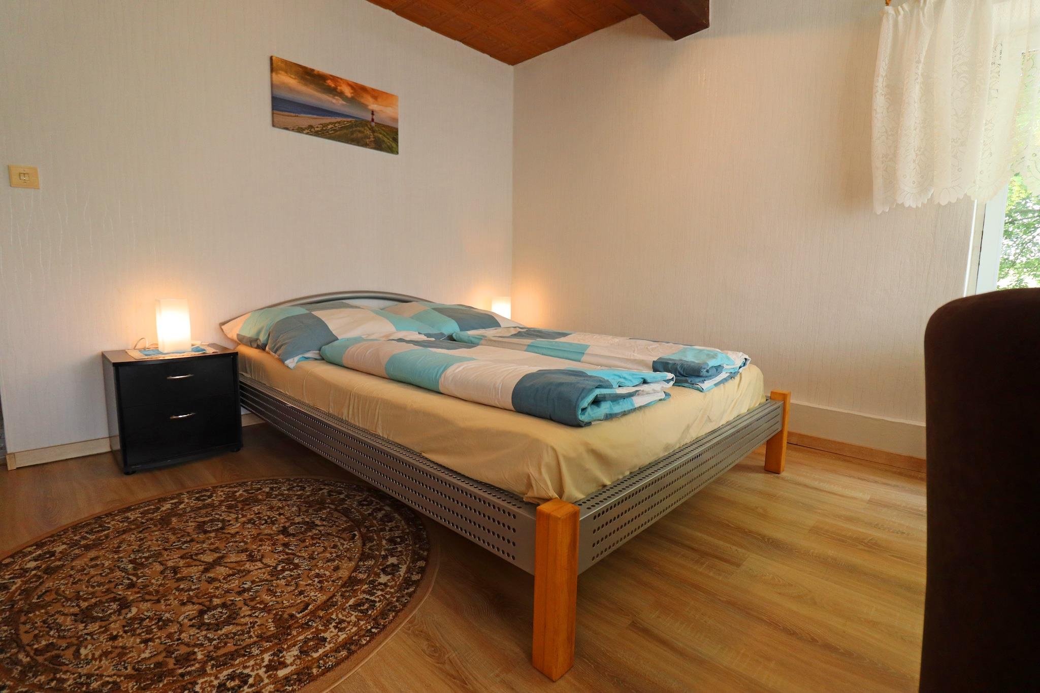 Dette kæledyrsfrie feriehus i den rolige landsby Brusow nær Kröpelin tilbyder et hyggeligt tilflugtssted for par eller små familier. Beliggende kun 12-14 km fra sandstrandene i Kühlungsborn og Rerik, er det en fantastisk base for at udforske Østersøkysten. Besøgende kan nyde den lange promenade i Kühlungsborn, bestige Buk Fyrtårn for en flot havudsigt eller besøge det historiske Bothmer Slot i det nærliggende Klütz. Lejligheden i stueetagen har et veludstyret køkken med keramisk komfur, miniovn, mikroovn og kaffemaskine. Opholds- og soveområdet i åbent plan omfatter en kingsize-seng, enkeltsenge, en sovesofa og et fladskærms-tv med dvd-afspiller. Et badeværelse med bruser, varme og tankevækkende ekstraudstyr som en børneseng og høj stol sikrer komfort for alle gæster. Udenfor kan du nyde den indhegnede have, som deles med ejeren, komplet med terrasse, liggestole, grill og sikker cykelopbevaring. Omgivet af fredeligt landskab byder området på en blanding af natur og lokal charme. I Kröpelin, kun 1,5 km væk, finder du butikker, en læge og en bank. For at spise, tag til Kühlungsborn for restauranter ved havet eller prøv rustikke tyske retter i Rerik.