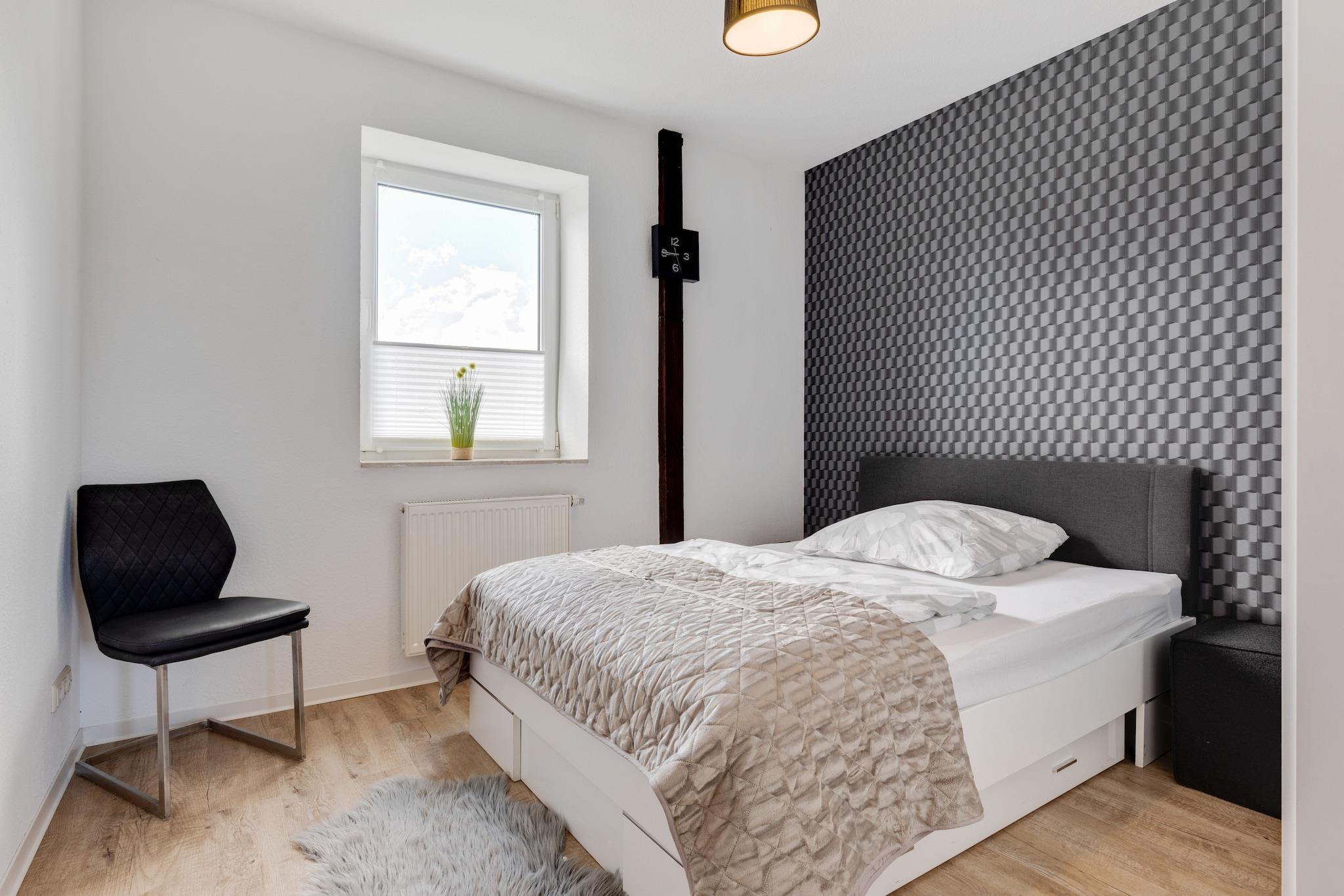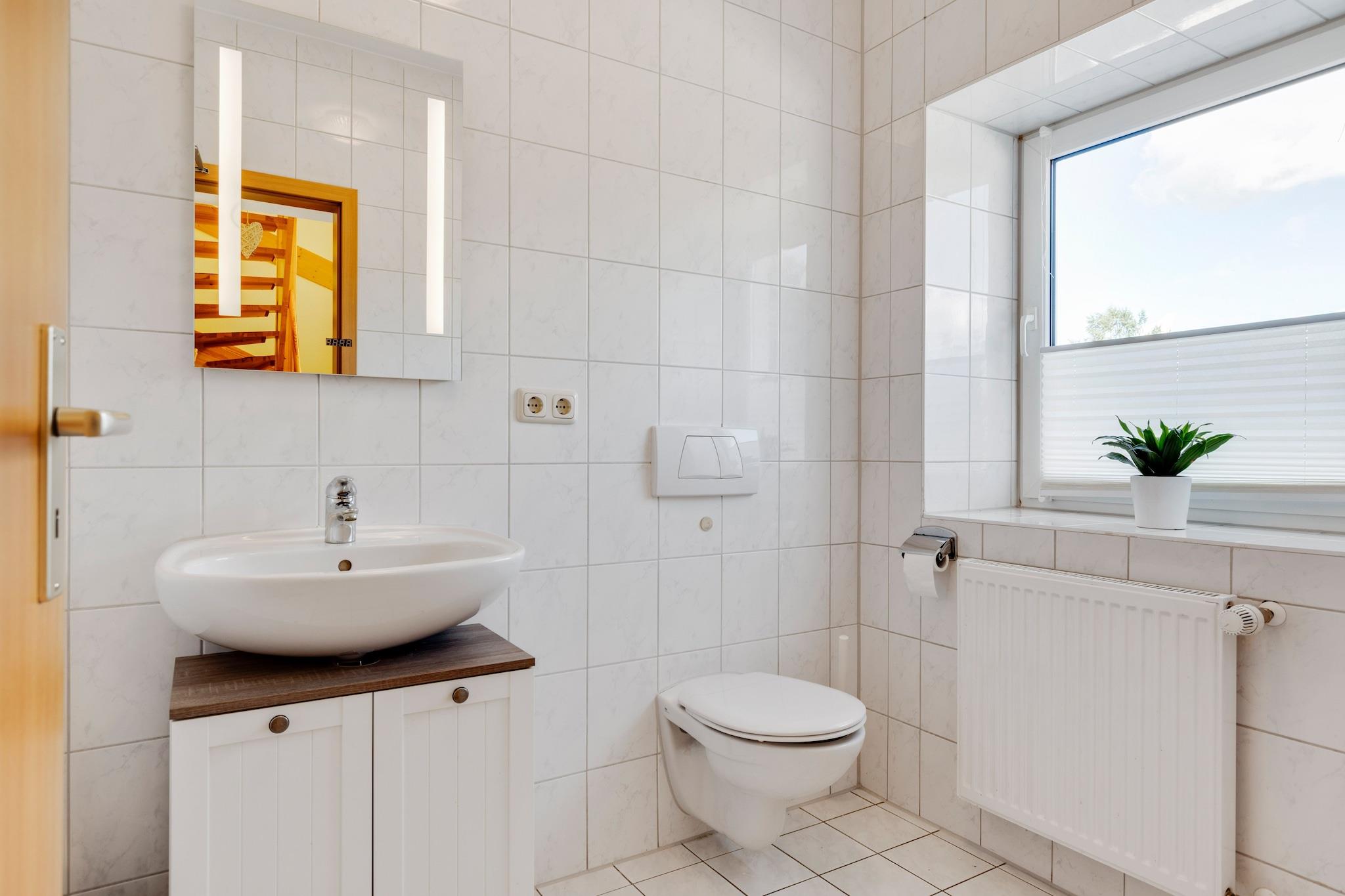 Dette smukt designede feriehus i Kröpelin er perfekt til op til 6 gæster og byder på rigelig plads og komfort på to etager. Stueetagen har et stort køkken med keramisk komfur, ovn, kaffemaskine og spisebord til 8 - ideel til fælles måltider. Et separat toilet og håndvask tilføjer bekvemmelighed, mens flere terrasser og en privat indhegnet have med grill, sandkasse og rutsjebane gør udendørslivet til en fornøjelse. Ovenpå indeholder stuen en dobbelt sovesofa og tv, og fire soveværelser tilbyder afslappende søvn med kingsize-senge fra 140 til 160 cm brede. To badeværelser med brusere, toiletter og håndvaske sikrer, at alle har plads til at blive friske op. Solenergi og solcreme tilføjer miljøvenlige detaljer, og faciliteter som carport, parkering og cykeludlejning i nærheden gør det nemt at udforske. Beliggende kun 1 km fra Kröpelins centrum og 8 km fra stranden ved Kühlungsborn, blander dette hjem landskabelig charme med adgang til kysten.