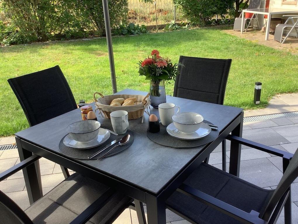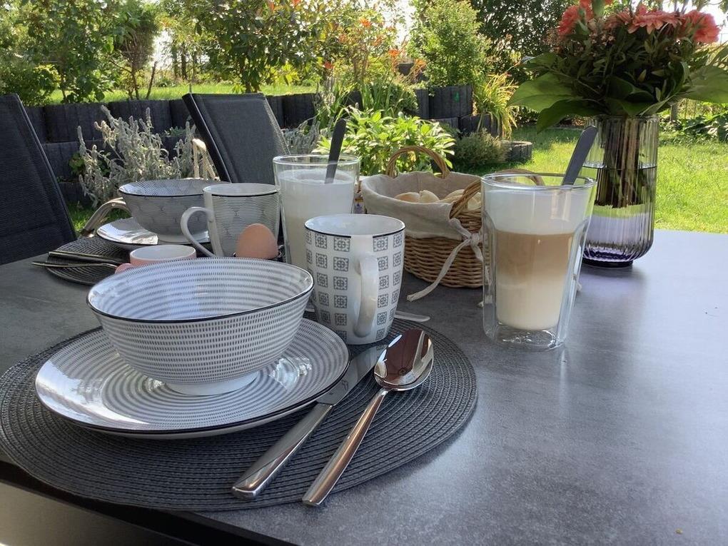 Die offene Wohnküche ist mit einem Geschirrspüler, einer Mikrowelle und einer Kaffeemaschine ausgestattet. Zudem steht den Gästen Streaming-Dienste (Netflix, Amazon, Disney) und Internet über WLAN zur Verfügung. Für Fahrräder gibt es eine Abstellmöglichkeit und die Terrasse lädt zum gemütlichen Verweilen ein. Wenn das Wetter mal nicht mitspielt, können Sie überdacht auf einer kleinen Terrasse vor dem Haus dem Regen zuschauen.