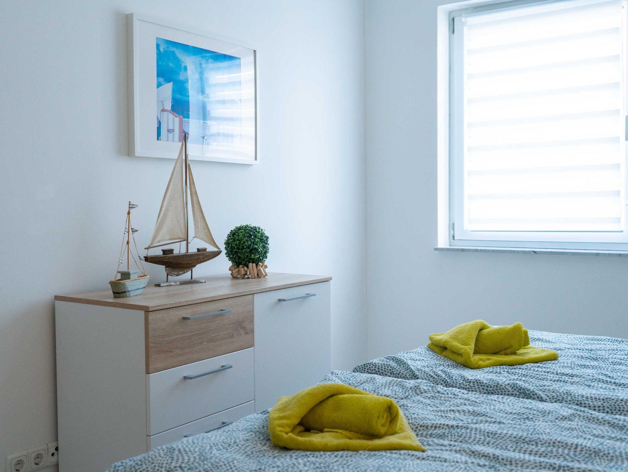 Für erholsamen Schlaf sorgen zwei separate Schlafzimmer mit Doppelbetten (200x200 cm; getrennte Matratzen). Weitere vier Schlafplätze (90x200 cm, jeweils zwei Matratzen nebeneinander) befinden sich in den beiden ausgebauten Dachgiebeln, die über eine Leiter erreichbar sind (Hinweis: Deckenhöhe dort ca. 1,40 m).