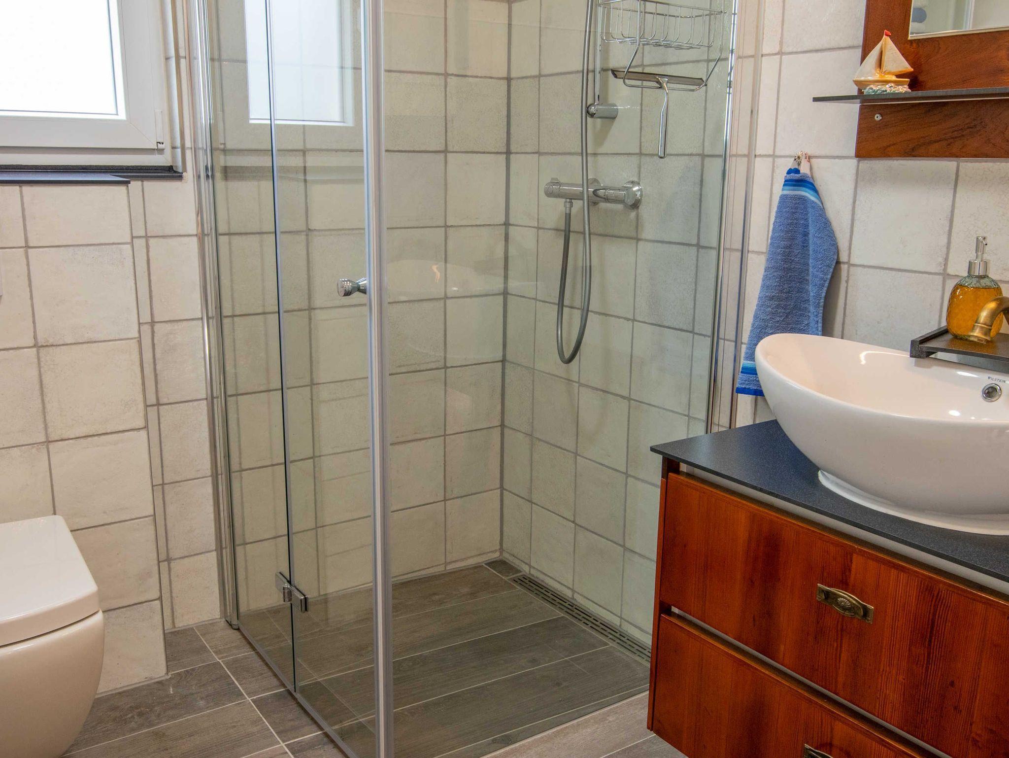 Das liebevoll renovierte Maleratelier ist 50m² groß. Im Erdgeschoss des Ferienhauses befindet sich die geräumige Wohnküche mit Schlafsofa, Kamin und Einbauküche. Die Einbauküche ist umfangreich ausgestattet mit Herd, Backofen, Mikrowelle und Kühlschrank mit Gefrierfach. Das Badezimmer befindet sich ebenfalls im Erdgeschoss und verfügt über WC, barrierefreie Dusche, Fußbodenheizung und Handtuchtrockner. Über die bequeme Wendeltreppe gelangt man in das Obergeschoss und den offenen Schlafraum mit Boxspringbett (140x200). Dieser Raum ist auch der Durchgang zum zweiten Schlafzimmer mit Doppelbett (160x200). Auf der angrenzenden großen Terrasse gibt es Sitzmöglichkeiten und einen Grill.