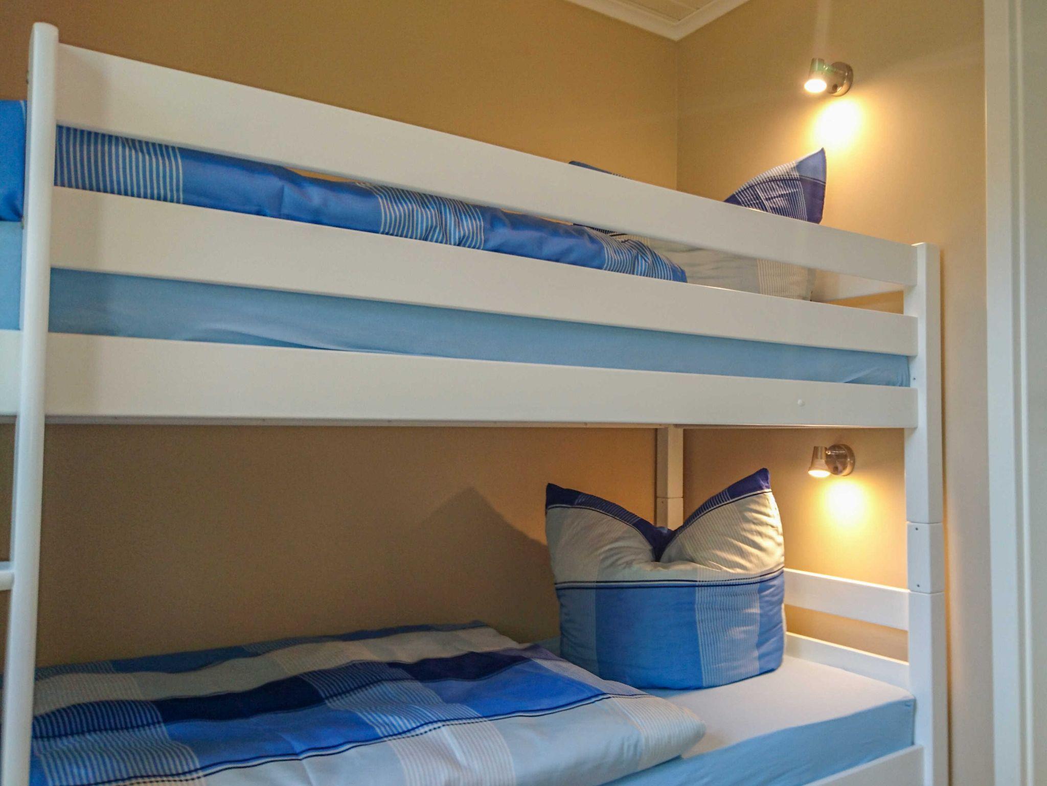 Das ebenerdige Ferienhaus verfügt über ein großes Wohnzimmer mit Deko-Kamin, SAT-TV, zwei separate Schlafzimmer (ein Schlafraum mit 2 Betten (90x200cm) und ein Schlafraum mit Etagenbett (90x200cm)), eine komplett ausgestattete Küche mit Herd, Geschirrspüler, Minibackofen, Mikrowelle, Kühlschrank mit Gefrierfach, Wasserkocher und Toaster sowie ein Bad mit Dusche, WC und Haartrockner.