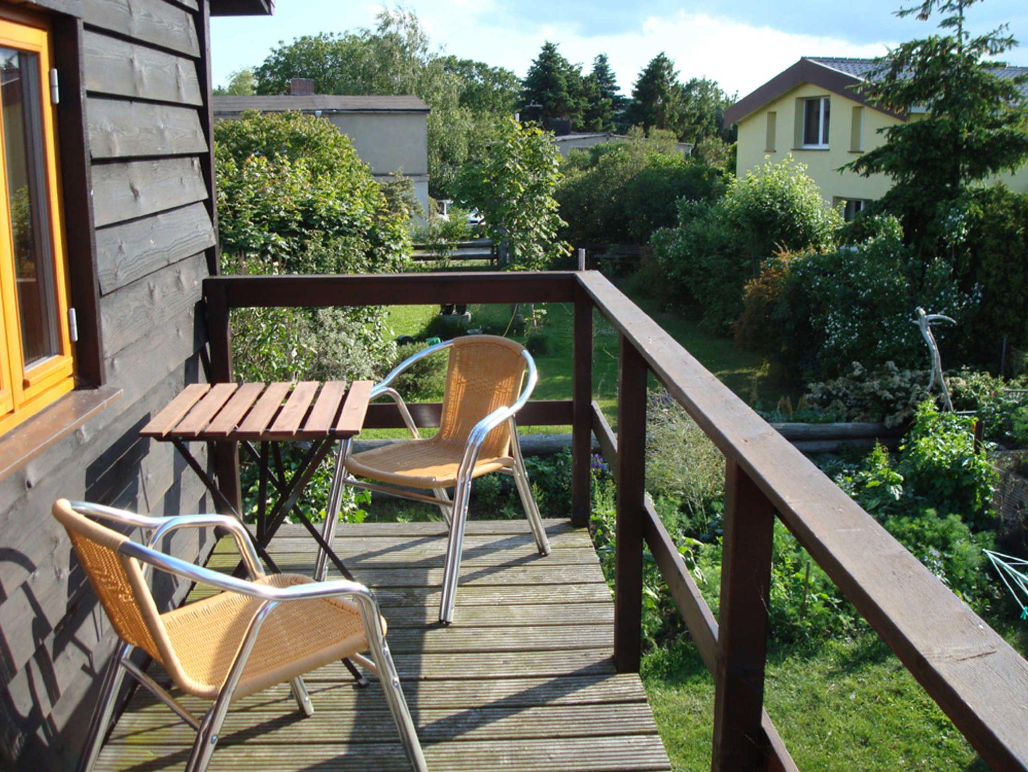 Vom Balkon hat man einen schönen Blick über den Garten und zum Teil über den Greifswalder Bodden.