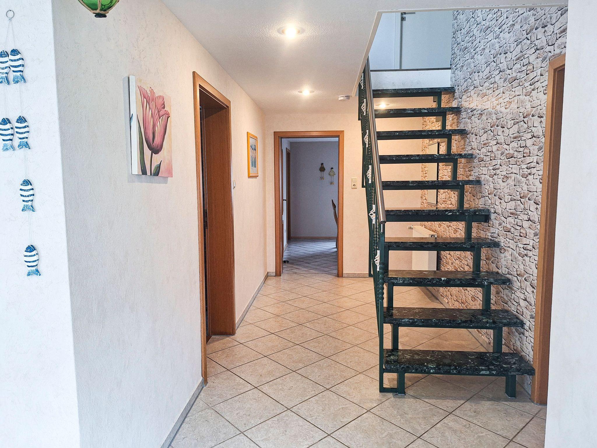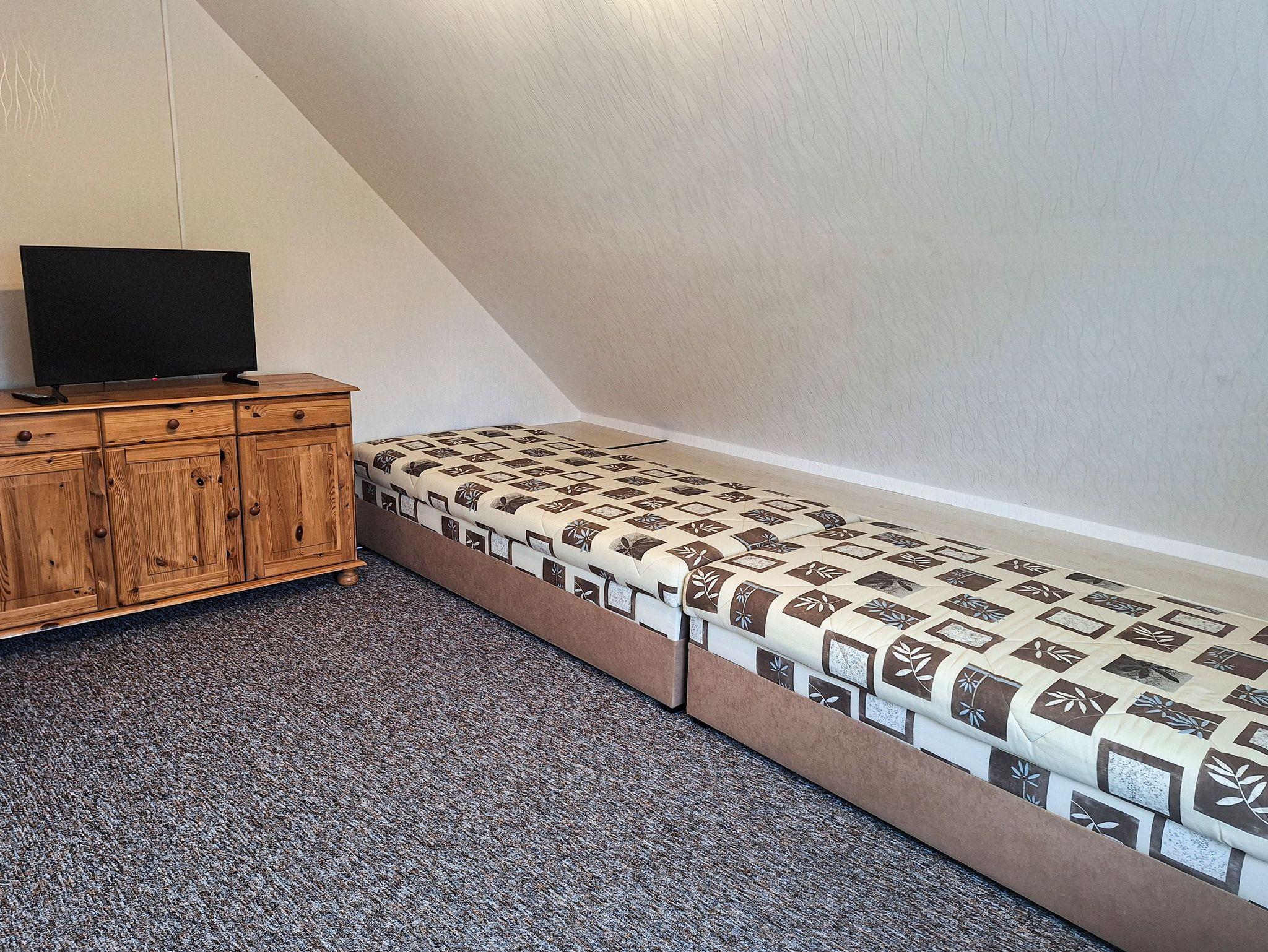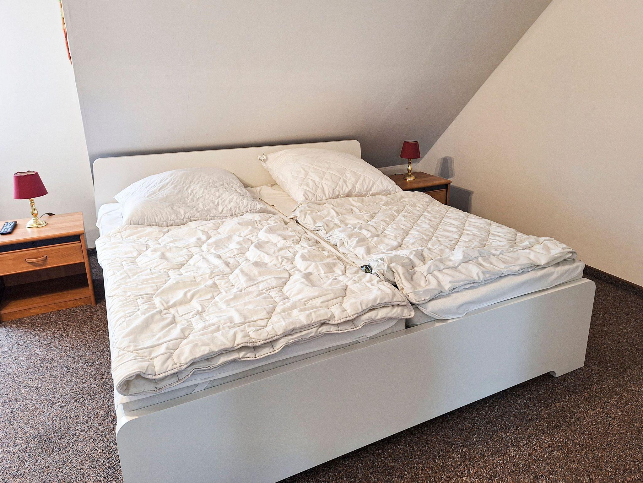 Das 110m² große Ferienhaus ist gemütlich auf zwei Etagen eingerichtet und bietet bis zu 6 Personen viel Platz. Es stehen Ihnen ein geräumiges Wohnzimmer mit Couch und TV, drei getrennte Schlafräume, eine separate, komplett ausgestattete Küche mit Geschirrspüler, zwei Bäder jeweils mit Badewanne oder Dusche und eine gemütliche Diele zur Verfügung. Ein Schlafzimmer verfügt über ein Doppelbett (180x200; getrennte Matratzen), im zweiten und dritten Schlafzimmer befinden sich jeweils zwei Einzelbetten (90x200).