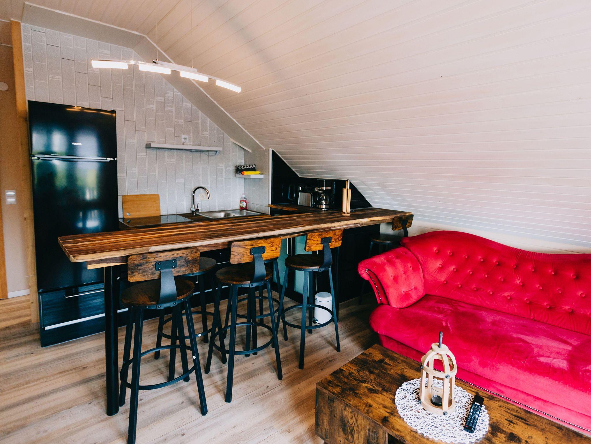Das geräumige Appartment mit ca. 54qm verfügt über ein Doppelbett und ein Schlafsofa. Eine Küchenzeile und moderne Bar mit 6 Barhocker stehen zum gemütlichen essen zur Verfügung.