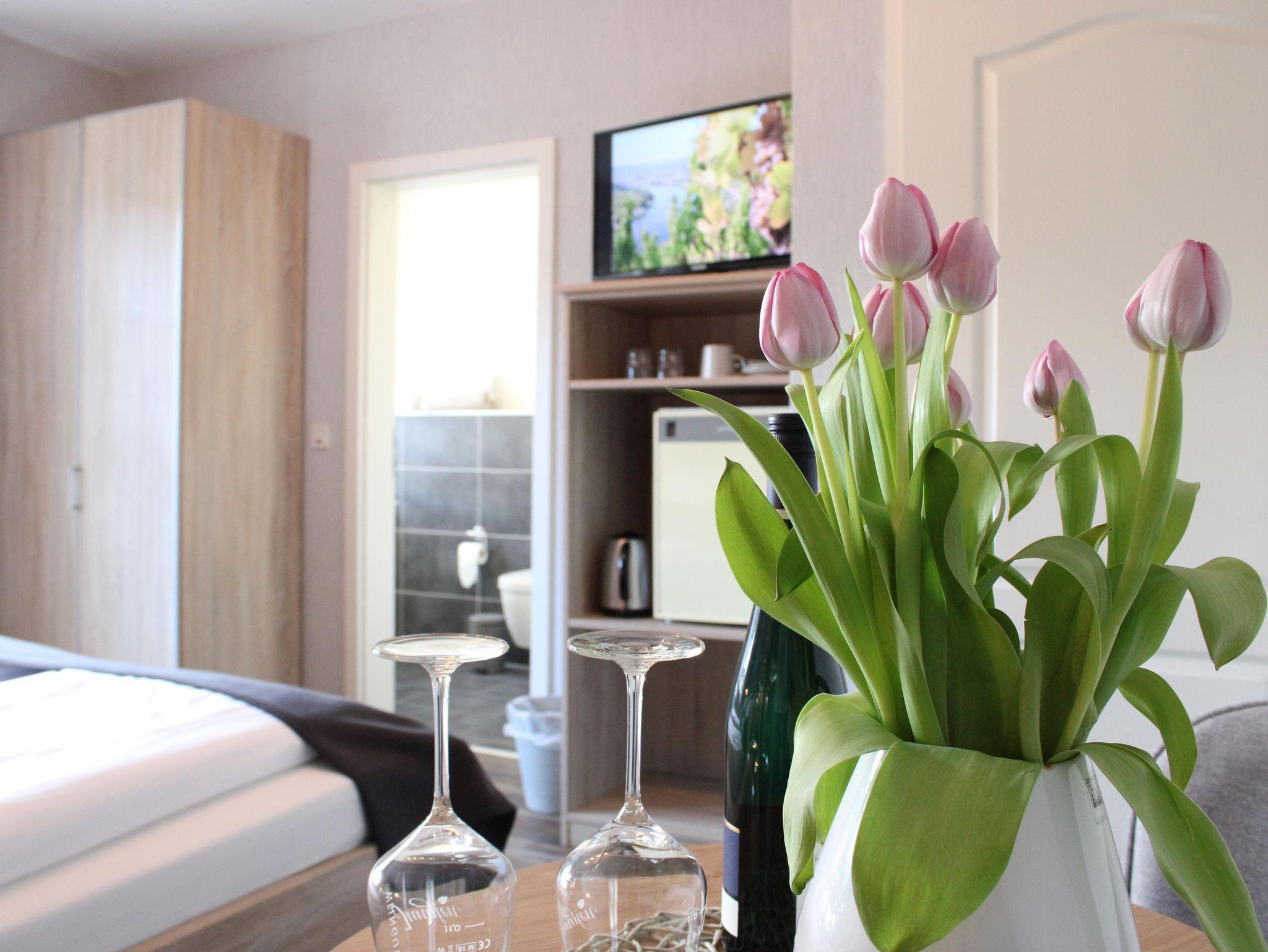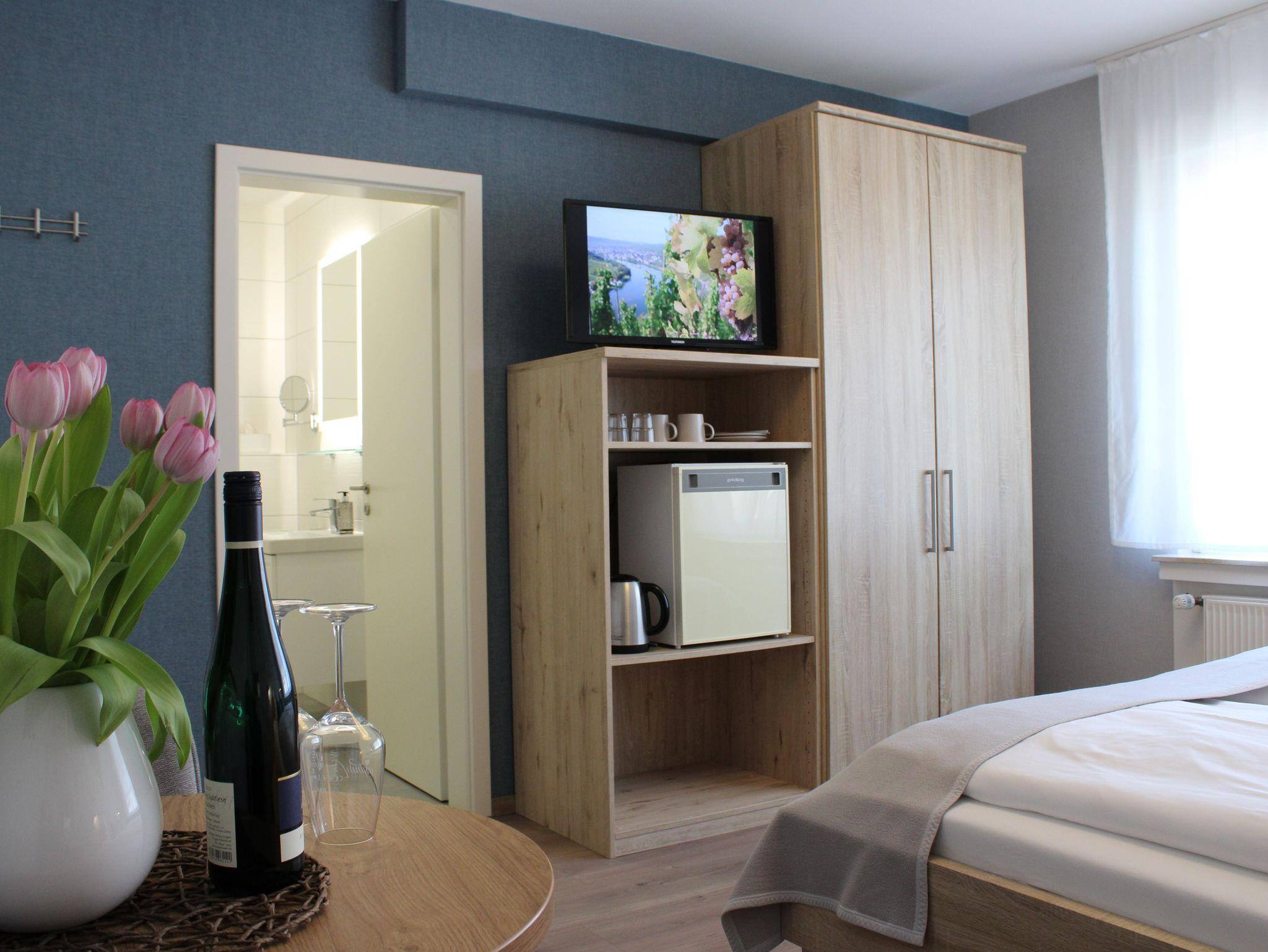 Die Gästezimmer “Kerner Stube” und “Dornfelder Stube” befinden sich im ersten Stock unseres Weinguts und sind mit Flatscreen-TV, Kühlschrank, Wasserkocher, Radiowecker und Zimmersafe ausgestattet.