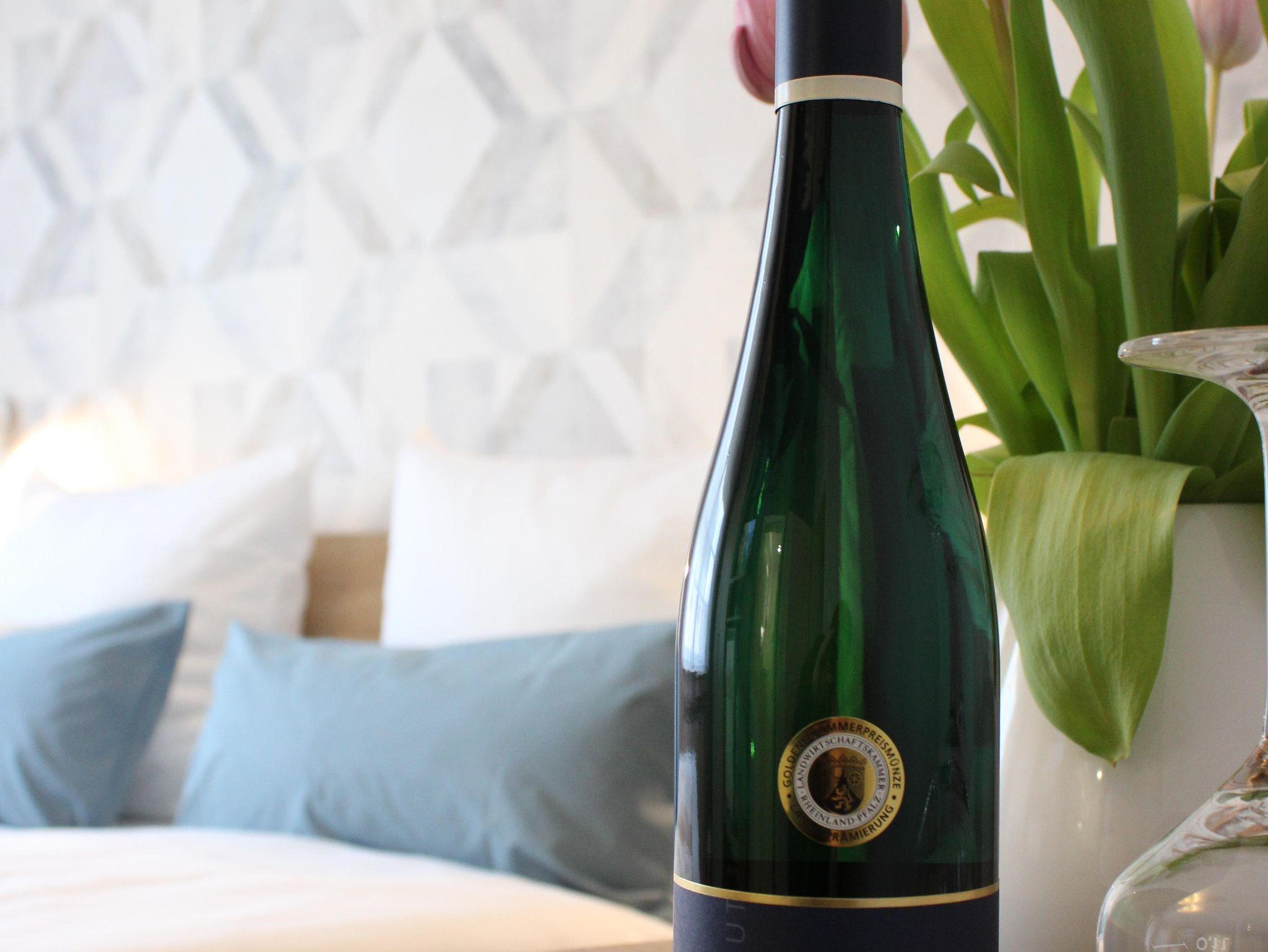 Lassen Sie Ihren erlebnisreichen Urlaubstag bei einem guten Glas Wein ausklingen - Rot oder Weiß, Trocken oder Lieblich; wir beraten Sie gerne.