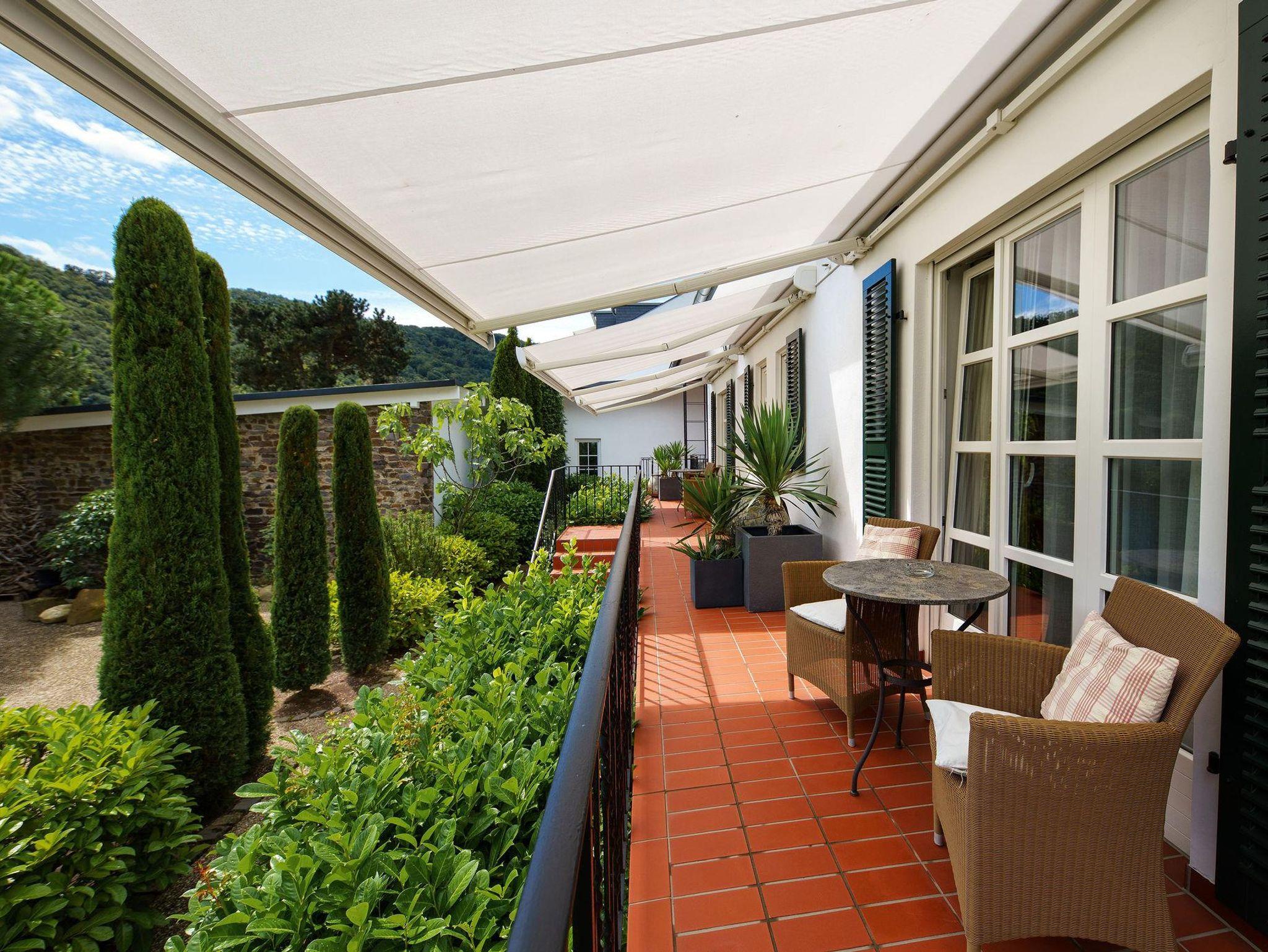Warme Farben und hochwertige aufeinander abgestimmte Stoffe im Landhausstil geben jedem Zimmer eine individuelle Gemütlichkeit. Der Blick auf den mediterranen Garten und die prächtige Mosellandschaft machen den Aufenthalt zu einem Erlebnis.