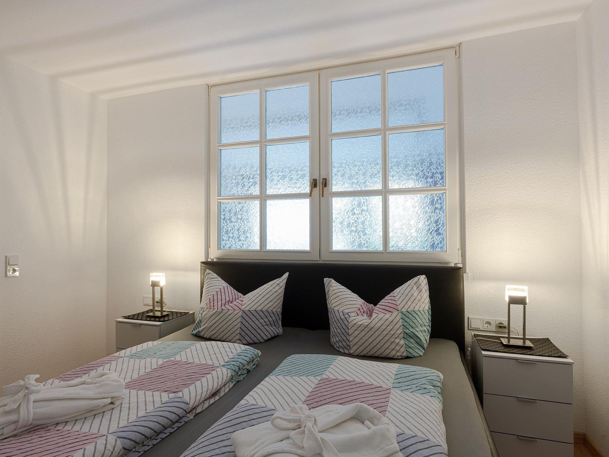 1 oder 2 getrennte Schlafzimmer mit neuen Polsterbetten, verstellbarem Lattenrost, (2. Schlafzimmer bei 2 Pers mit 15,00€ Aufpreis pro Nacht) jedes Schlafzimmer verfügt über Bad mit DU/WC, Fön und Kosmetikspiegel)