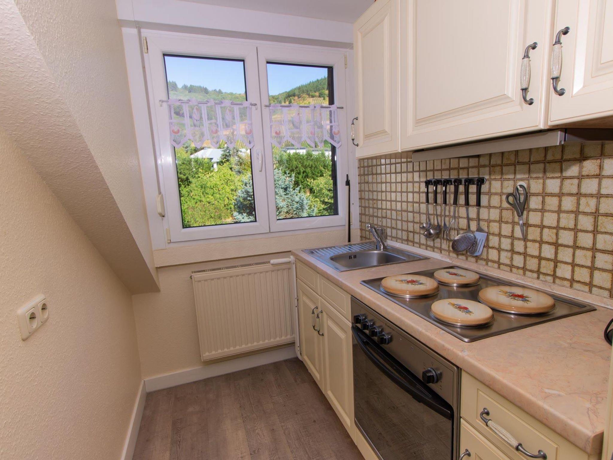 Hübsche neu renovierte Ferienwohnung mit großem Wohnraum, Sitz- und Essecke, Sat-TV (großer Flachbildfernseher), Radio mit CD-Player, kostenloses WLAN Gut ausgestattete Küche mit Backofen, Eierkocher, Toaster u.s.w.