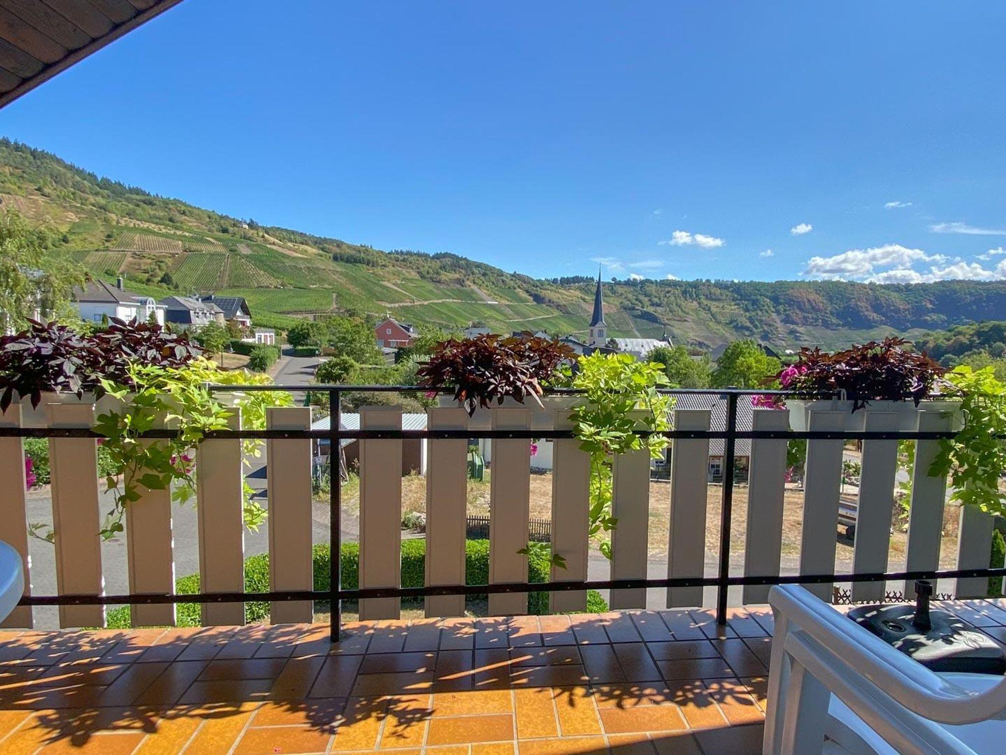 Großer Balkon mit Blick über die Weinberge bis zur Bergkapelle.