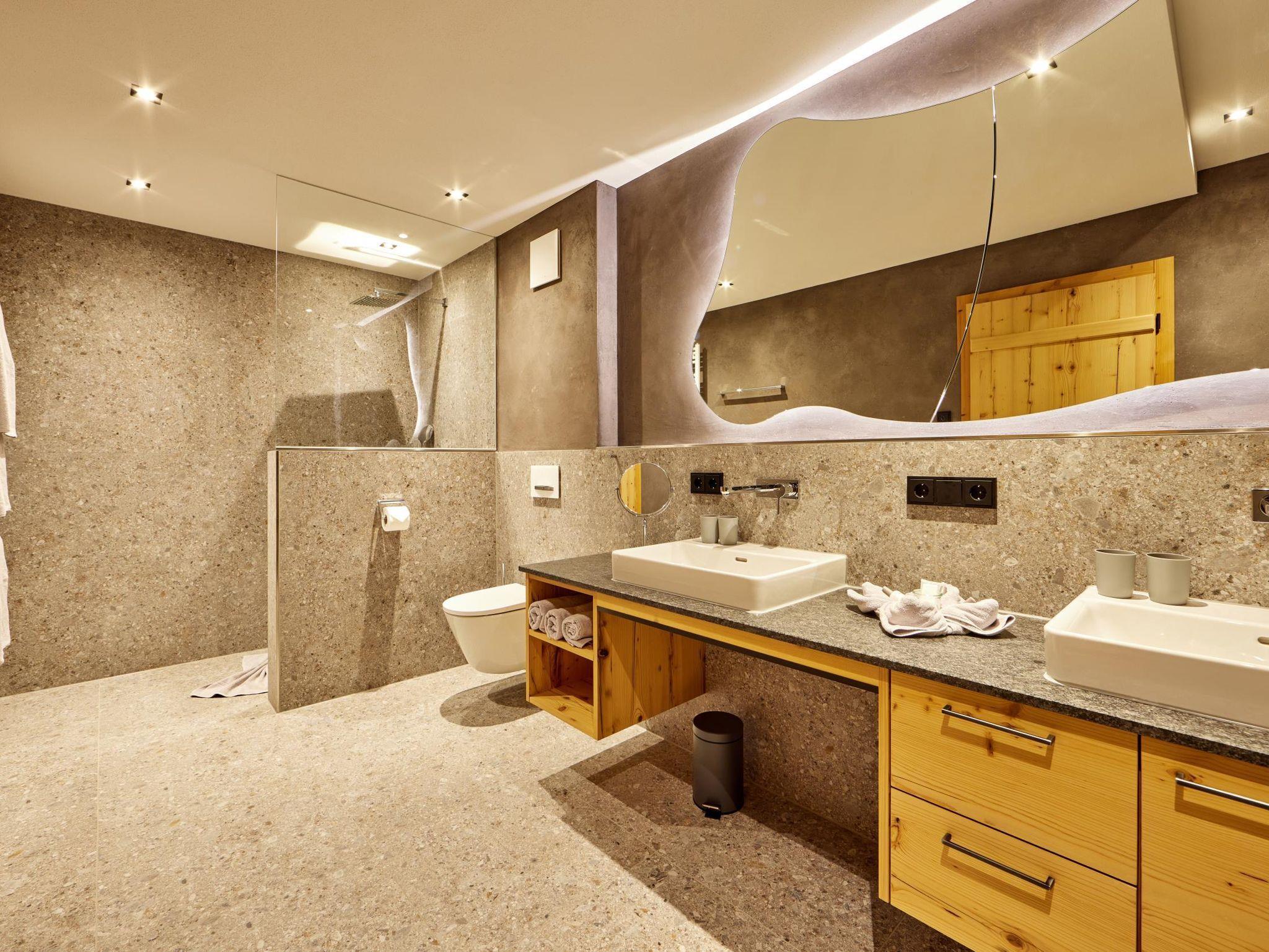 Tagträumer Ihre Ferienwohnung mit 113 m² erreichen Sie ebenerdig und barrierefrei direkt von Ihrer Garage. Hier befinden sich alle Panoramafenster zur Ostseite. Es finden bis zu 6 Personen ausreichend Platz. Die Wohnung verfügt über ein Schlafzimmer für 2 Personen mit Doppelbett und eigenem Badezimmer sowie ein Schlafzimmer für 4 Personen mit Doppelbett und Stockbett. Das angrenzende große Badezimmer verfügt über einen Wendekreis von 1,50 m somit für Rollstuhlfahrer geeignet. Die Badezimmer sind ausgestattet mit Waschbecken, Toilette und ebenerdiger Dusche. Ein separates WC steht Ihrem Besuch zur Verfügung. Zentral genießen Sie einen großen Wohn-Essbereich für gemeinsames Beisammensein. Von hier aus gelangen Sie über 4 Stufen zu Ihrer Terrasse oder stufenlos über den Eingang. Ideal für Pärchen, Familien, Outdoor-Freaks und Aktivurlauber, die ihren Tag in unserer Ferienwohnung „Tagträumer“ entspannt ausklingen lassen.