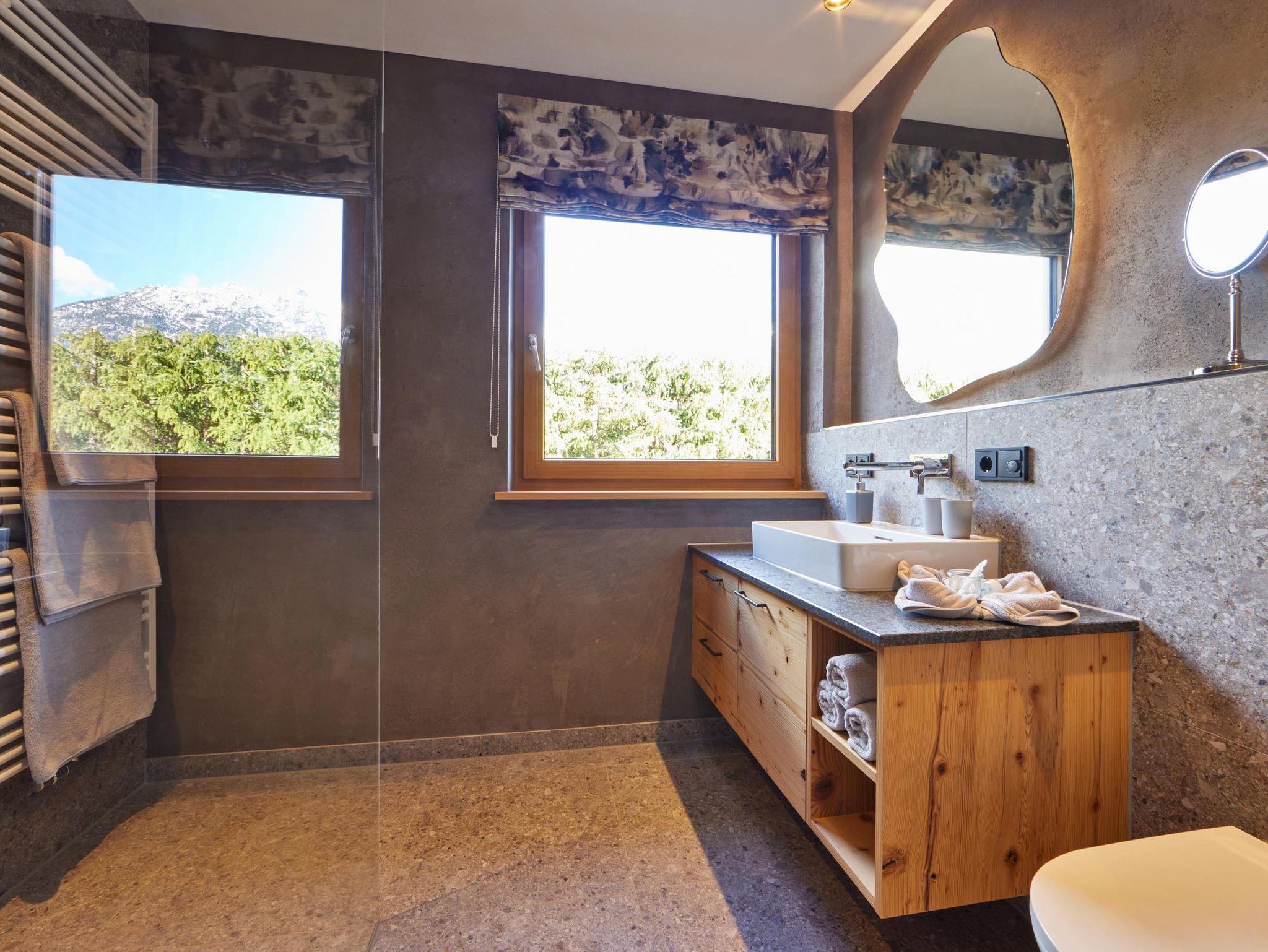 Momentensammler Ihre Ferienwohnung mit 68 m² erreichen Sie ebenerdig und barrierefrei direkt vom Parkplatz vor der Haustür. Hier befinden sich alle Panoramafenster zur Ost- und Südseite. Es finden bis zu 4 Personen ausreichend Platz. Die Wohnung verfügt über zwei Schlafzimmer mit Doppelbett für 2 Personen und 2 Badezimmer. Der Balkon zur Ostseite und direkter Zugang zur großzügigen, sonnigen Süd-Terrasse mit Garten vom Wohn- und Essbereich bieten viel Freiraum. Unverbauter Blick bis zur Zugspitze rund den Genuss ab. Erlebte Momente können Sie abends perfekt auf Ihrer Süd-Terrasse Revue passieren lassen.
