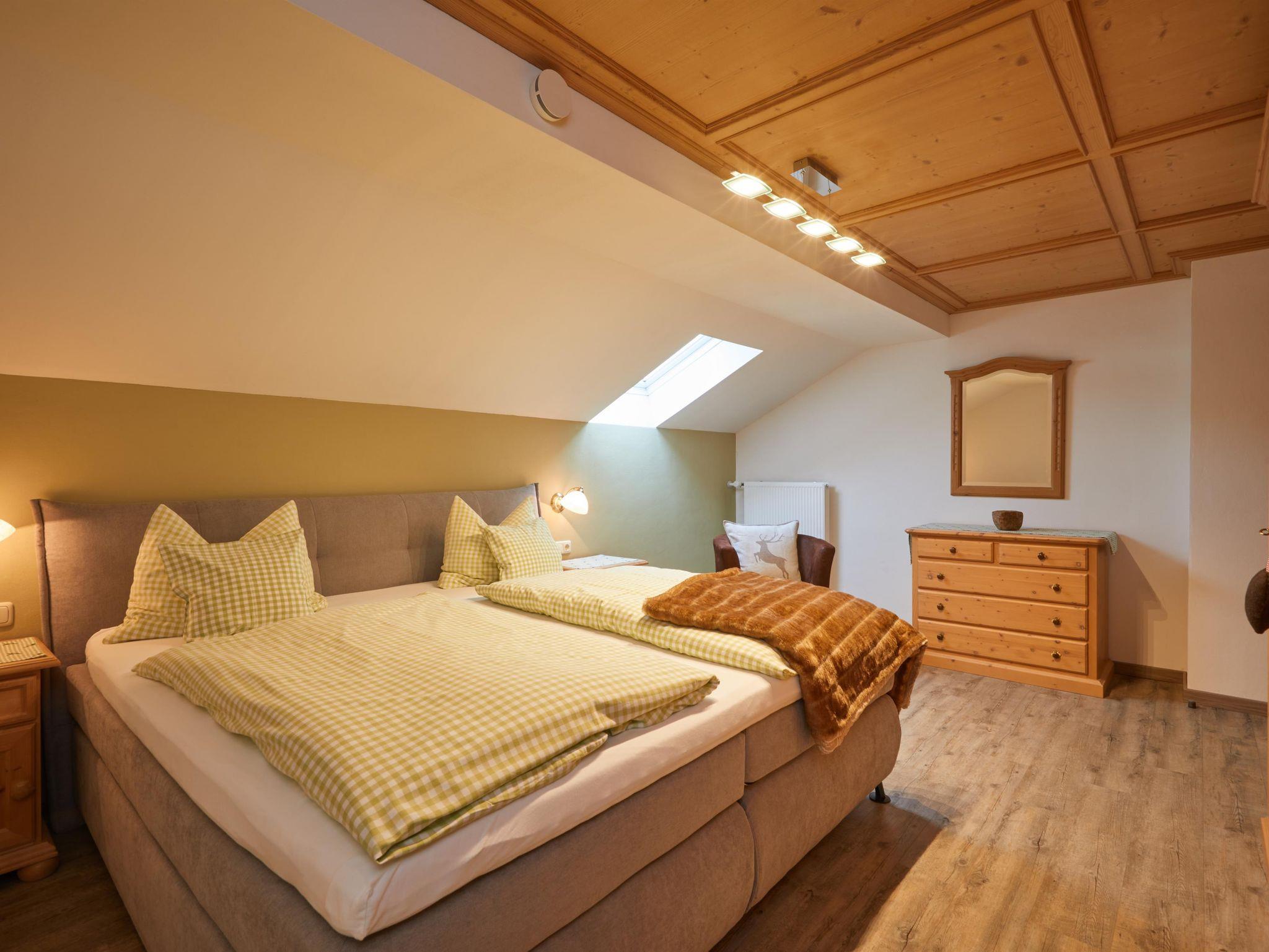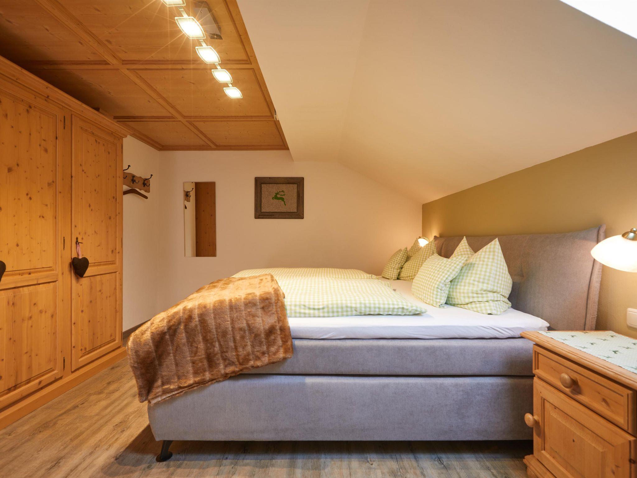 ****Wohnung Gams 63 qm, 2.Stock Dachgeschoß mit Südbalkon, Panoramablick auf das Karwendel- und Zugspitzmassiv. Hochwertige Ausstattung, Holzvinylboden, Eingangsbereich mit Leseecke, Schlafzimmer mit Boxspringbett (2x2m), Wohnzimmer mit Couch und Fernsehsessel, gemütliche Eckbank, Küchenzeile mit Spülmaschine, Backofen mit Ceranfeld und sämtl. elektr. Geräten. Dusche/WC mit Regenwalddusche, LED-Beleuchtung, Handtuchwärmer, Kosmetikspiegel und Haarfön. Flachbildschirm, Stereo-Anlage, Safe. kostenloser W-LAN Internetzugang.