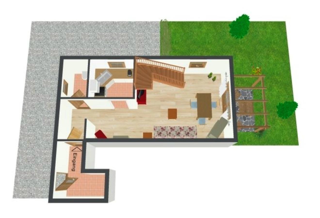 Die Ferienwohnung "Seydel" befindet sich in idylische Lage mit Bergblick. Vom Eingangsbereich mit Gäste WC kommen Sie in das offene Wohnzimmer mit Zugang über die Terasse in den großen Garten. Hier kann eine Grillhütte genutzt werden. Die separate Küche mit Spülmaschine, Cerankochfeld ist ebenfalls im Erdgeschoss gelegen. Über die Holztreppe gelangen Sie in das Obergeschoss mit dem Schlafzimmer (Bettenmaß 180 x 200cm).cm. Der komplette Wohnbereich ist gefliest, das Schlafzimmer mit Parkettboden belegt. Ein PKW-Stellplatz sowie ein Fahrradabstellraum befinden sich am Haus. Die Sauna im Keller kann gerne mitgenutzt werden.