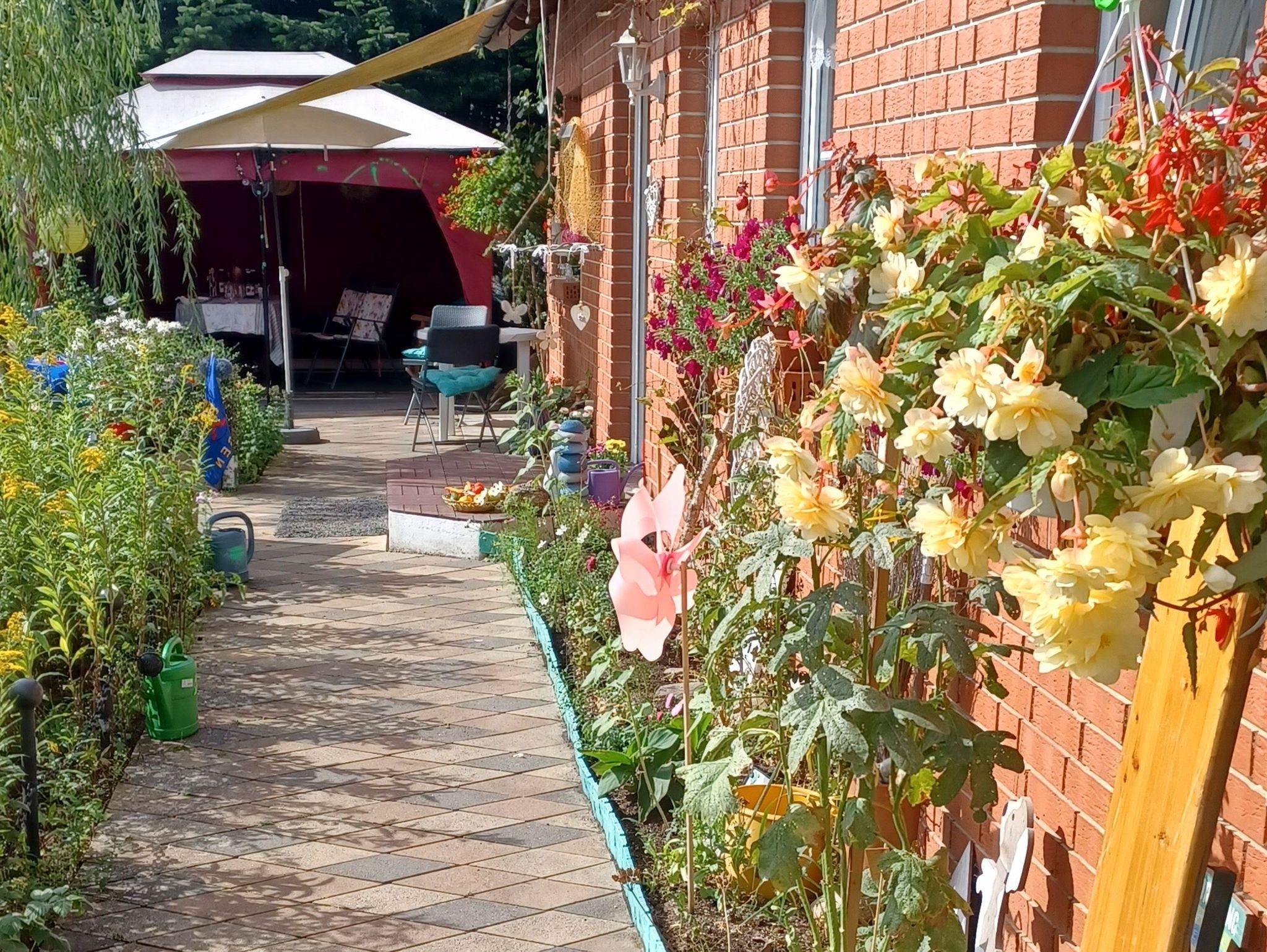 Im 3000m² großen Garten gibt es eine große Liegewiese und eine möblierte Sitzecke mit Grill.