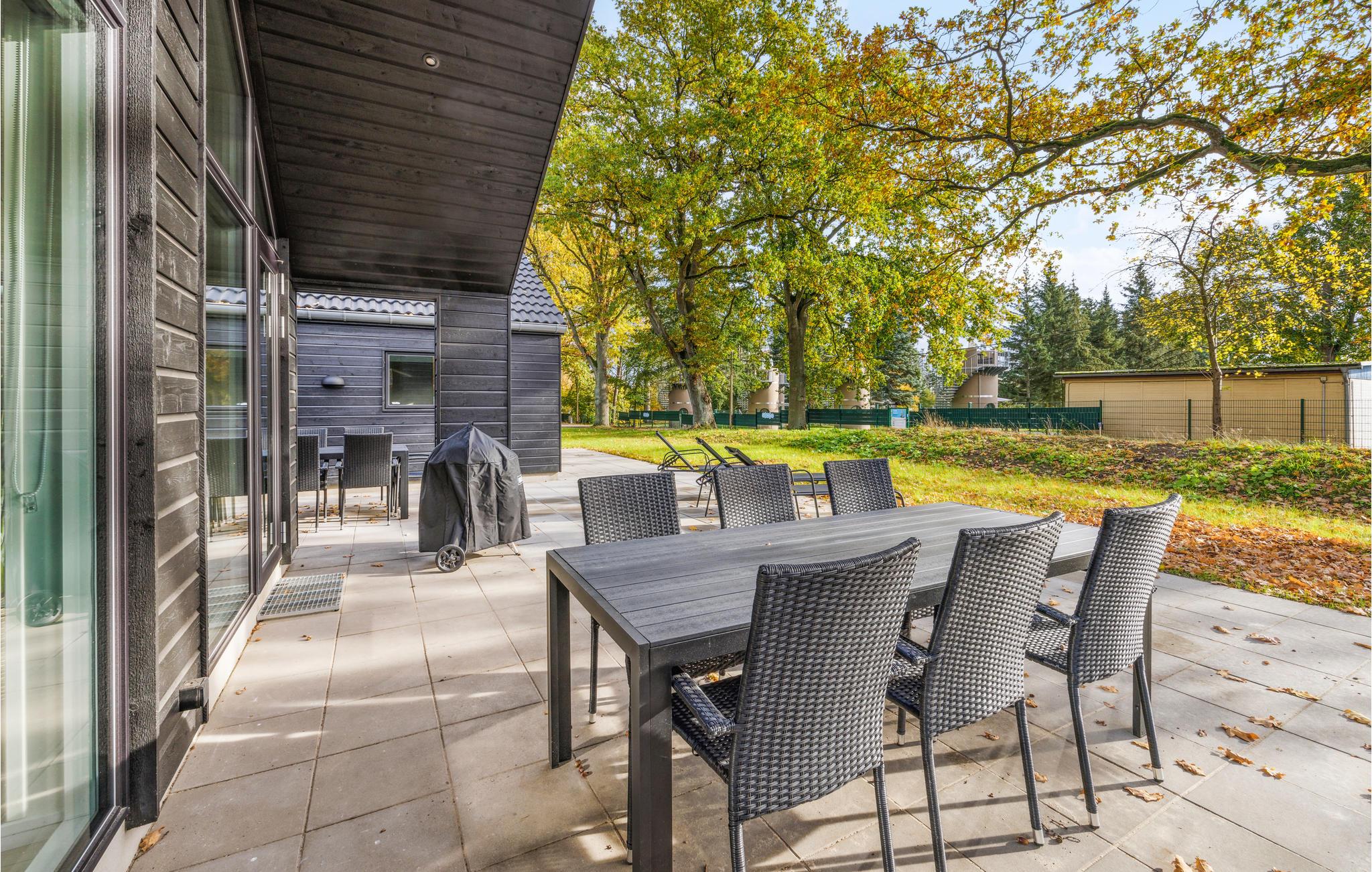 Rummeligt poolhus med spabad, sauna og en række komfortable og familievenlige faciliteter. Dette moderne feriehus ligger i en lille feriehusby nær Krakow am See og ikke langt fra Krakow-søen. Det byder på et lyst interiør af høj kvalitet og masser af plads og komfort til flere familier. Husets hjerte er den skønne opholdsstue med åbent køkken og plads til fælles madlavning. I kan så nyde de lækre måltider sammen i godt selskab ved det store spisebord. Nyd en omgang bordtennis, bordfodbold eller dart i aktivitetsrummet og forfrisk dig med en kold drink i baren.Den smukke pool med vandrutsjebane inviterer store og små til at tilbringe begivenhedsrige timer. Eller nyd en massage i spabadet og slap af i din egen sauna. Huset har fem soveværelser og hems med to madrasser, hvilket er særligt godt for børn, der gerne vil trives der. De tre badeværelser fuldender tilbuddet og gør huset særdeles velegnet til flere familier eller venner. På den rummelige terrasse er der plads til afslappende timer udendørs, mens børnene slipper dampen ud i haven. Der er også en legeplads på pladsen, som giver variation for de små gæster. Krakow am See er indlejret i det maleriske landskab i Mecklenburg Schweiz og Mecklenburg Lake District, hvilket gør det til en drømmedestination for elskere af uforglemmelige naturoplevelser. Uanset om det er en omfattende vandretur i Nebeltal, fuglekiggeri i Krakower Obersee naturreservat eller en tur til udsigtstårnet på Jörnberg, hvorfra du kan nyde en fantastisk udsigt over søen og den omkringliggende natur, kan du blive fortryllet af skønheden af landskabet overalt. I Krakow am See kan du slentre gennem den idylliske gamle bydel, beundre charmerende historiske bygninger, stoppe ved en café og fortsætte din tur langs søpromenaden, hvor du også kan leje både. Tag på spændende dagsture med hele familien, for eksempel til Güstrow Slot, Müritz Bjørneskov, Friluftsmuseet Agroneum Alt Schwerin eller Malchow Abeskoven, hvor der også er en sommerkælkebakke. En uforglemmelig ferie venter dig året rundt i dette feriehus.
