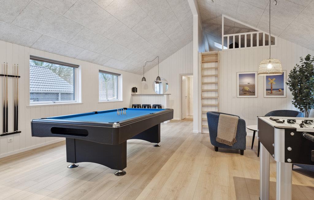 Skønt og stort sommerhus med indendørs pool, jacuzzi og sauna. Dette moderne feriehus ligger i en lille feriehusby nær Krakow am See og ikke langt fra Krakow-søen. Det tilbyder en høj kvalitet, lyst interiør og plads og komfort til din familieferie eller en ferie med venner. I den rummelige opholdsstue med åbent køkken kan I lave mad og slappe af sammen og tilbringe omgængelige timer ved det store spisebord med lækre måltider eller en aften med spil. Udfordr hinanden til en omgang bordtennis, bordfodbold eller dart i aktivitetsrummet og nyd en kold forfriskning i baren ind i. Den smukke pool med vandrutsjebane inviterer store og små til at tilbringe timevis af sjov. Eller nyd en massage i den store 6-personers jacuzzi og slap derefter af i din private sauna. Huset har syv soveværelser og en hems med fire madrasser, hvilket er særligt godt for børn, der gerne vil trives der. De tre badeværelser fuldender tilbuddet. På den rummelige terrasse er der plads til afslappende timer udendørs, mens børnene slipper dampen ud i haven. Der er også en legeplads på pladsen, som giver variation for de små gæster. Krakow am See er indlejret i det maleriske landskab i Mecklenburg Schweiz og Mecklenburg Lake District, hvilket gør det til en drømmedestination for elskere af uforglemmelige naturoplevelser. Uanset om det er en omfattende vandretur i Nebeltal, fuglekiggeri i Krakower Obersee naturreservat eller en tur til udsigtstårnet på Jörnberg, hvorfra du kan nyde en fantastisk udsigt over søen og den omkringliggende natur, kan du blive fortryllet af skønheden af landskabet overalt. I Krakow am See kan du slentre gennem den idylliske gamle bydel, beundre charmerende historiske bygninger, stoppe ved en café og fortsætte din tur langs søpromenaden, hvor du også kan leje både. Tag på spændende dagsture med hele familien, for eksempel til Güstrow Slot, Müritz Bjørneskov, Friluftsmuseet Agroneum Alt Schwerin eller Malchow Abeskoven, hvor der også er en sommerkælkebakke. En uforglemmelig ferie med mange aktiviteter venter på dig!