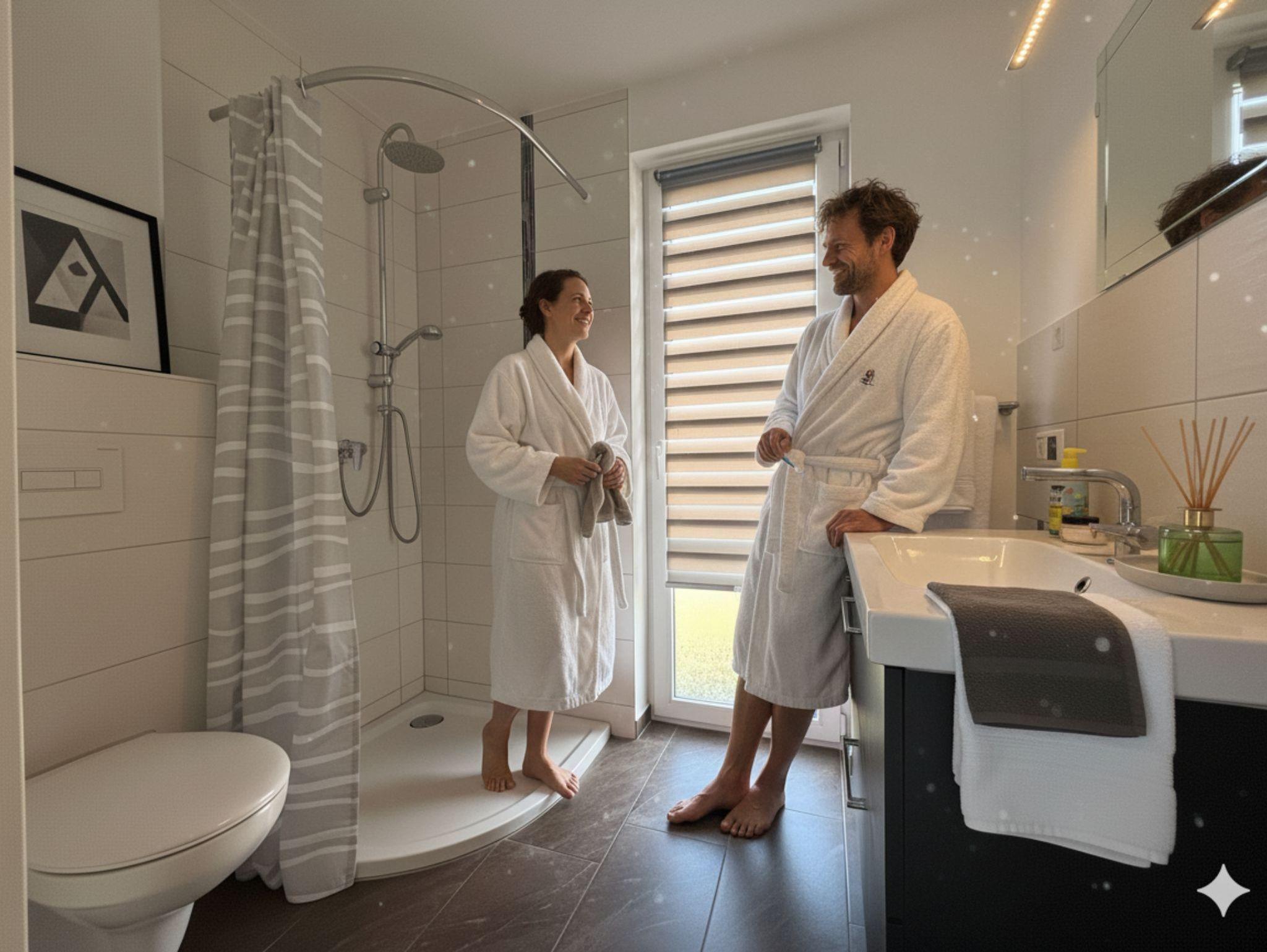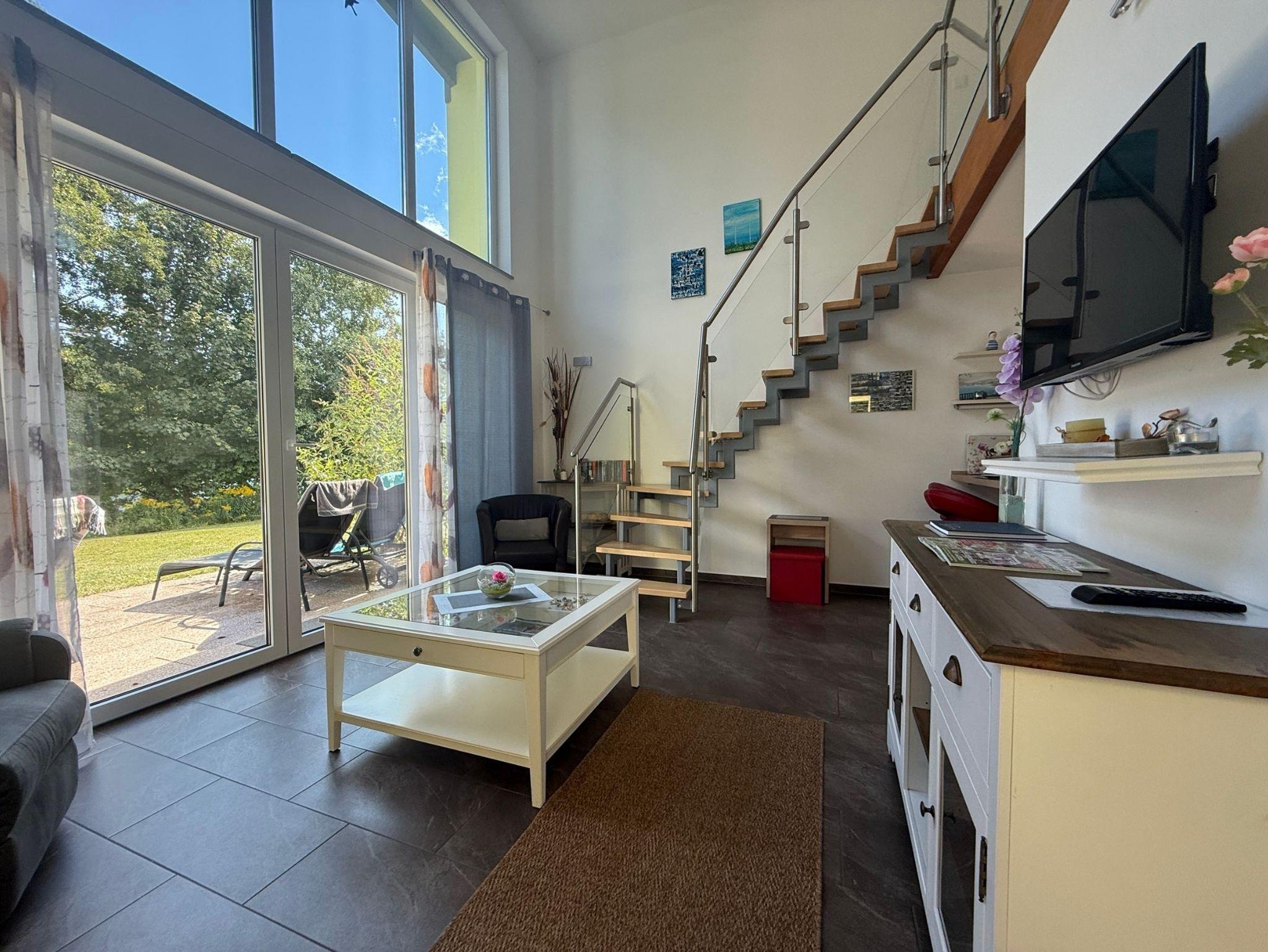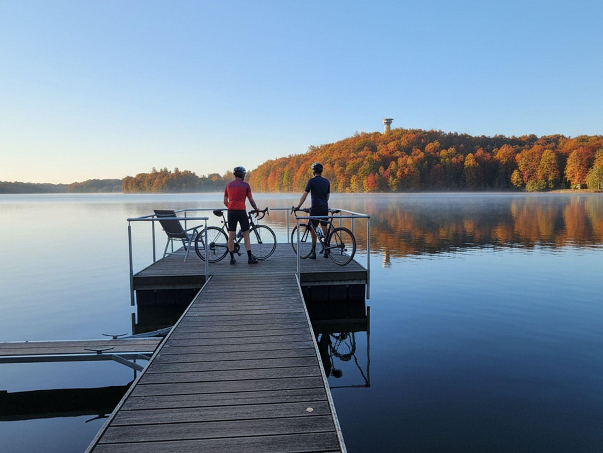 Lichtdurchflutete Glasfronten öffnen den Blick über den glitzernden See bis zum Aussichtsturm am gegenüberliegenden Ufer. Das sanfte Plätschern an der Badestelle vor den Terrassen, das Knistern des Kamins am Abend und der Sternenhimmel über dem Steg schaffen einen Ort, an dem Natur, Entspannung und Leichtigkeit miteinander verschmelzen.