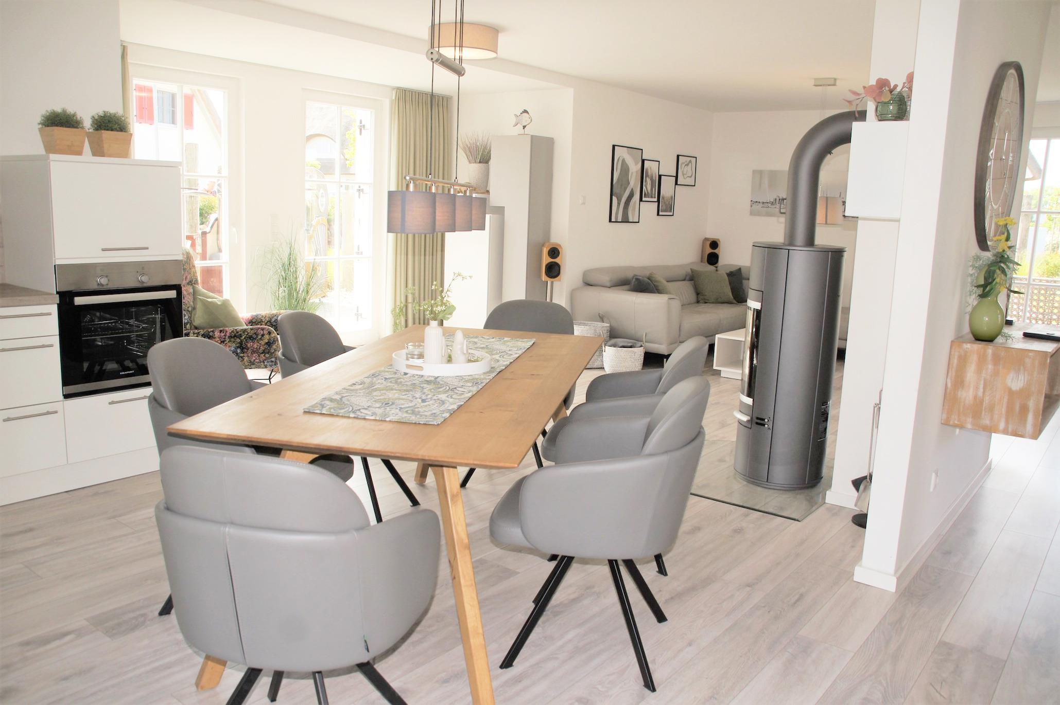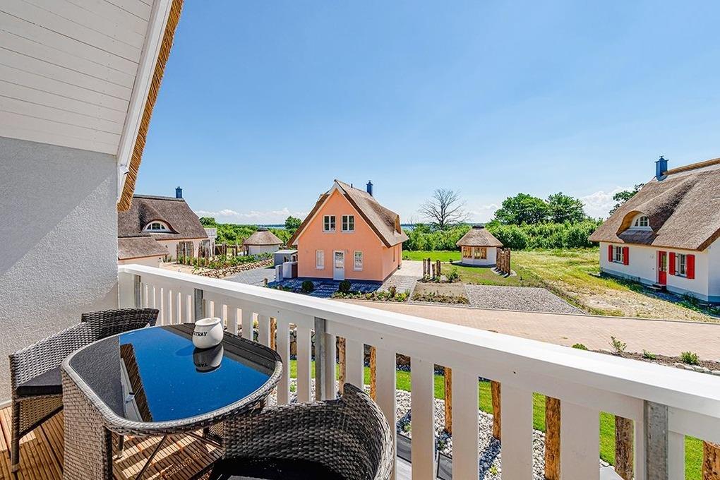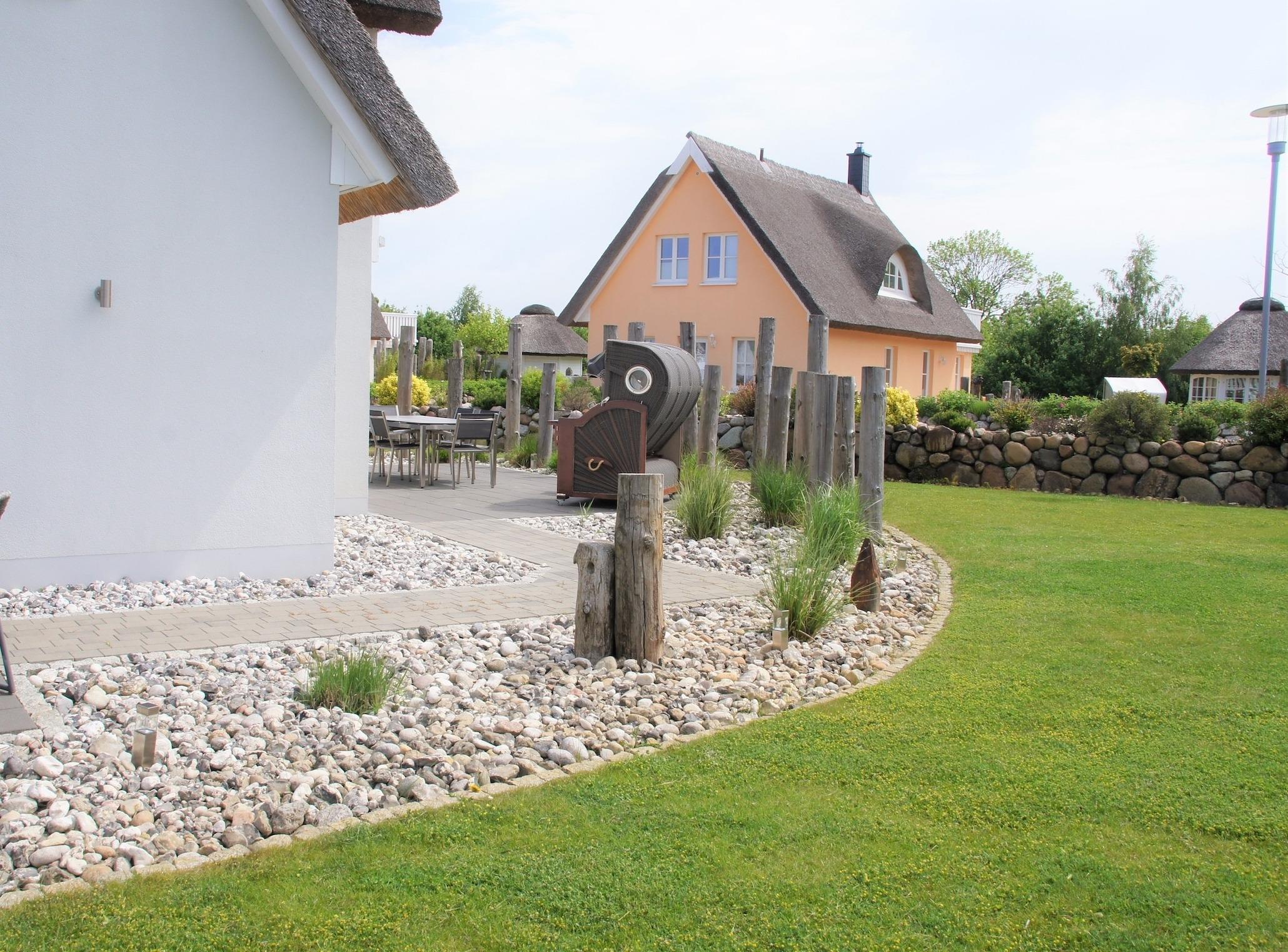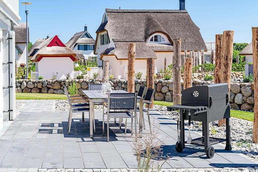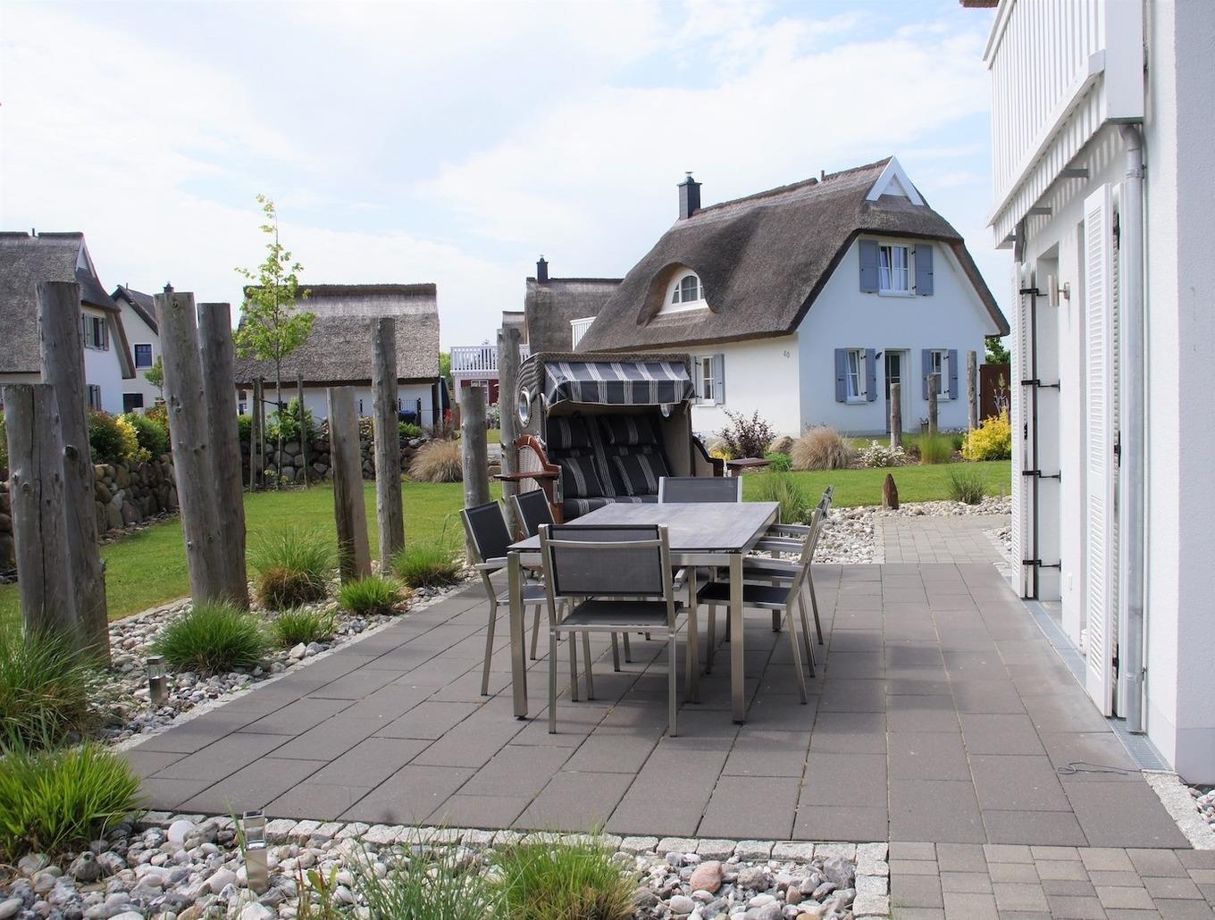 Wunderschönes Reetdach-Ferienhaus in einer liebevoll gestalteten Ferienhaussiedlung mit Sauna, Kaminofen, Balkon mit kleinem Wasserblick aus der zweiten Häuserreihe, Holzkohlegrill, schöner Garten mit 2 Terrassen,Strandkorb und Gartenmöbeln, 3 Schlafzimmer, max. 6 Personen, großer Wohn- Essbereich, 2 Bäder, Fußbodenheizung, gehobene Ausstattung mit moderner, geschmackvoller Einrichtung, HiFi-System, W-Lan, Waschmaschine, Trockner, PKW-Stellplätze am Haus
