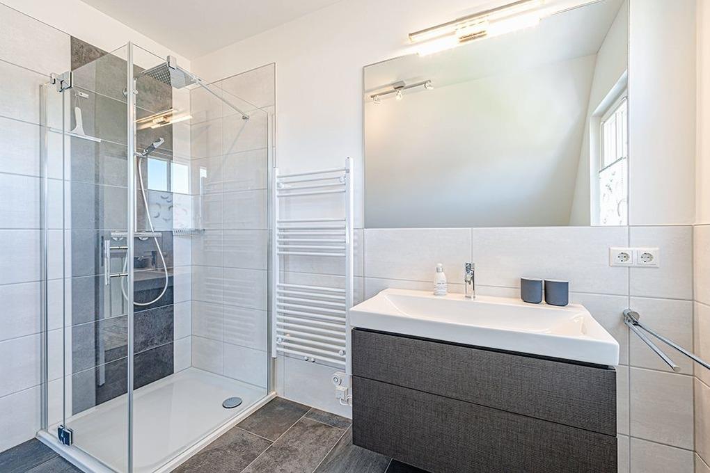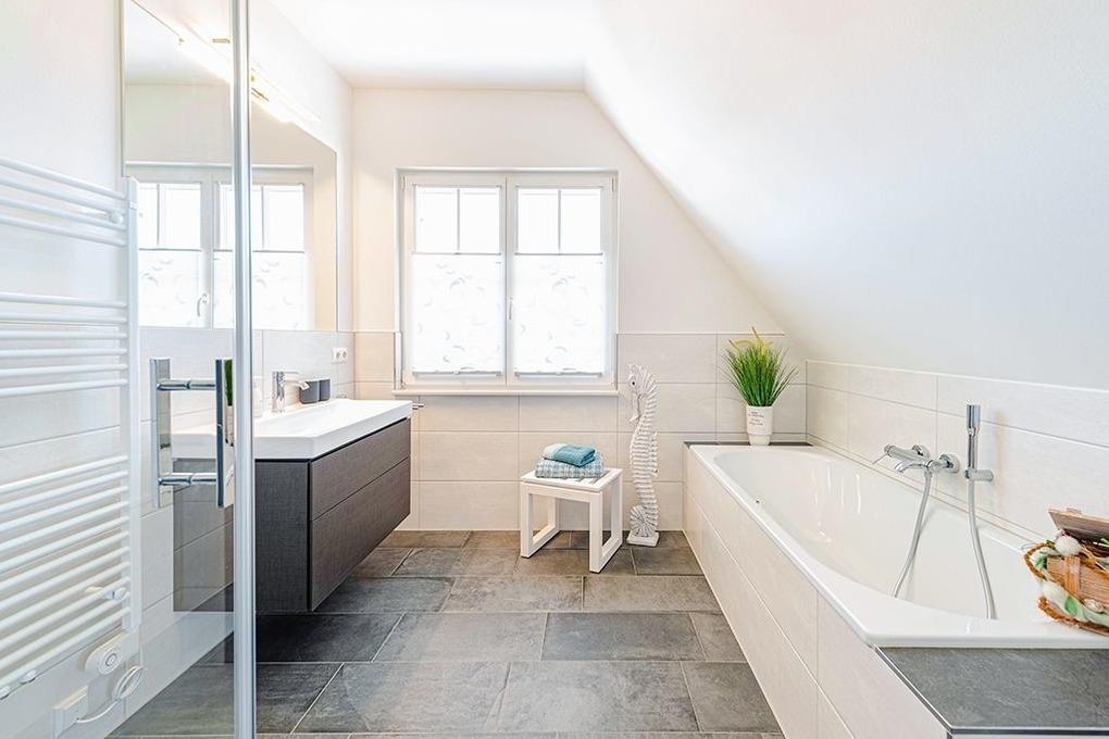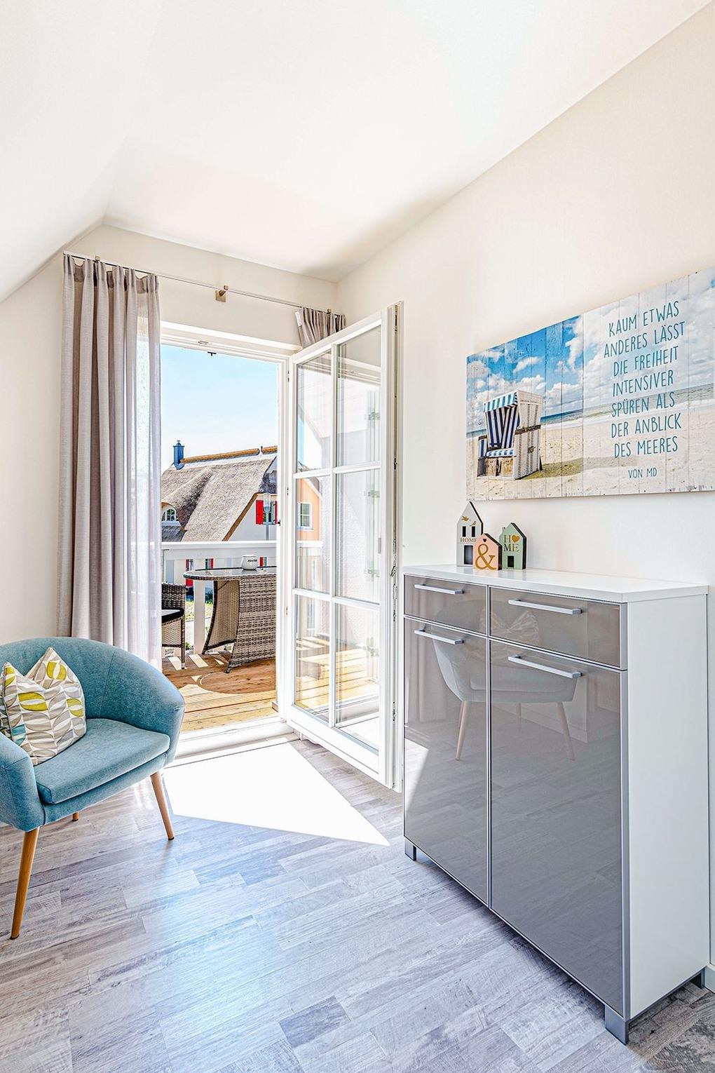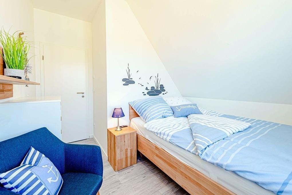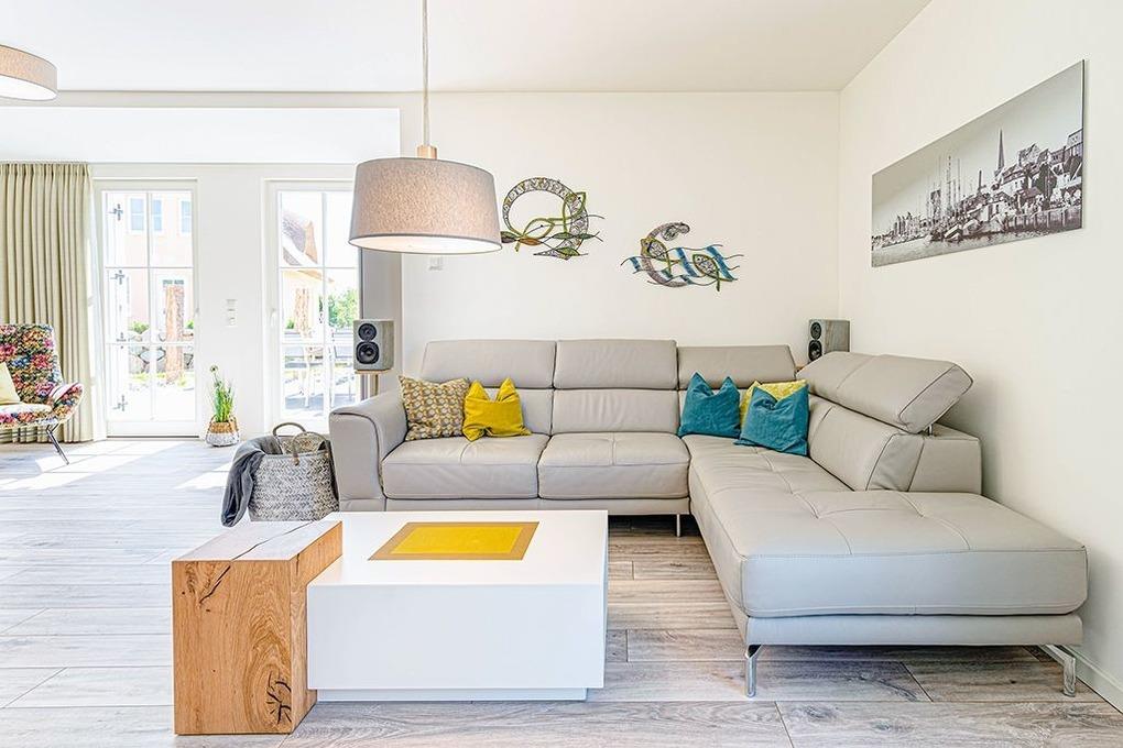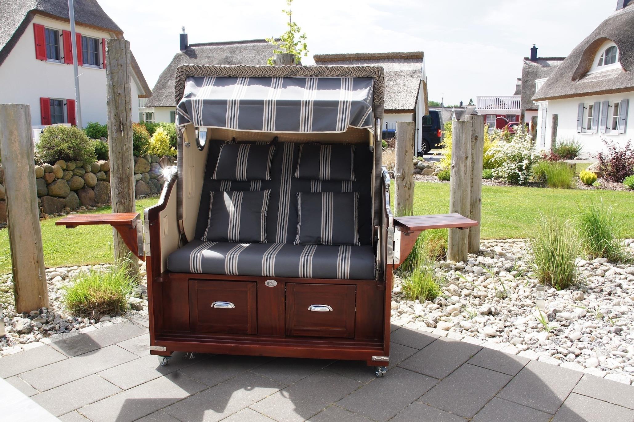 Wunderschönes Reetdach-Ferienhaus in einer liebevoll gestalteten Ferienhaussiedlung mit Sauna, Kaminofen, Balkon mit kleinem Wasserblick aus der zweiten Häuserreihe, Holzkohlegrill, schöner Garten mit 2 Terrassen,Strandkorb und Gartenmöbeln, 3 Schlafzimmer, max. 6 Personen, großer Wohn- Essbereich, 2 Bäder, Fußbodenheizung, gehobene Ausstattung mit moderner, geschmackvoller Einrichtung, HiFi-System, W-Lan, Waschmaschine, Trockner, PKW-Stellplätze am Haus
