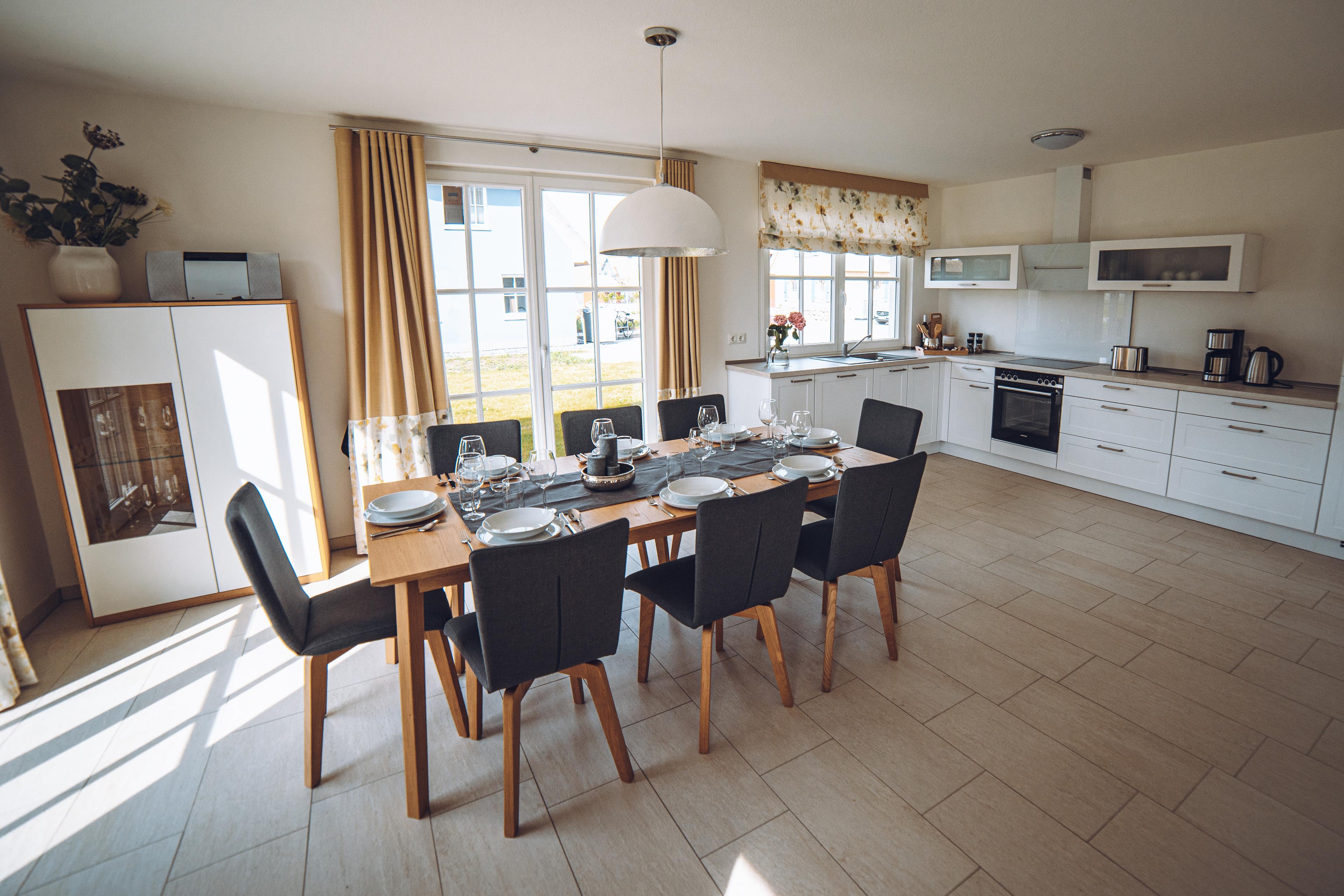 Großzügiges schönes Reetdach-Ferienhaus "Auszeit" mit Sauna und Kaminofen, Erstbezug 08/2020. Nichtraucherhaus. Gehobene Ausstattung mit moderner, geschmackvoller Einrichtung. 4 Schlafzimmer für 8 Personen und Aufbettung für 2 Personen im Wohnraum, 2 Bäder. Kostenloser Internetzugang (W-Lan), Fußbodenheizung. Waschmaschine/Trockner. Terrasse mit Sitzmöbeln, 2 Strandkörbe, 3 Hängematten, Holzkohle-Grill, 2 Pkw-Stellplätze am Haus. Ein Haustier gestattet. Grundstück ist nicht eingezäunt.