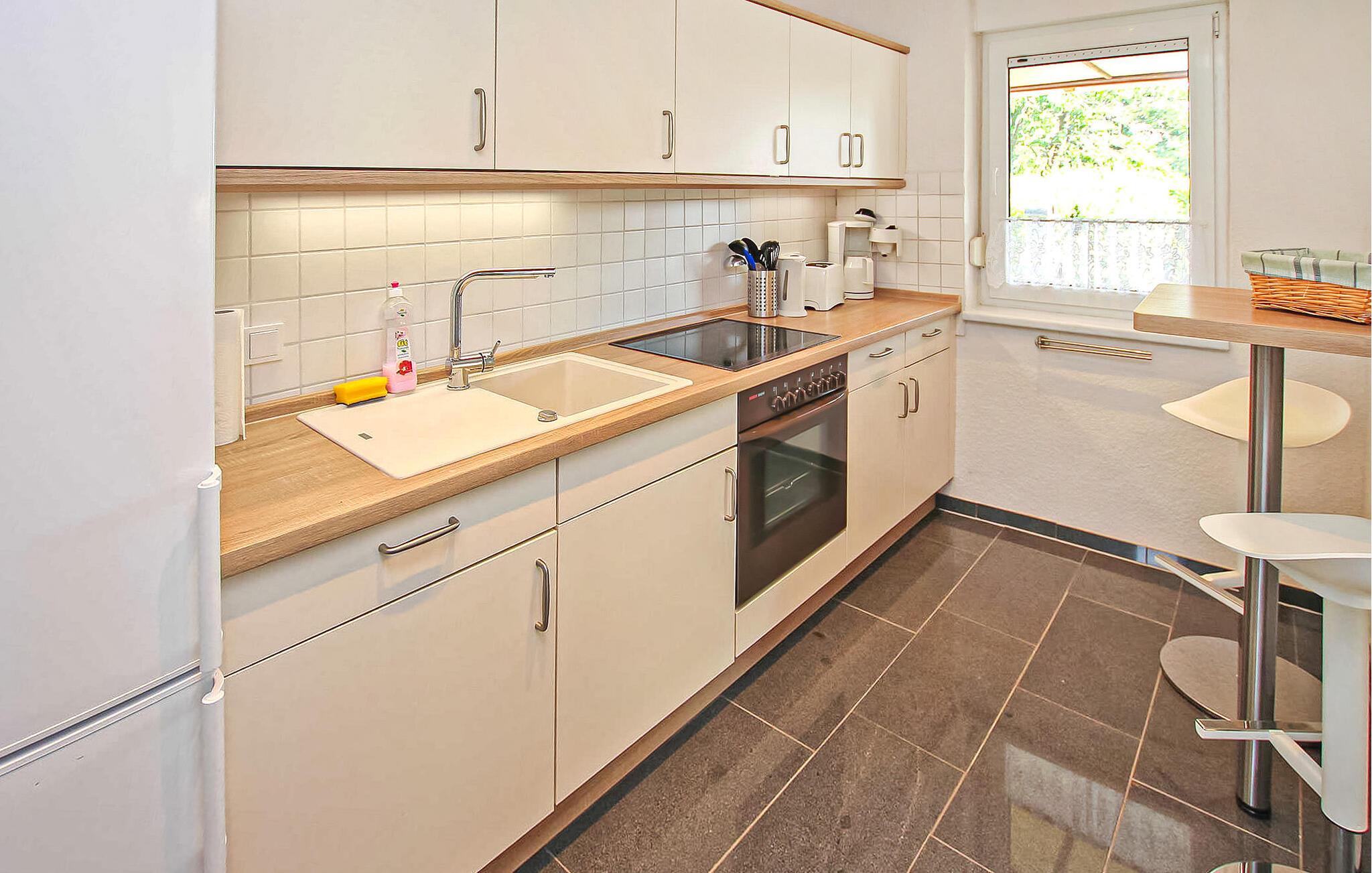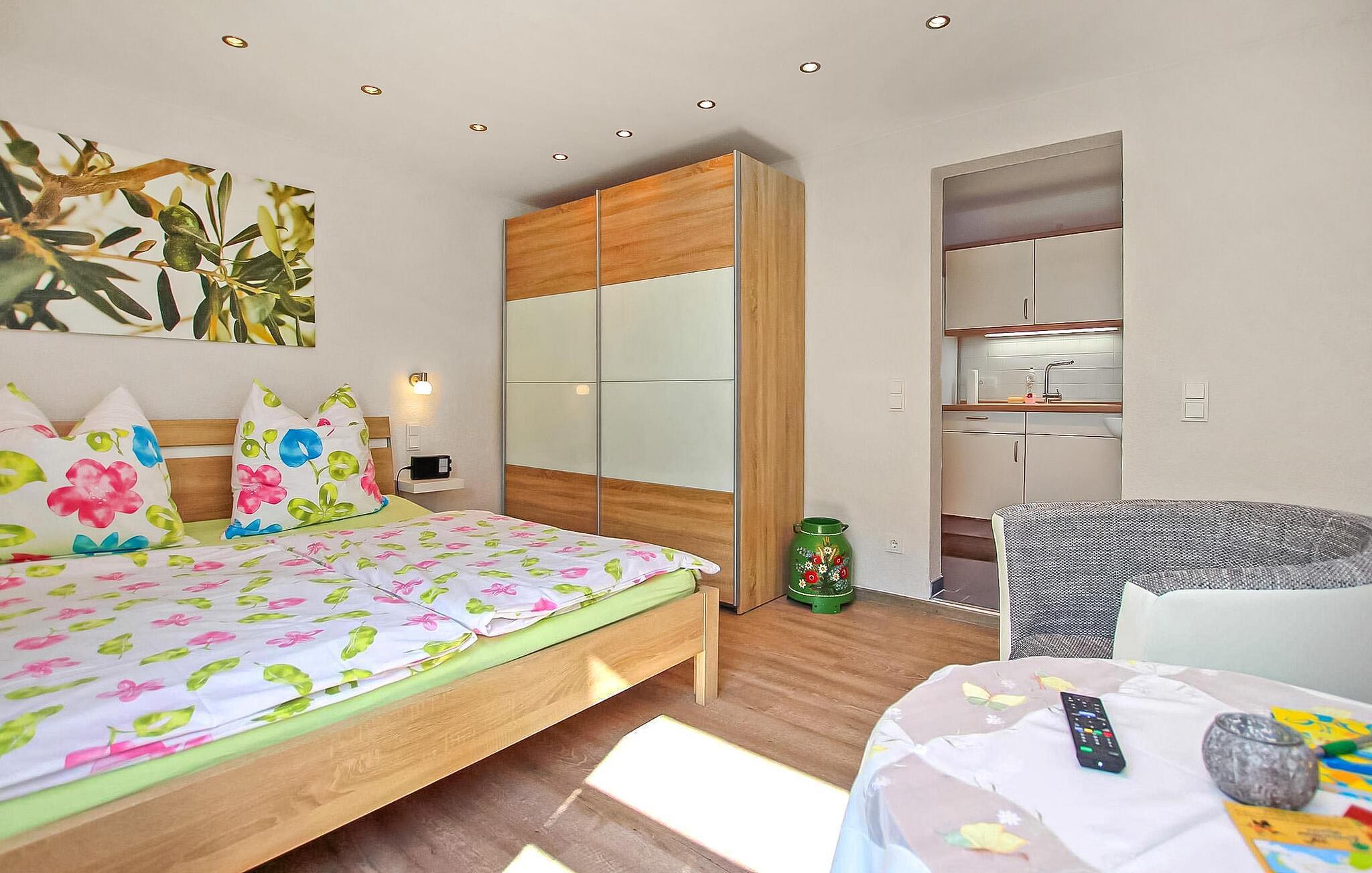 Direkte i byen, men stadig meget rolig beliggenhed, ligger feriehuset til op til 3 personer, som er renoveret i 2015, på en separat rekreativ ejendom på ca 500 kvadratmeter. I umiddelbar nærhed er der information om Müritz National Park, en legeplads, den lille gårdbutik, fiskeren og en restaurant. Der er cirka 10-15 minutters gang til badepladsen ved Käbelicksee. Den cirka 45 kvadratmeter store ikke-ryger bungalow er udstyret med en kombineret stue og soveværelse (dobbeltseng, opholdsområde, stort klædeskab, fladskærms-tv, radio - en gæsteseng leveres som en ekstra seng til den tredje person, men der er ingen opholdsstue), køkken (elkomfur med ovn, køleskab med fryser, lille spisebar, diverse små køkkenmaskiner) og rummeligt badeværelse (bruser, toilet, hårtørrer). Der er også en stor overdækket og møbleret terrasse, en pejs grill, områder til solbadning på ejendommen, parkering, opbevaring af cykler og gratis Wi-Fi samt en barneseng og høj stol til rådighed efter anmodning. Hvis det er nødvendigt, kan en el-varmer aktiveres, en separat regning vil blive opkrævet for dette. Den samlede pris inkluderer slutrengøring samt vand- og elforbrug. Medbring venligst eget sengelinned og håndklæder, eller de kan lejes mod betaling. Betales på stedet: varmeudgifter baseret på forbrug. Kæledyr er ikke tilladt i denne ejendom. Det lille samfund Kratzeburg ligger midt i nationalparken Müritz, ikke langt fra det charmerende og uberørte landskab ved Havel-kildesøerne. Kratzeburg er et ideelt feriemål for naturelskere, cyklister, lystfiskere og vandvandrere. Havel rejser sig nær Kratzeburg, og padlere vil finde flere lejesteder i området til uforglemmelige kanoture. Käbelicksee, der grænser op til samfundet, er ideel til svømning og fiskeri, fisketegn fås hos den lokale fisker Ud over den imponerende bindingsværkskirke og en flagermusudstilling i Müritz National Park Information Center er der en smuk gård butik med regionale produkter og en omfattende restaurant Shoppingmuligheder findes i Penzlin, cirka 15 km væk, eller i beboelsesbyen Neustrelitz. På trods af sin idylliske beliggenhed kan Kratzburg nemt nås med regionaltoget, som kører hver 2. time, takket være sin egen togstation.