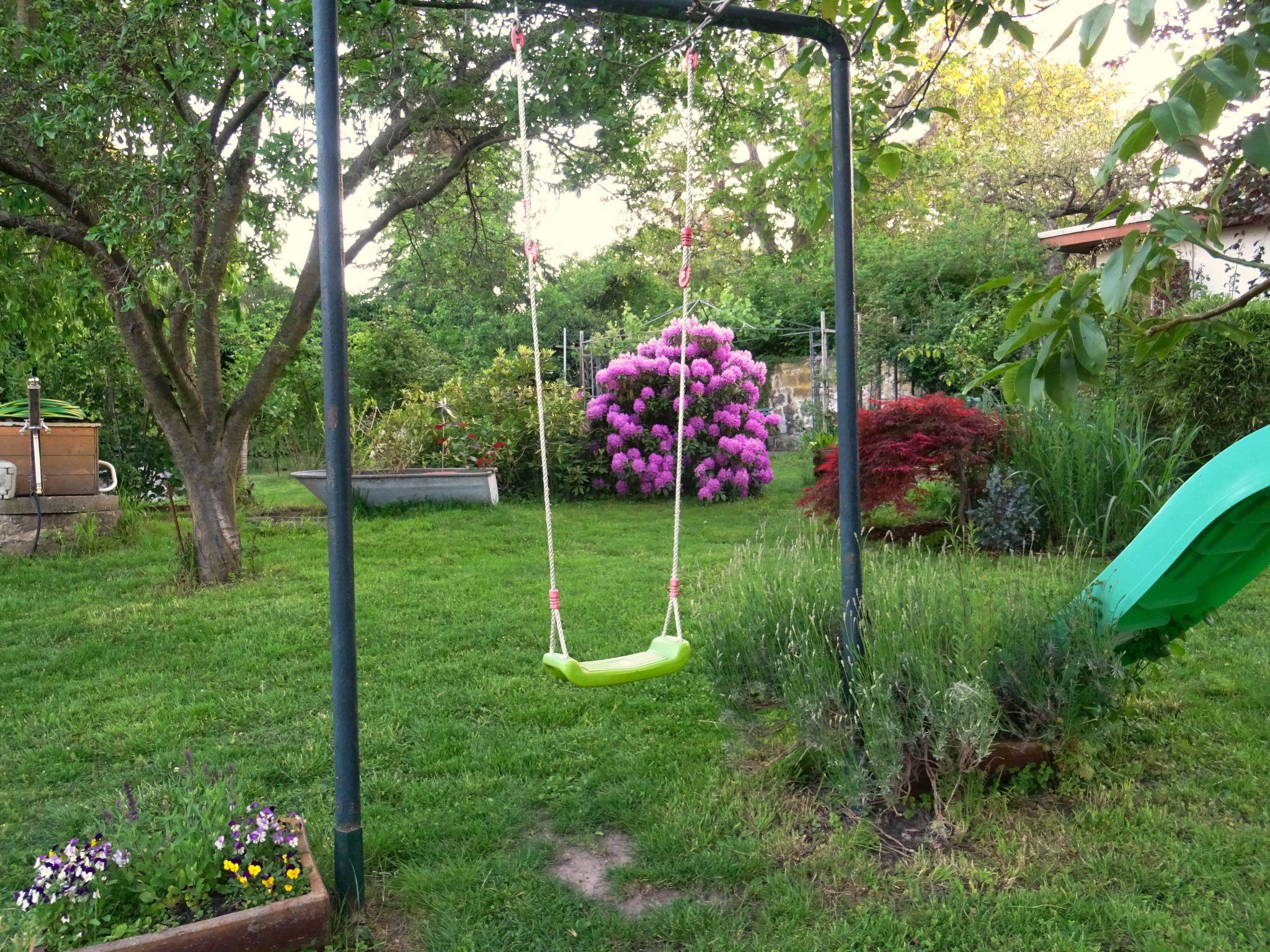 Courtyard terrace, sun loungers in the garden, swing and barbecue.