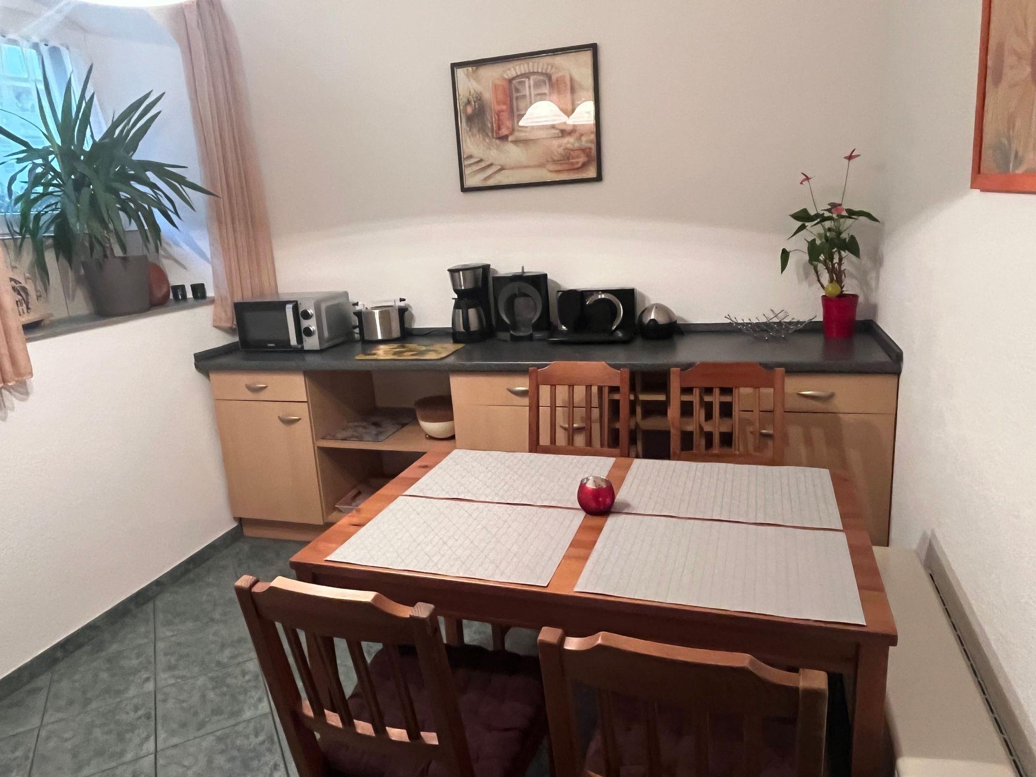 In the spacious kitchen there is a dining table with seating for 3 people and a high chair. In addition to the equipment already listed, there is plenty of crockery and glasses.