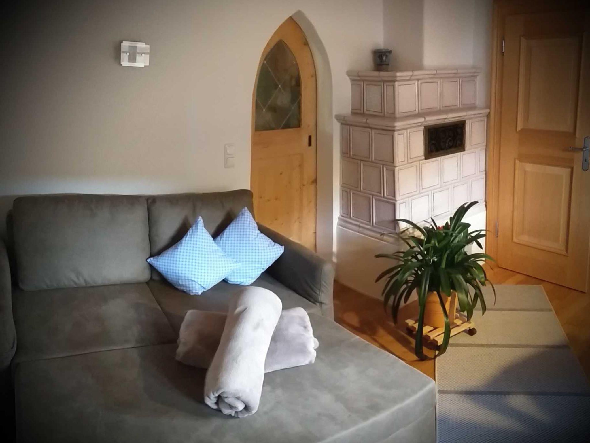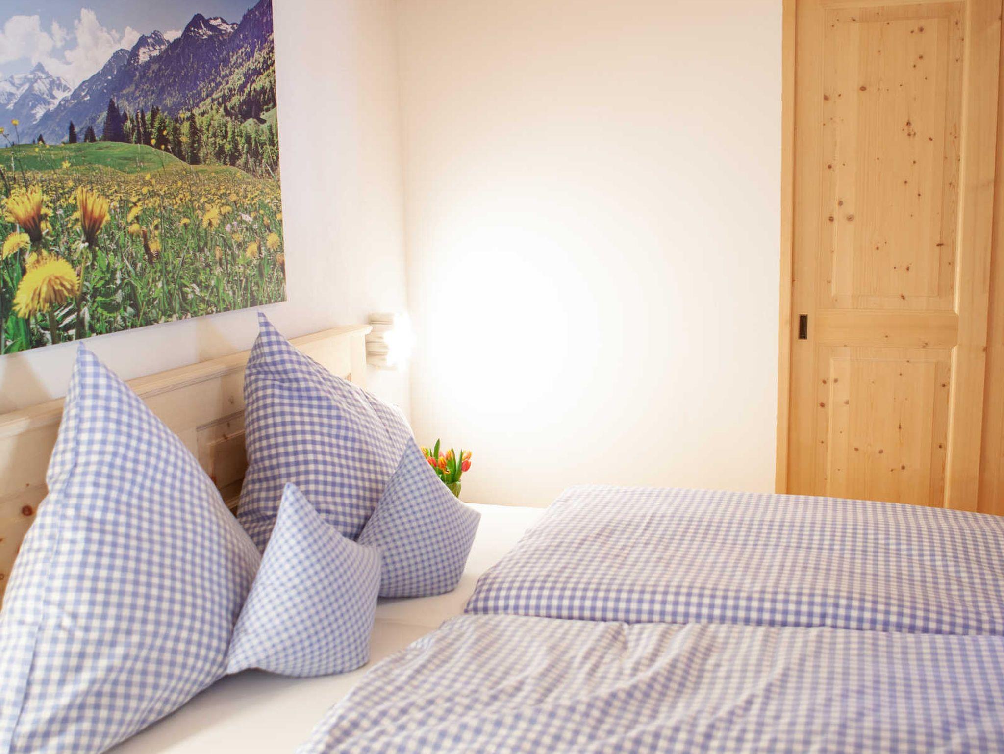 Die Einrichtung besteht ausschließlich aus heimischen Hölzern. Ein absolutes Highlight ist das neu geschreinerte Doppelbett mit Zirbenholzelementen. Dem Zirbenholz wird eine ausgleichende und gesundheitsfördernde Wirkung zugeschrieben. Es wirkt wohltuend und fördert die Schlafqualität. Beide Matratzen haben Härtegrad 2.