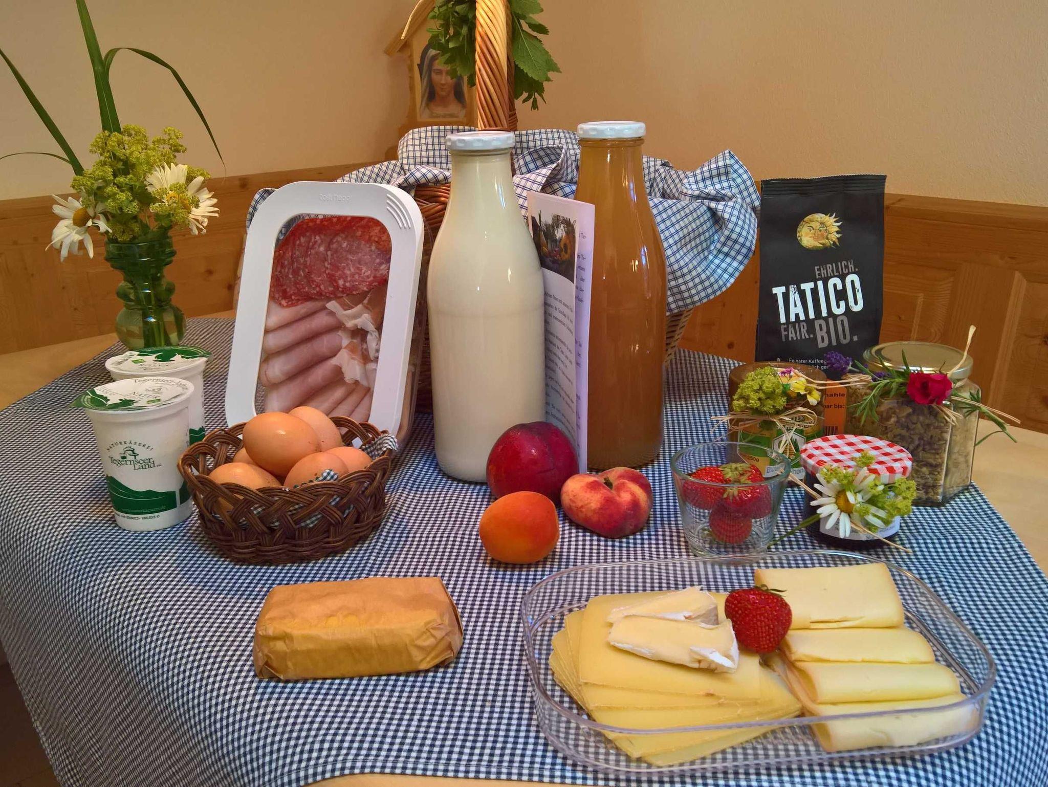 Wollen Sie die Region schmecken? Wir packen Ihnen einen Frühstückskorb mit allem was die Region zu bieten hat: Frische Milch und Eier vom Hof, selbstgemachter Marmelade und Butter aus dem Holzmodel! Joghurt und Käse aus der Naturkäserei Tegernseer Land, Honig aus dem Tegernseer Tal, hausgemachtem Knuspermüsli,...die Semmeln liefern wir auf Wunsch natürlich auch!